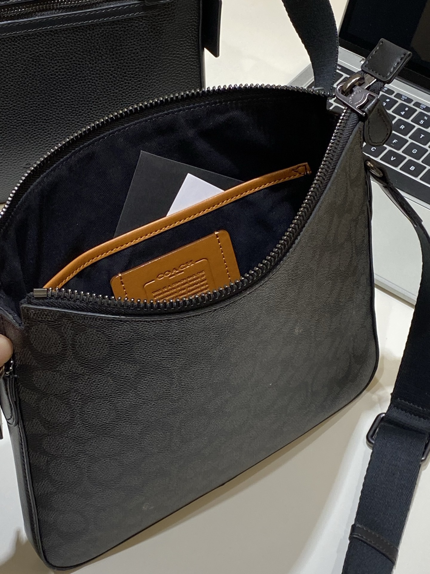 里面很是简约!一个大隔袋!IPad、文件、充电宝等一系列都是装的下!