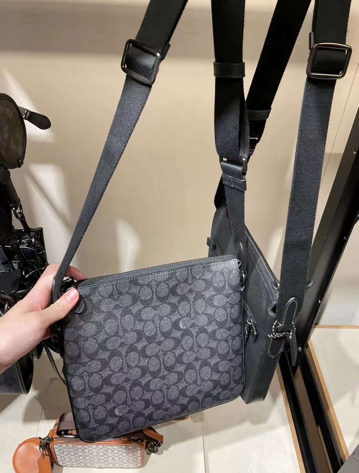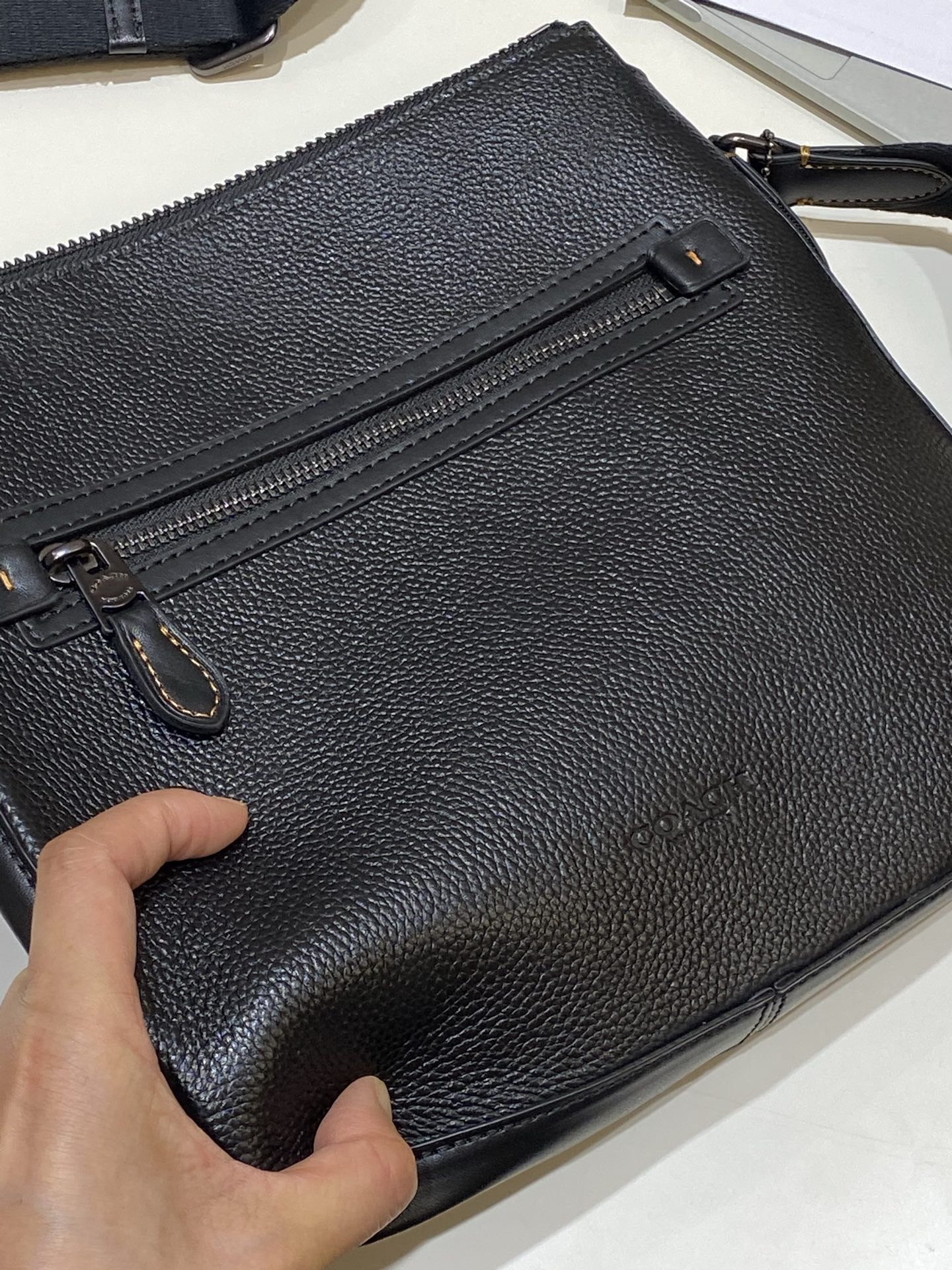属于轻薄款斜挎包!夏季也好用!宽肩带也不会勒肩膀!宽织肩带可以调节。沉稳大气的公文包,细节精致有档次!