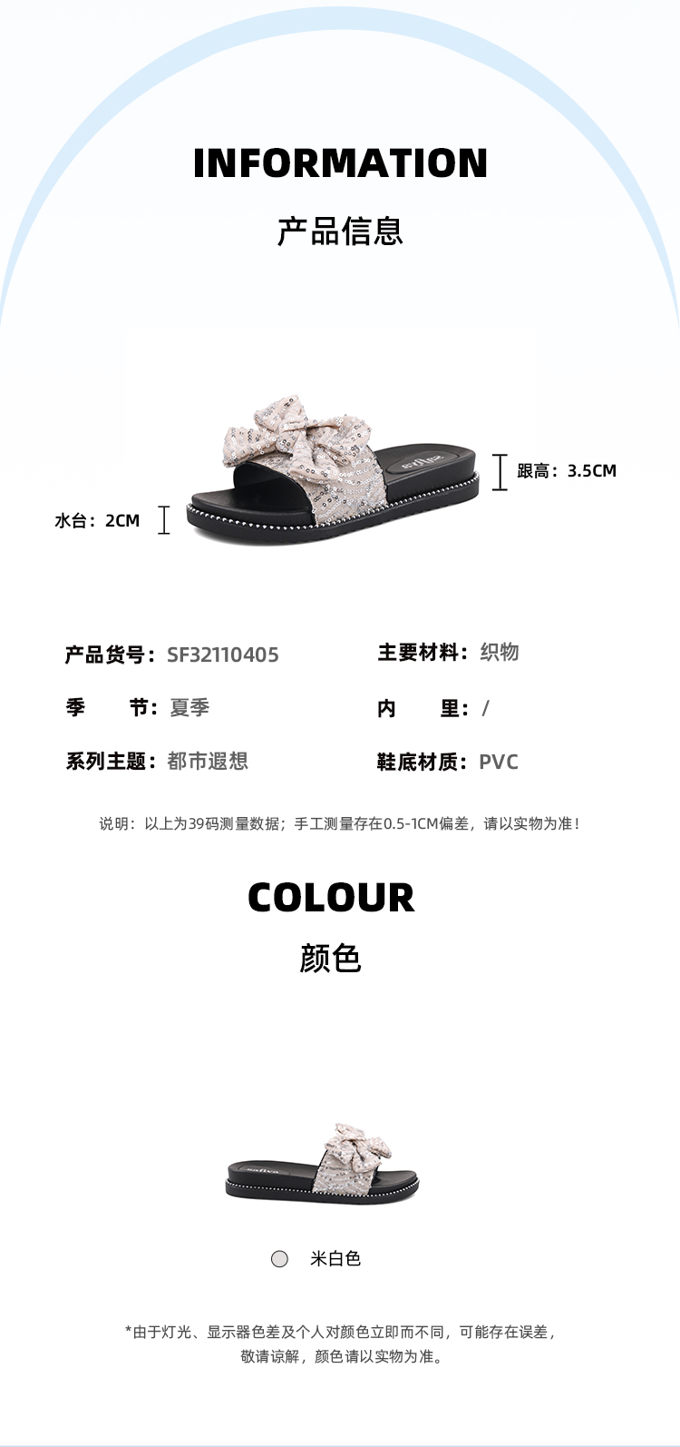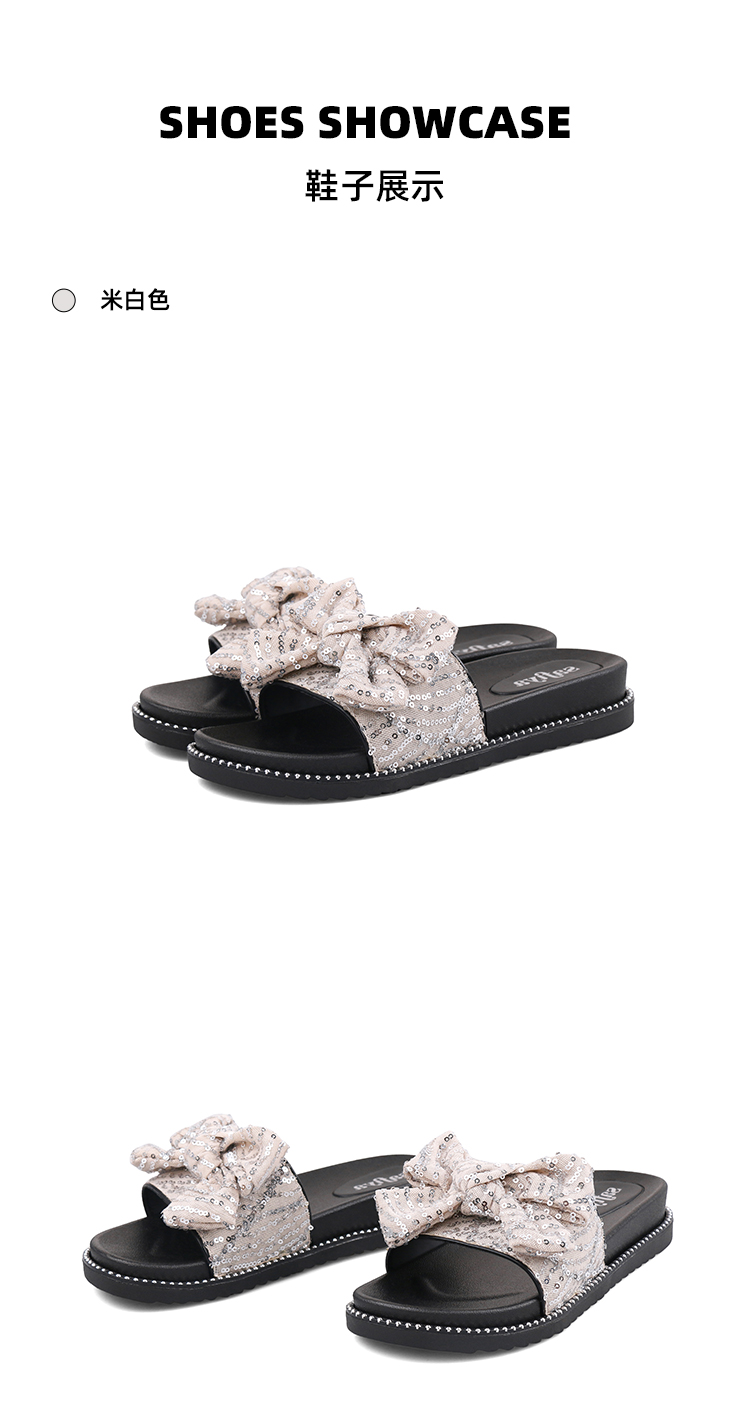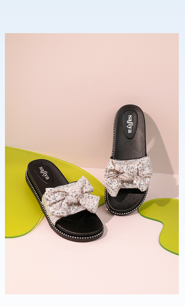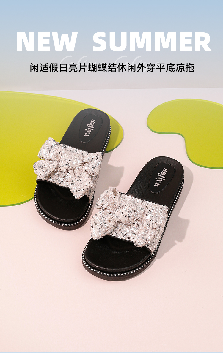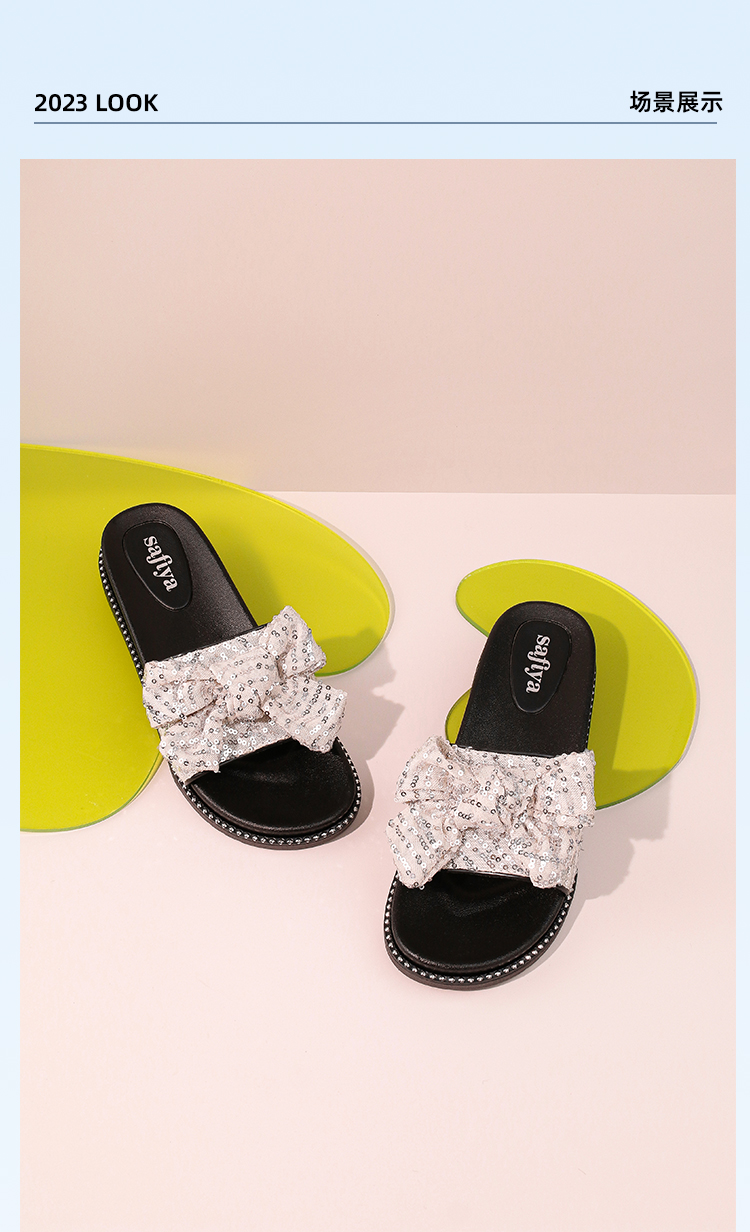 Safiya/索菲娅2023夏季新款闲适假日亮片蝴蝶结休闲外穿平底凉拖SF32110405