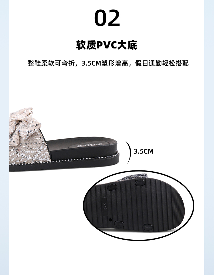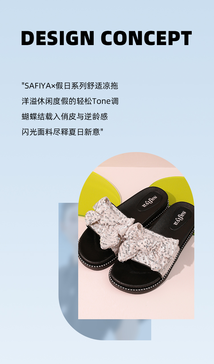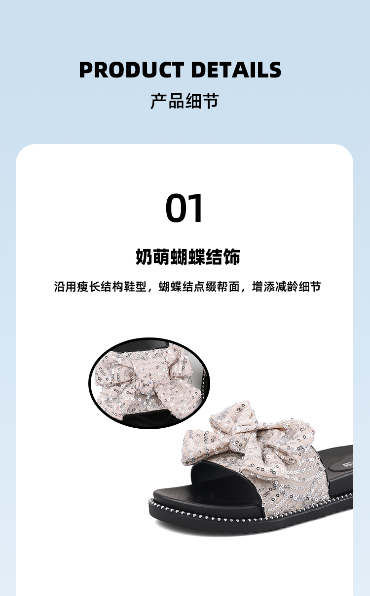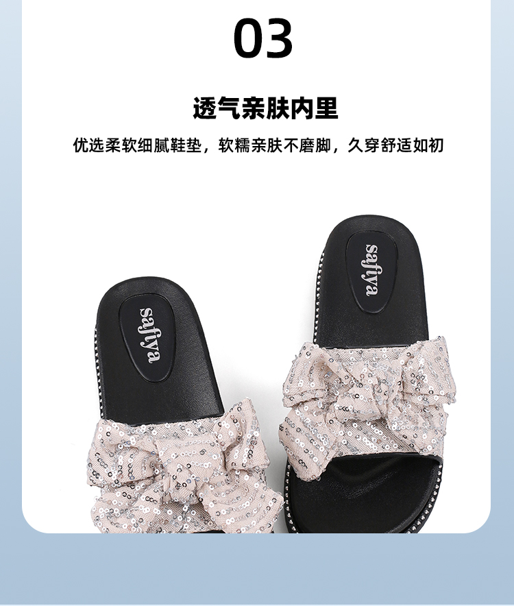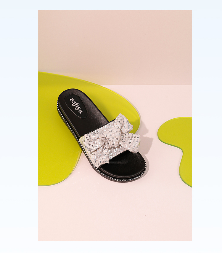 Safiya/索菲娅2023夏季新款闲适假日亮片蝴蝶结休闲外穿平底凉拖SF32110405