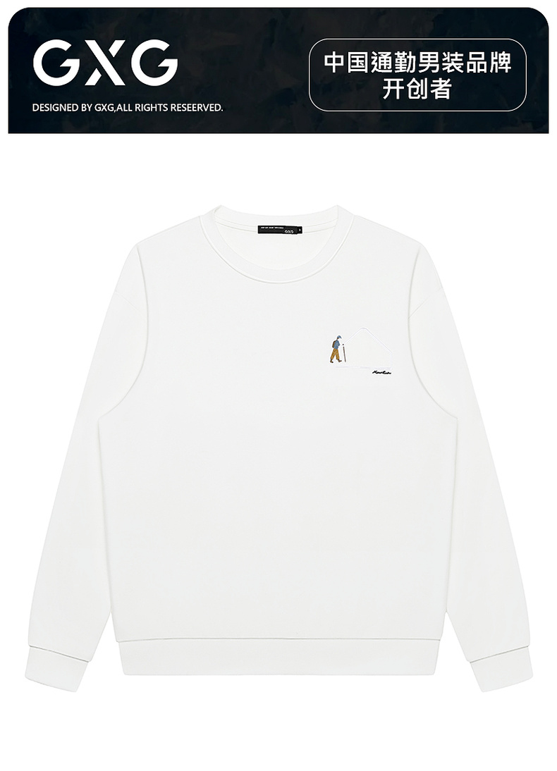 GXG男装秋季时尚贴布绣户外简约百搭舒适宽松休闲男式圆领卫衣K&C