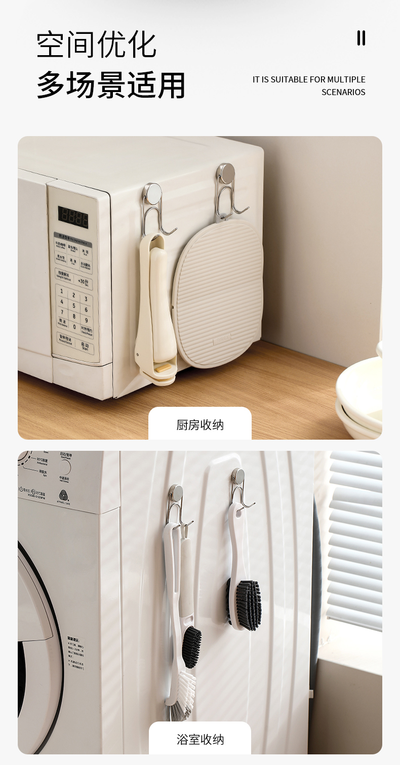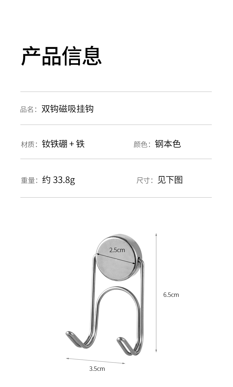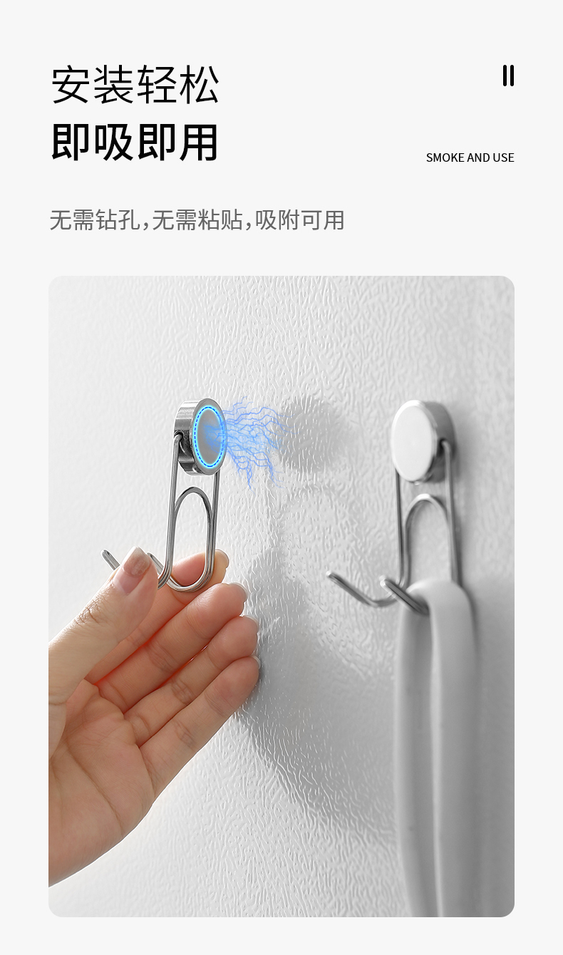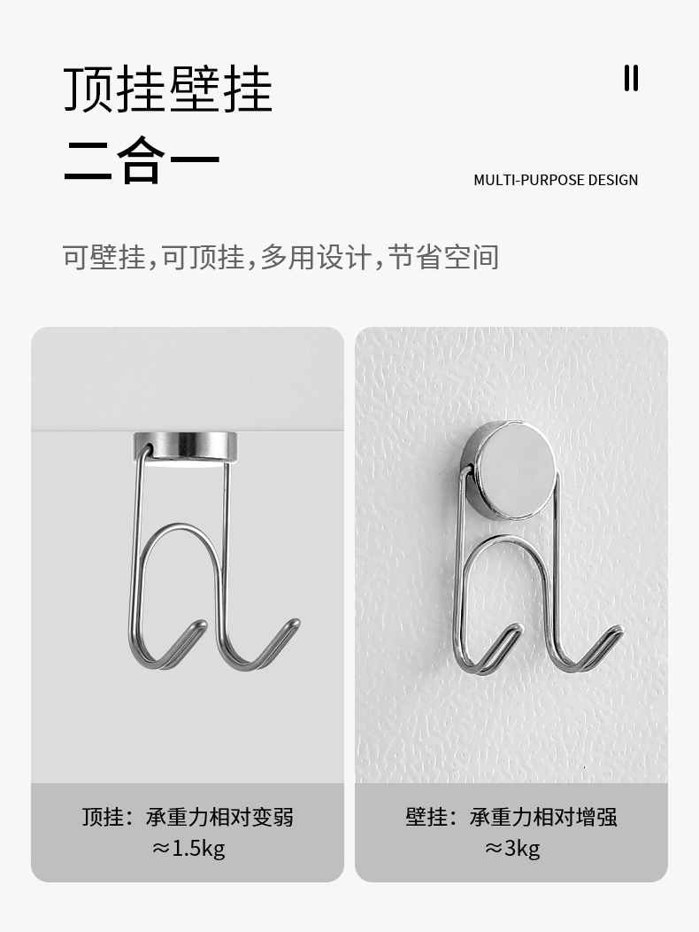 FaSoLa吸盘式不锈钢双头挂钩洗脸巾免打孔抽纸浴室强力承重真空纸巾双钩
