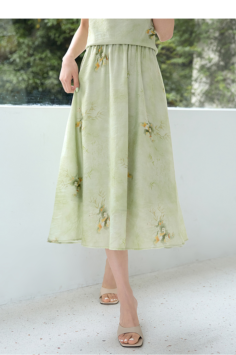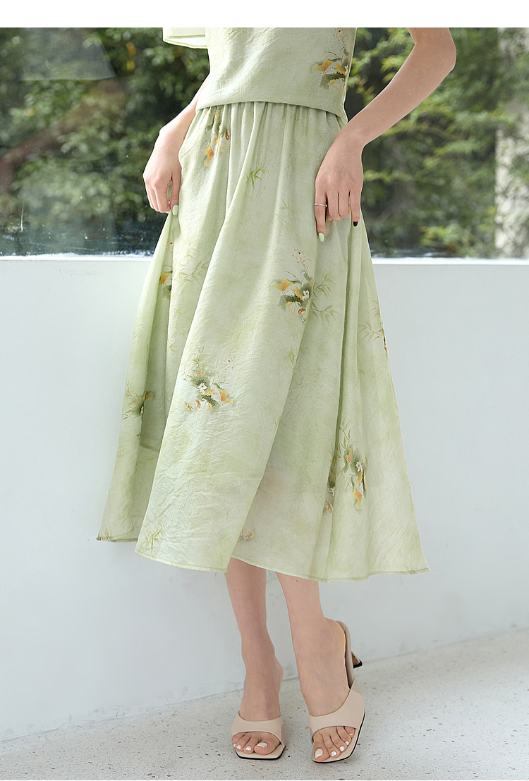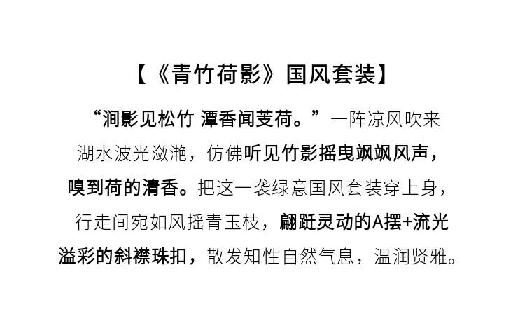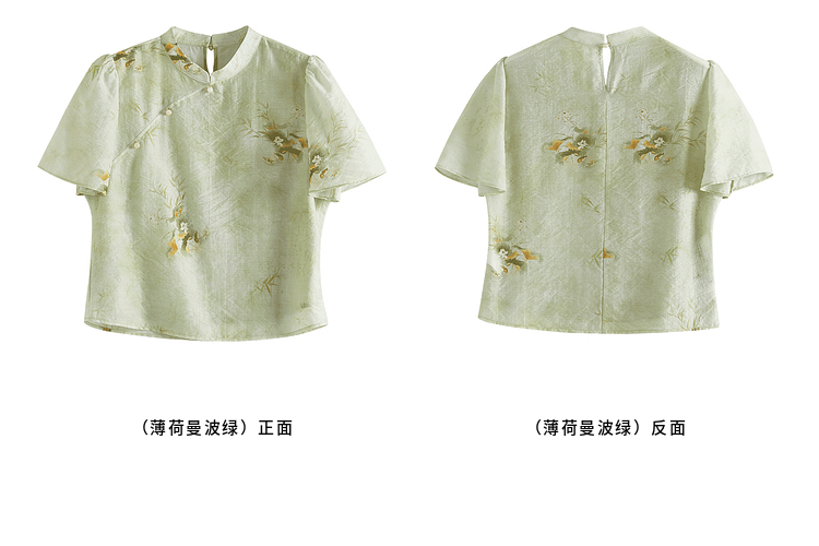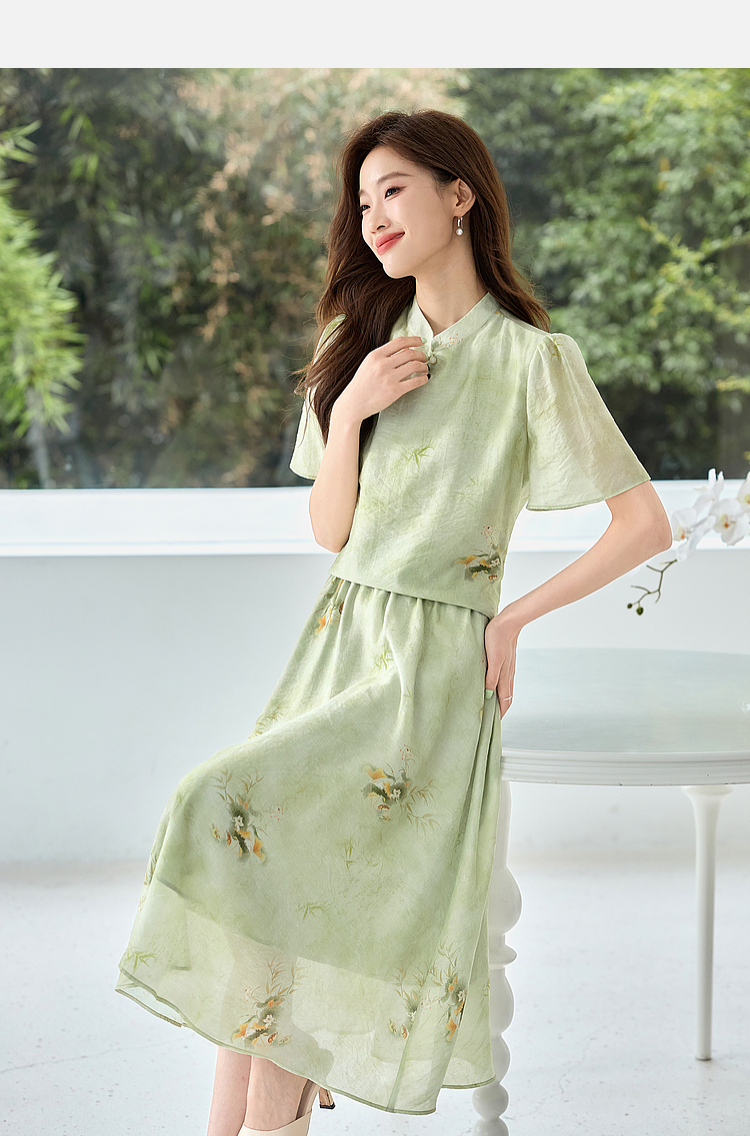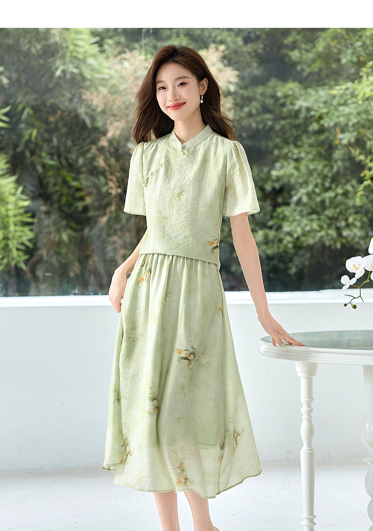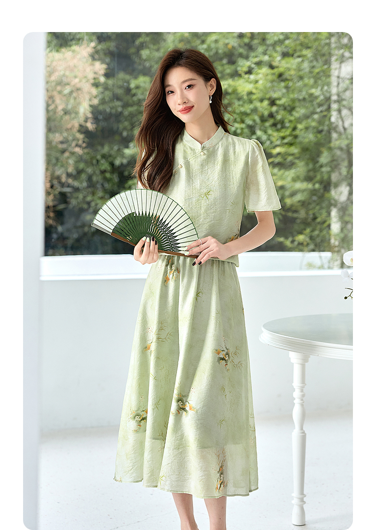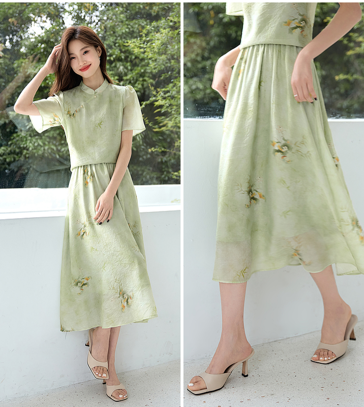 【五折购】熙世界薄荷曼波绿国风套装夏季新中式斜襟立领上衣半身裙两件套