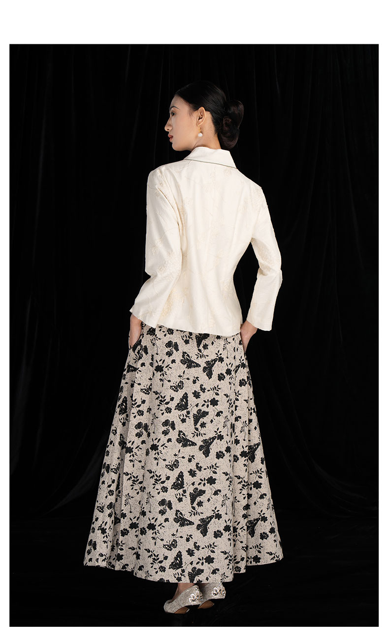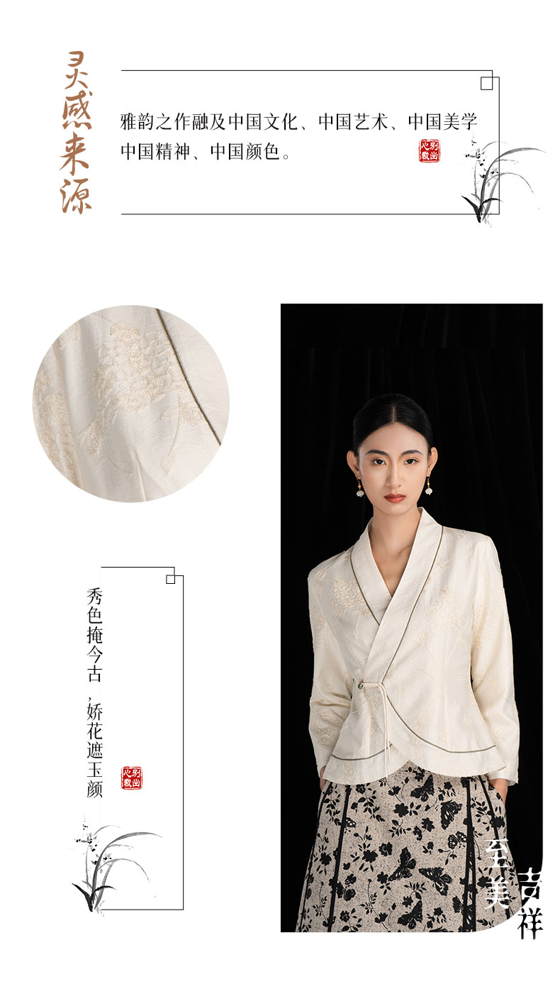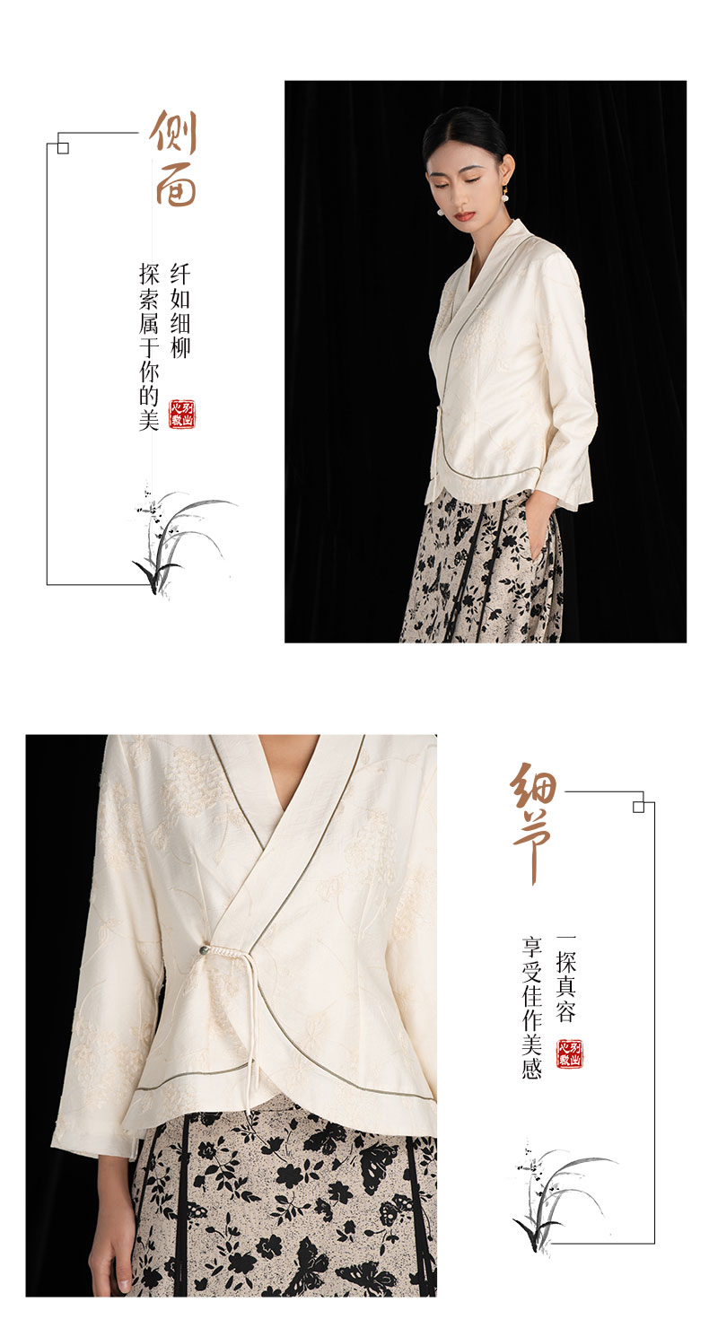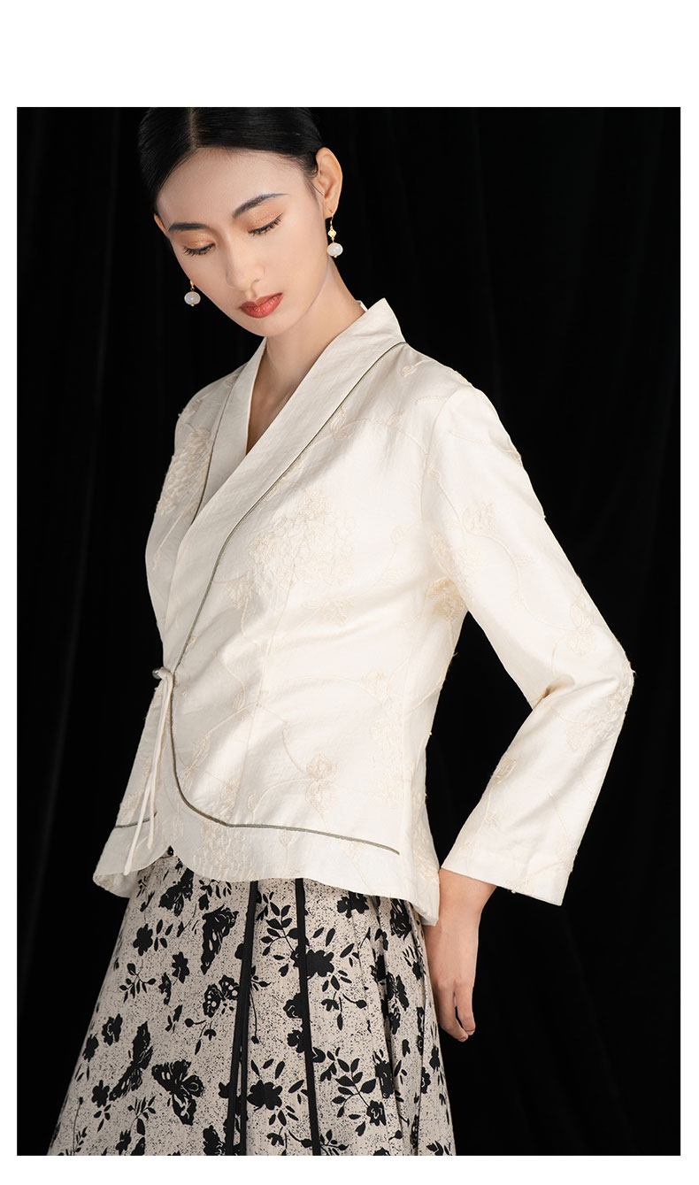 吉祥衣家新中式国风新款高端气质显瘦修身女V领小香风江月白外套