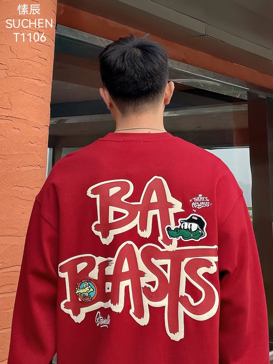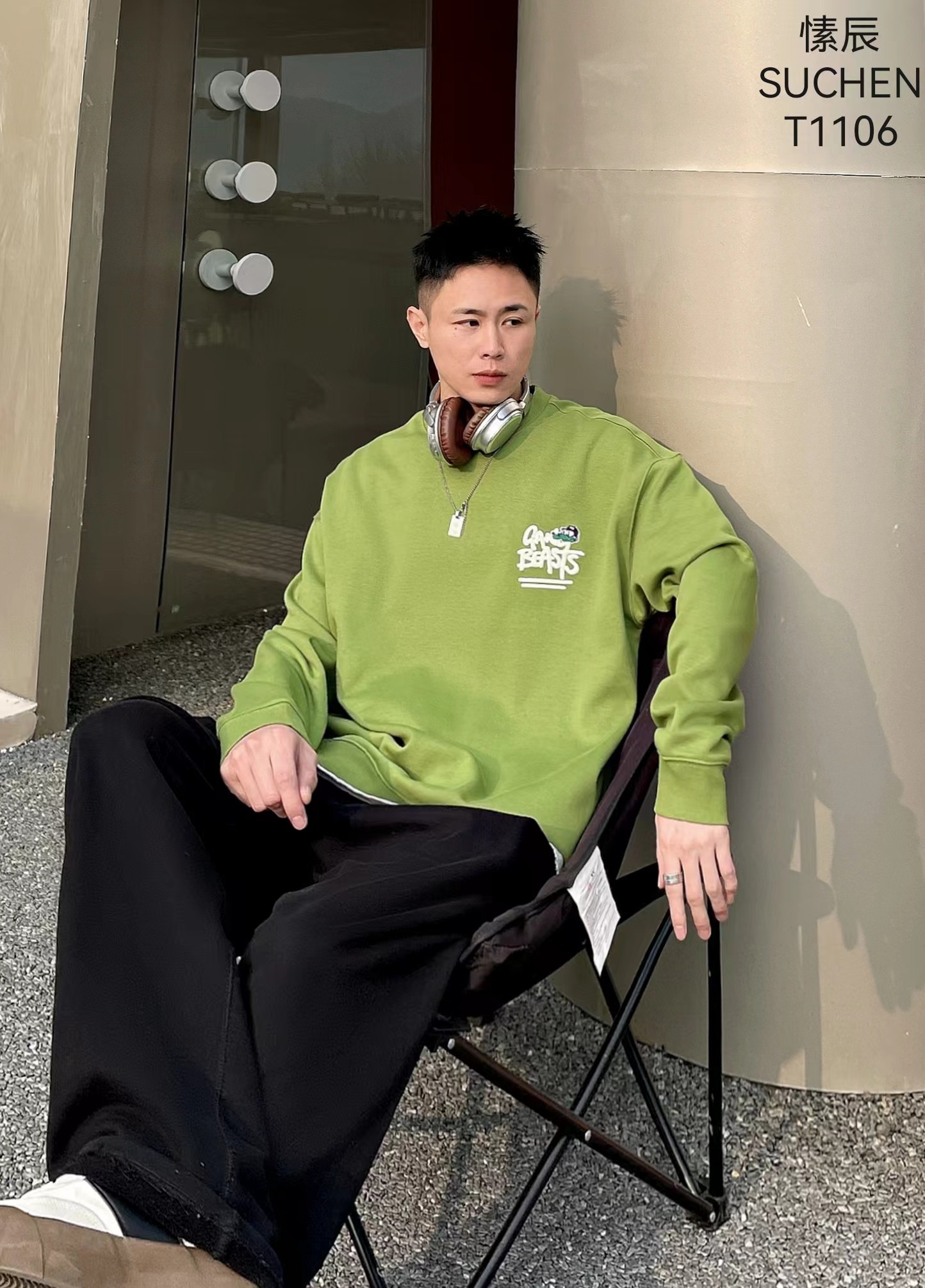 1106# 潮牌龙新年情侣卫衣男女2024春季新款红色套头衫 红色、绿色