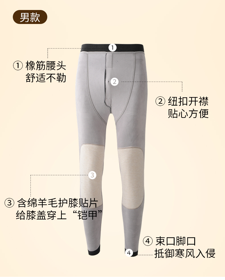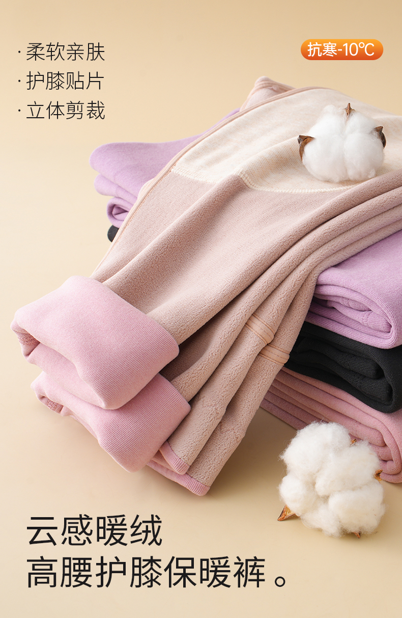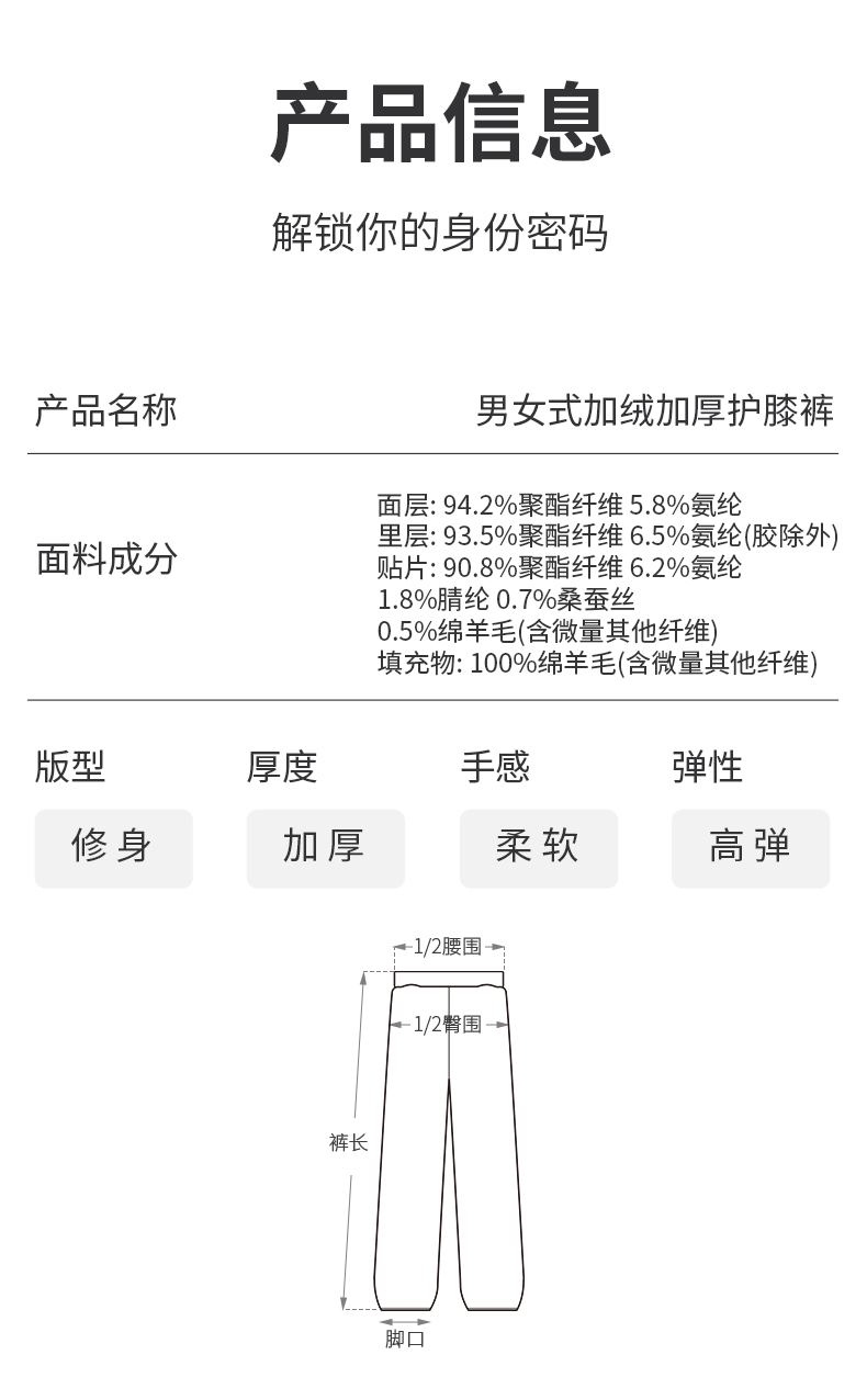 爱帝加绒加厚羊毛保暖情侣款贴片护膝高腰保暖裤