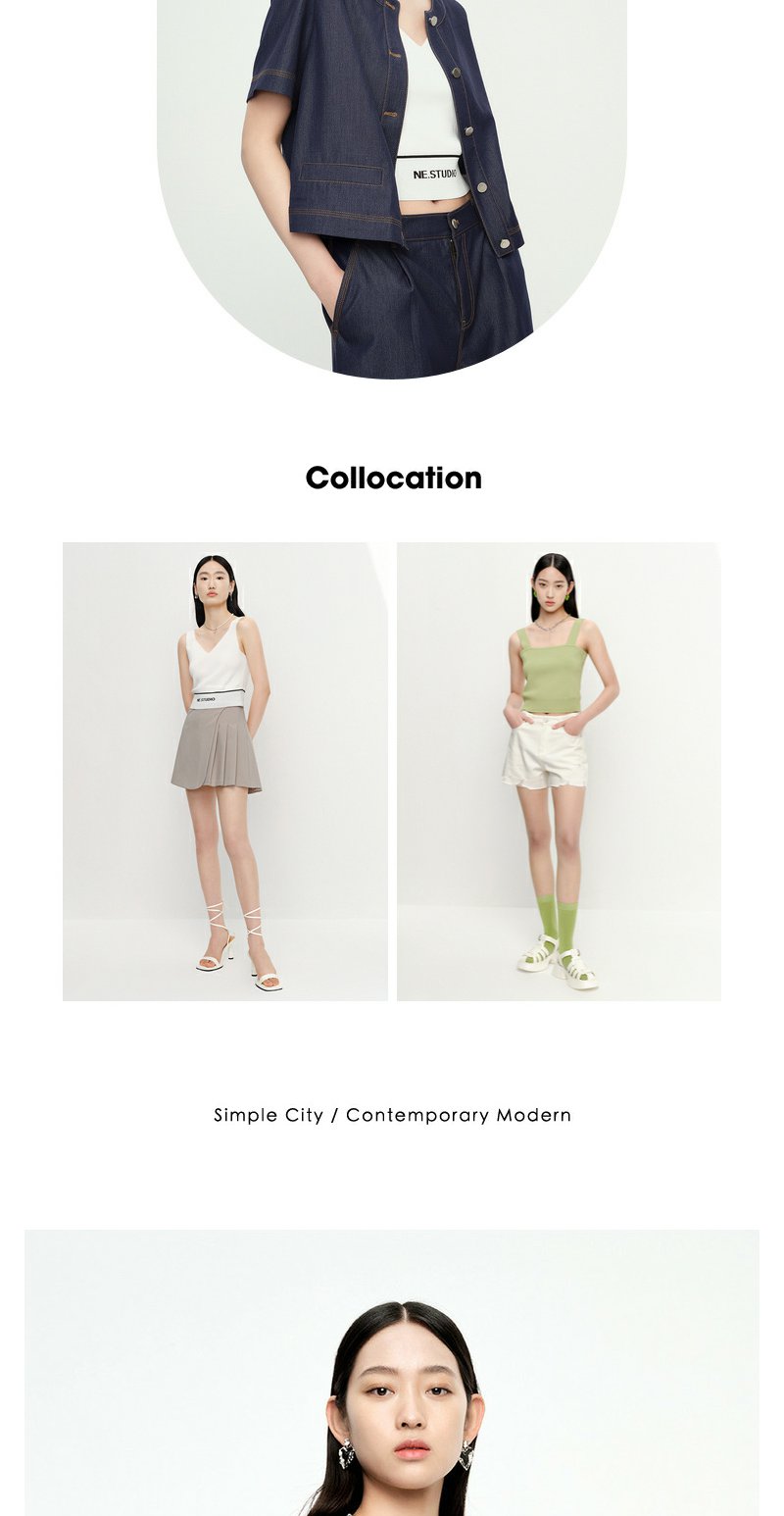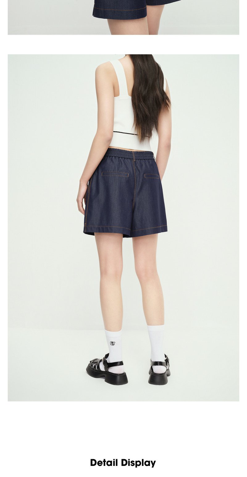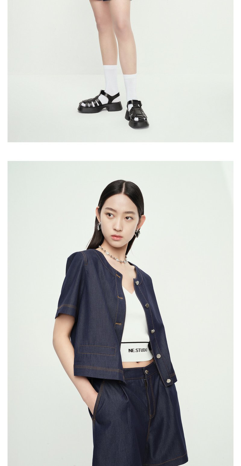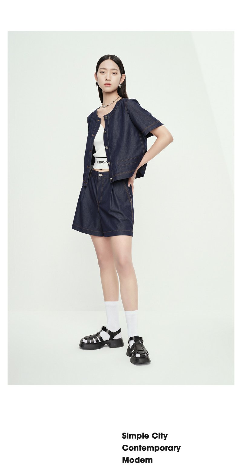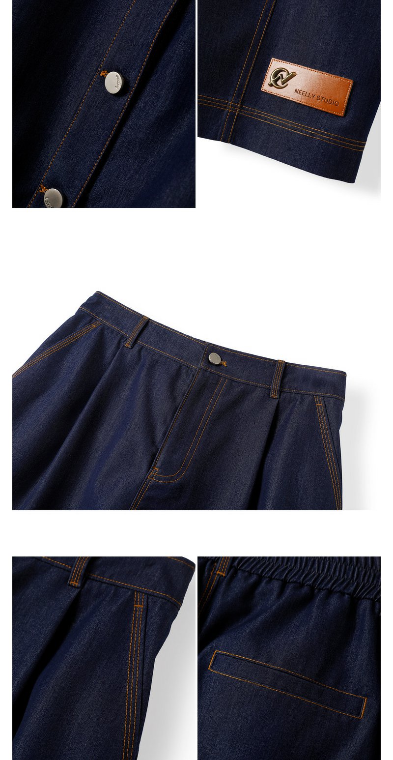NEELLY纳俪商场同款夏新款短袖圆领牛仔上衣套装女宽松短裤两件套N25054Z04664
