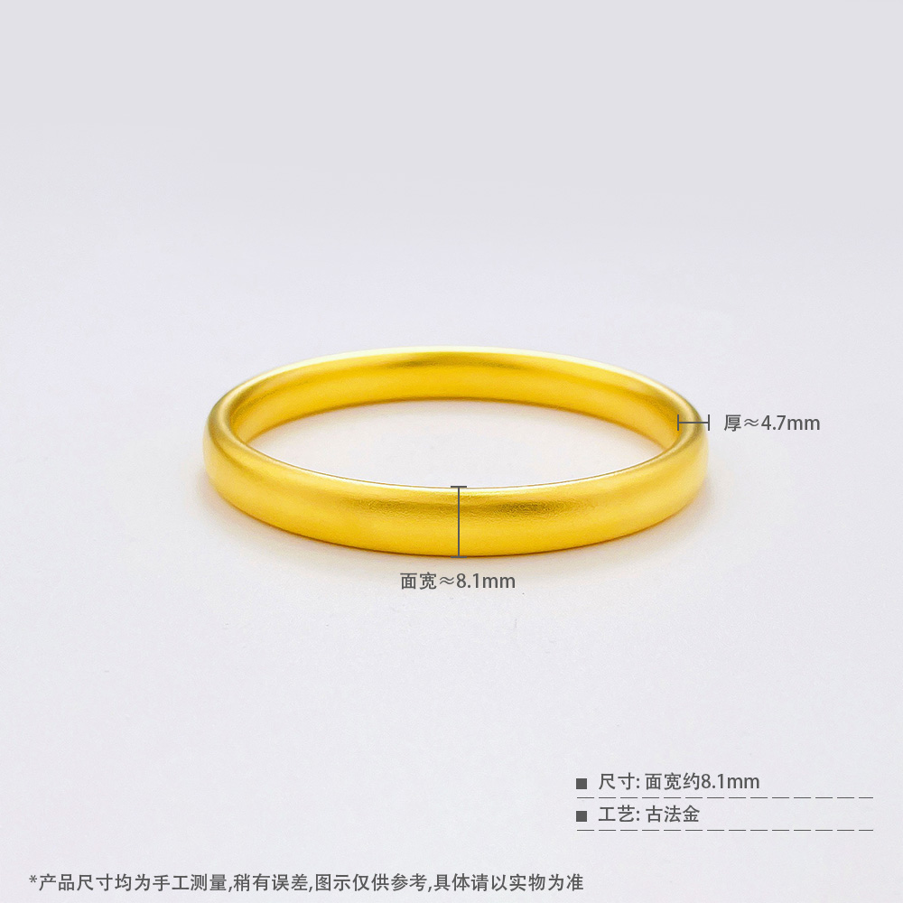 【限时克减150元】足金999.9 #复古风 古法空心固口光圈素圈轮胎手镯(面宽约7.9-8.3mm,厚约4.7mm)(AVGFSZ00031-07)预售产品下单后不退款不退货不换货不补差价