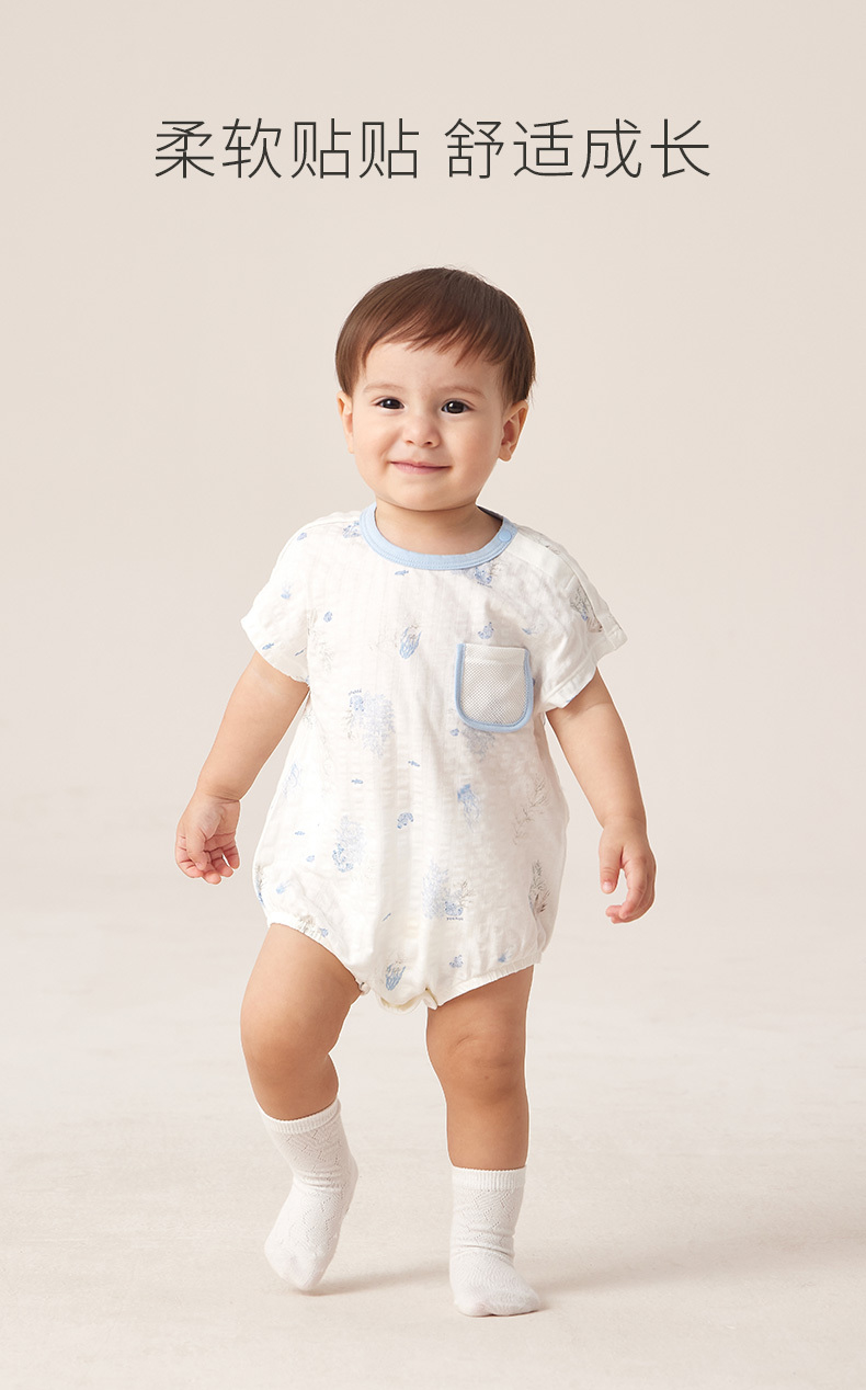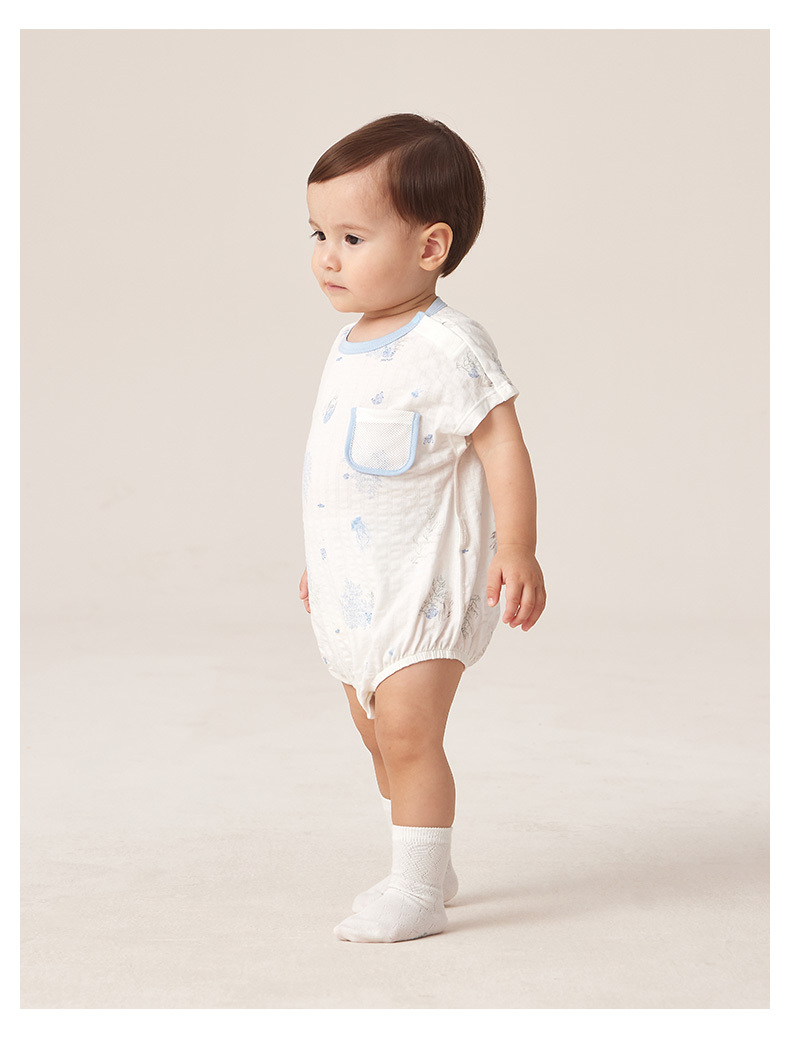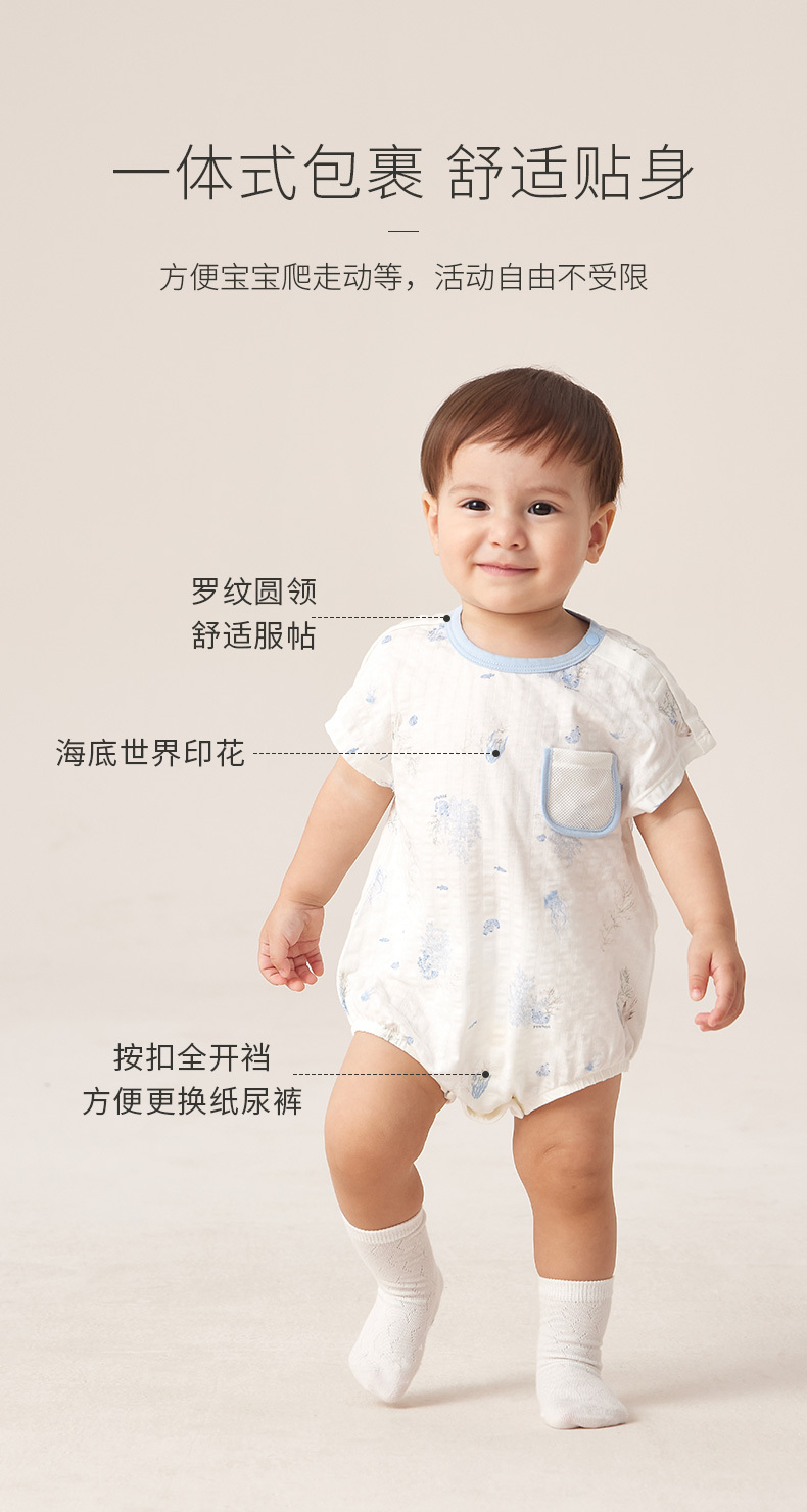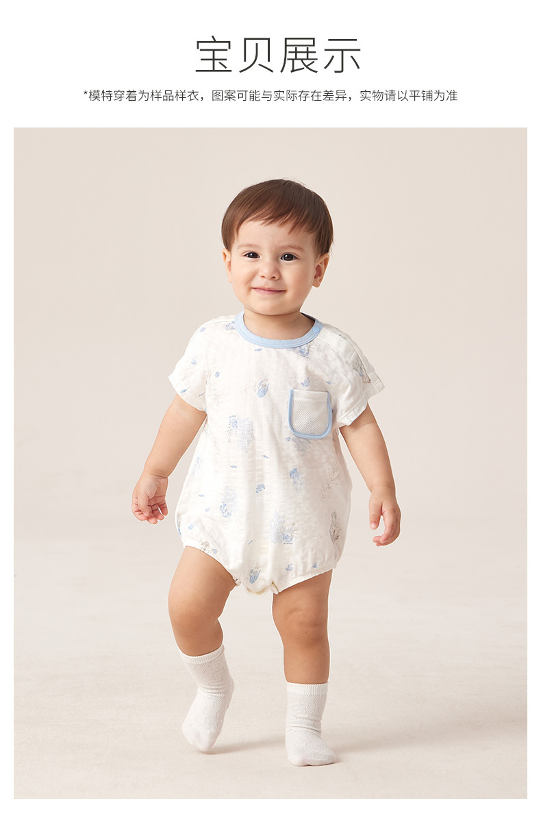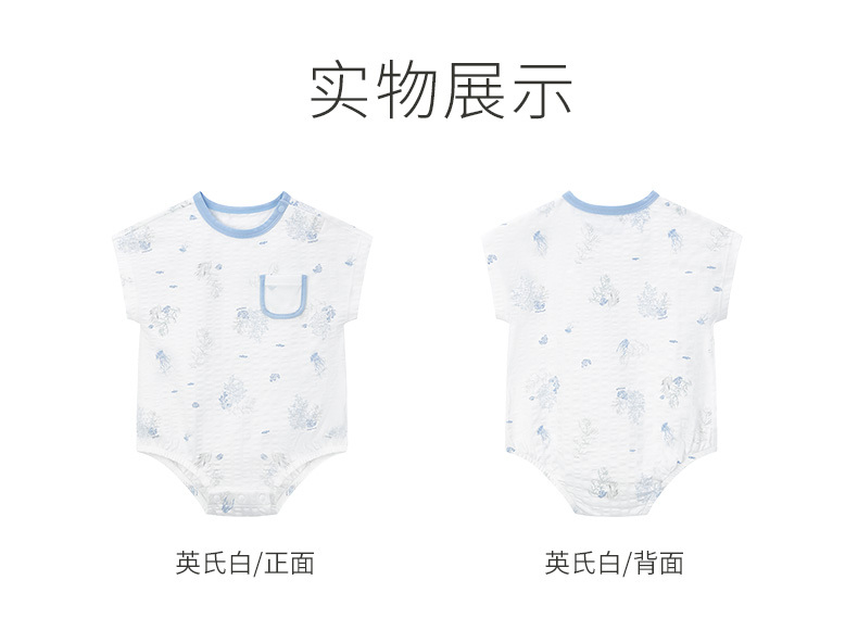 英氏婴儿连体衣男女宝宝碧浮短裆蛤夏季新款三角哈YLDBJ2P007A