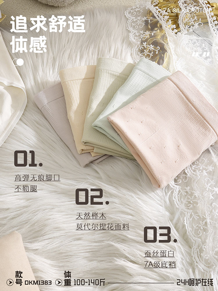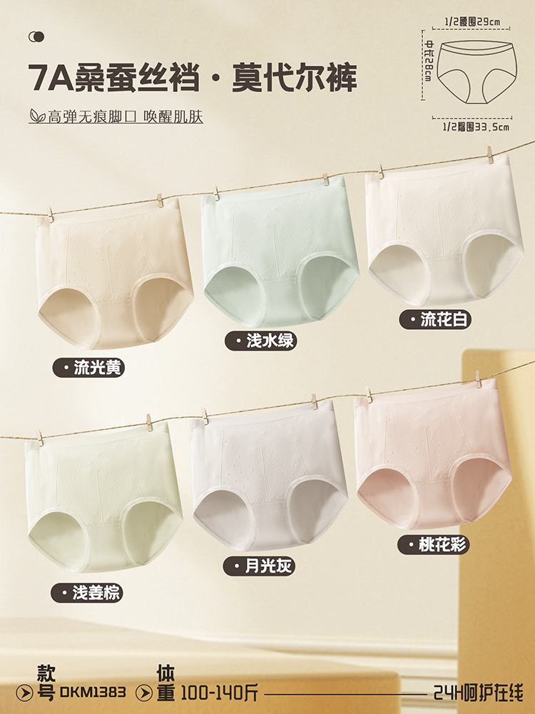 【99元3条,数量拍3】皇家丽美 莫代尔桑柔底裤中高腰加肥加大无痕女士内裤DKM1383