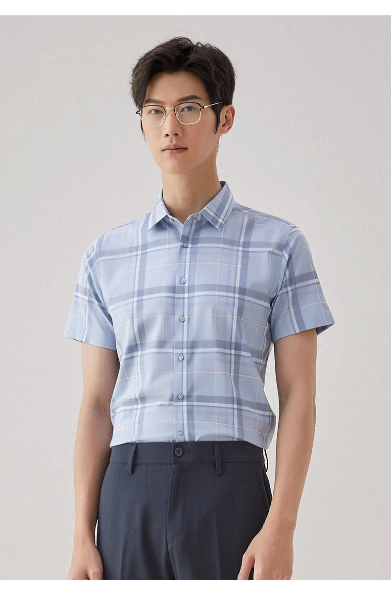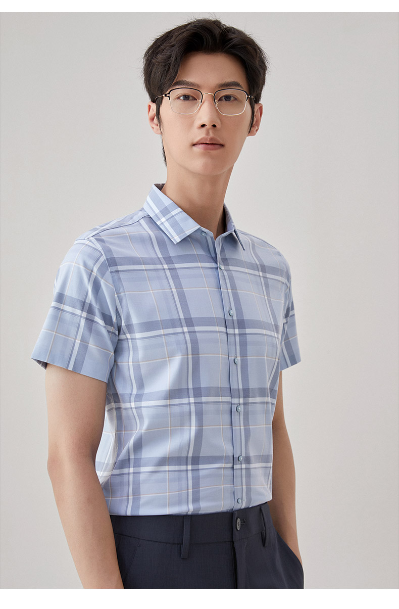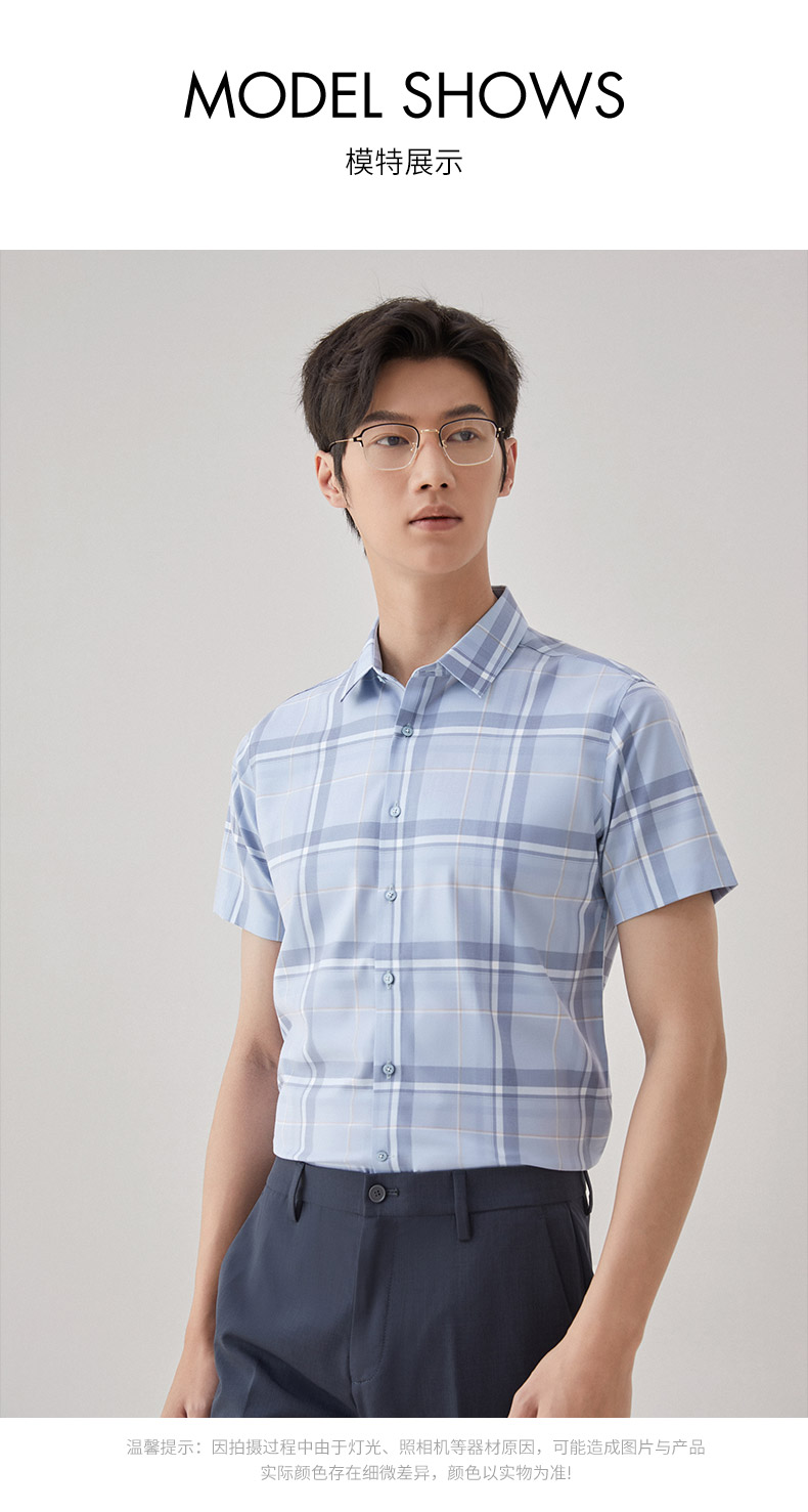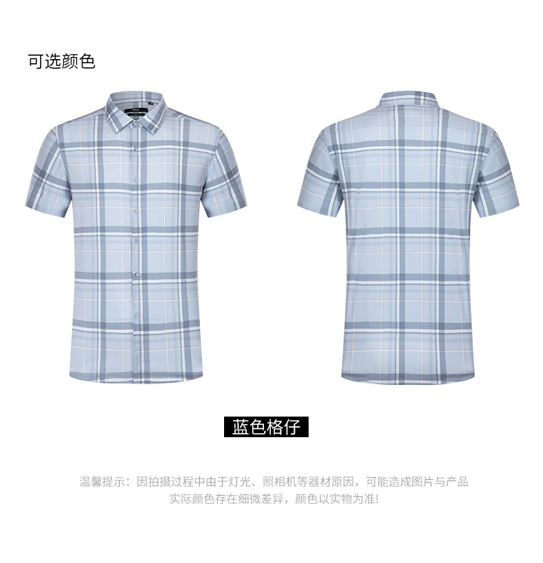 【名盾】大格印花短袖衬衫,清爽舒适,免烫易打理MXBB10612A
