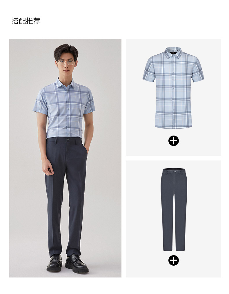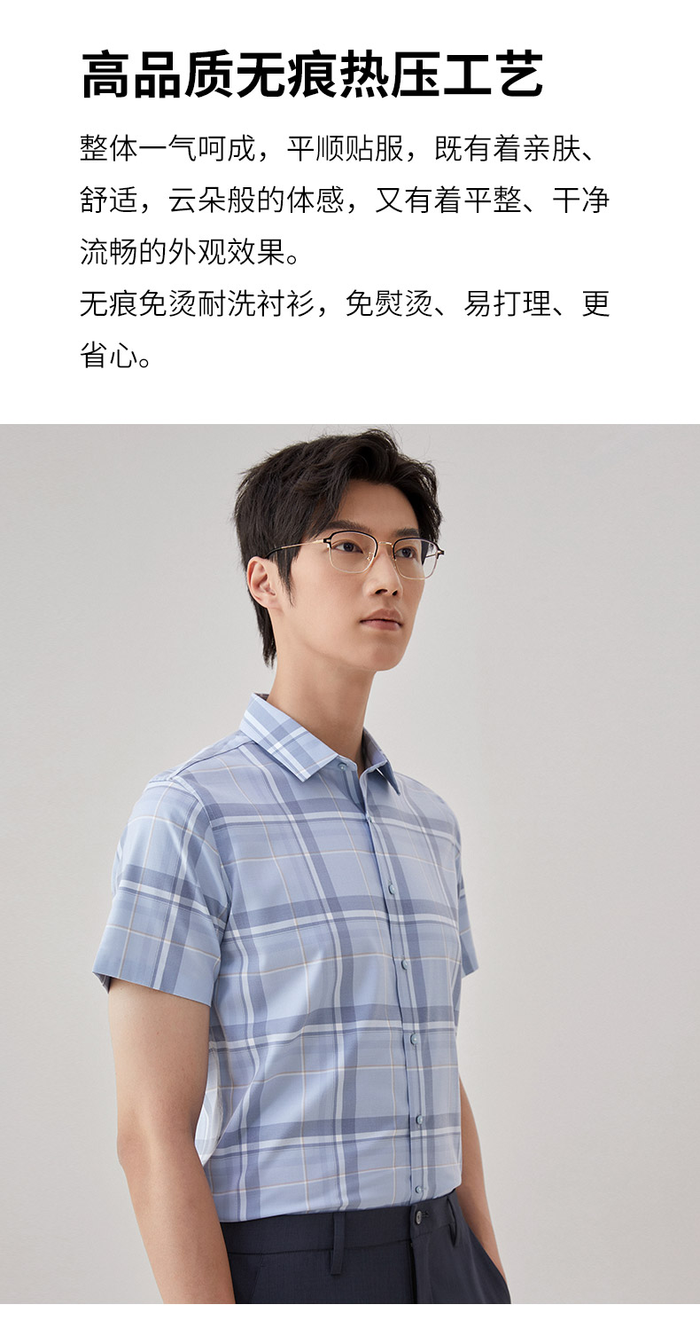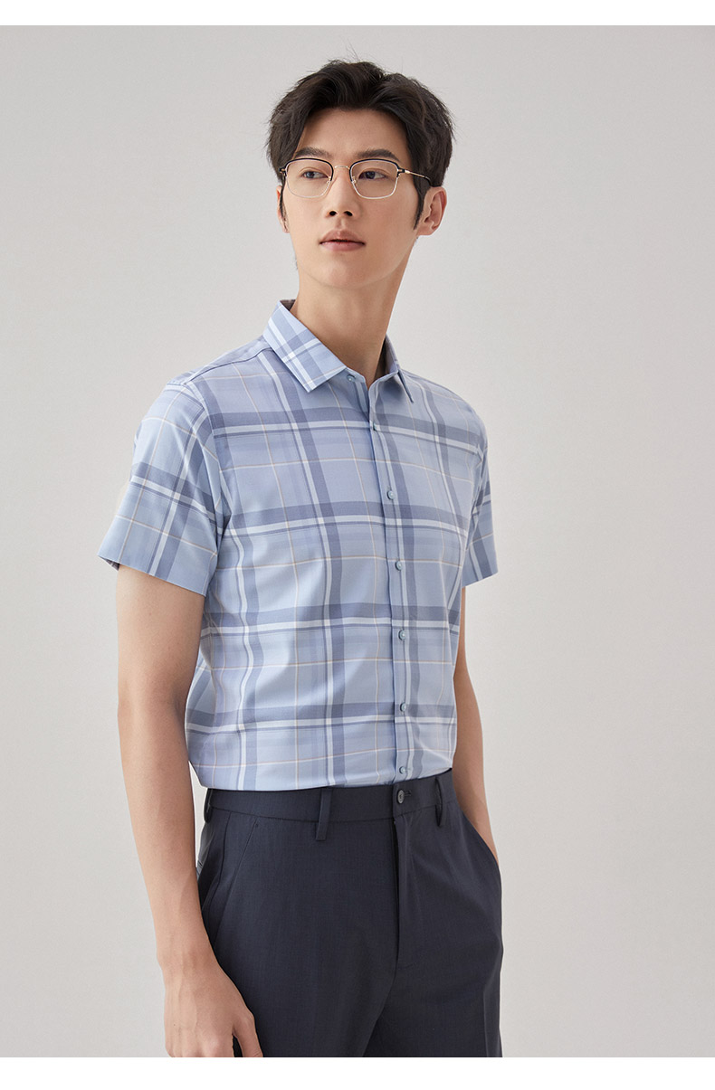 【名盾】大格印花短袖衬衫,清爽舒适,免烫易打理MXBB10612A