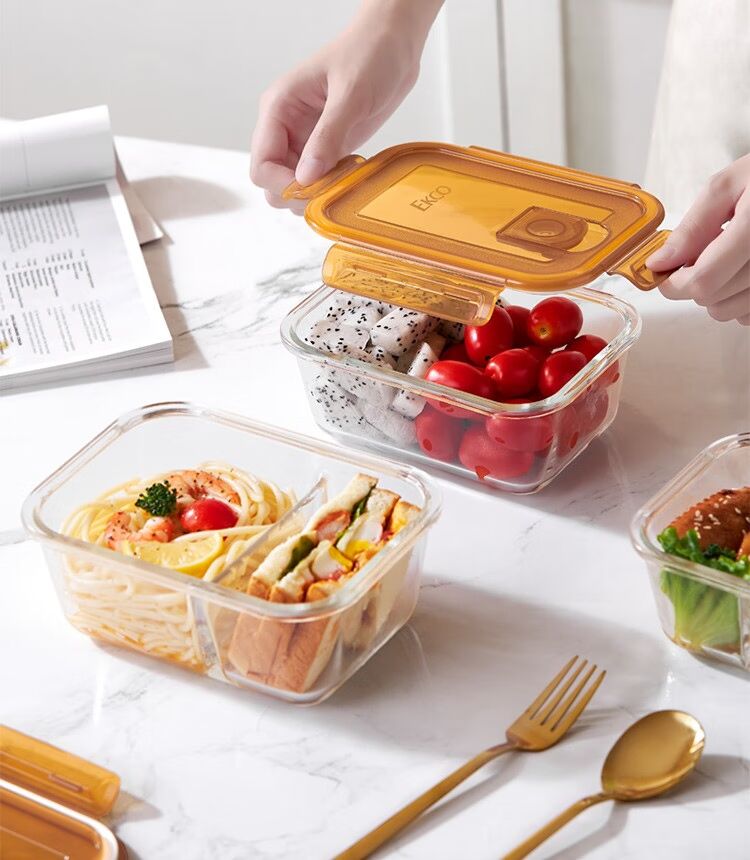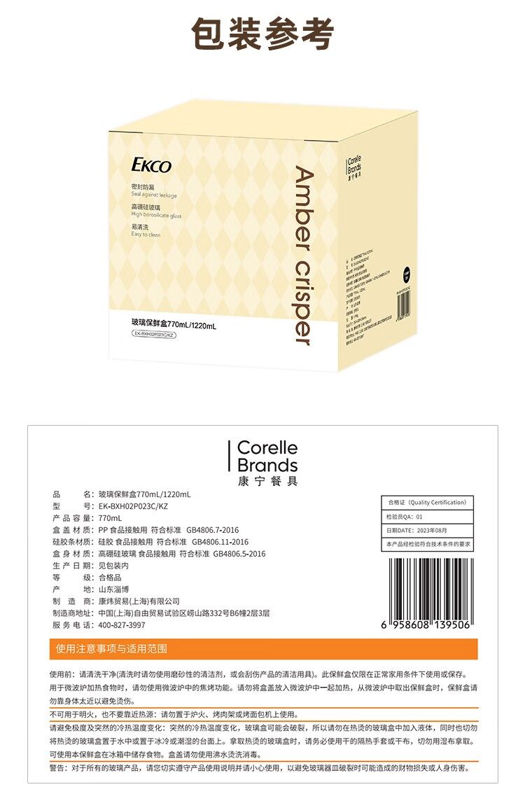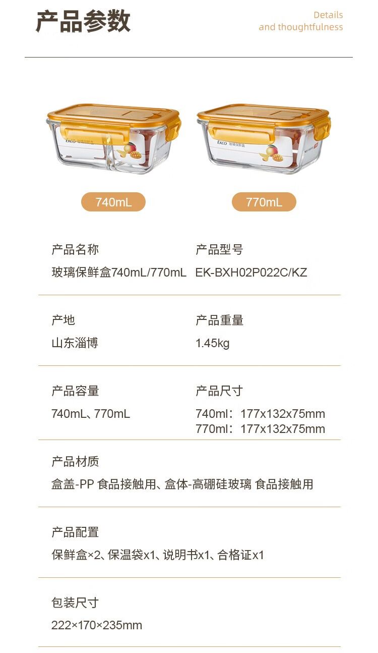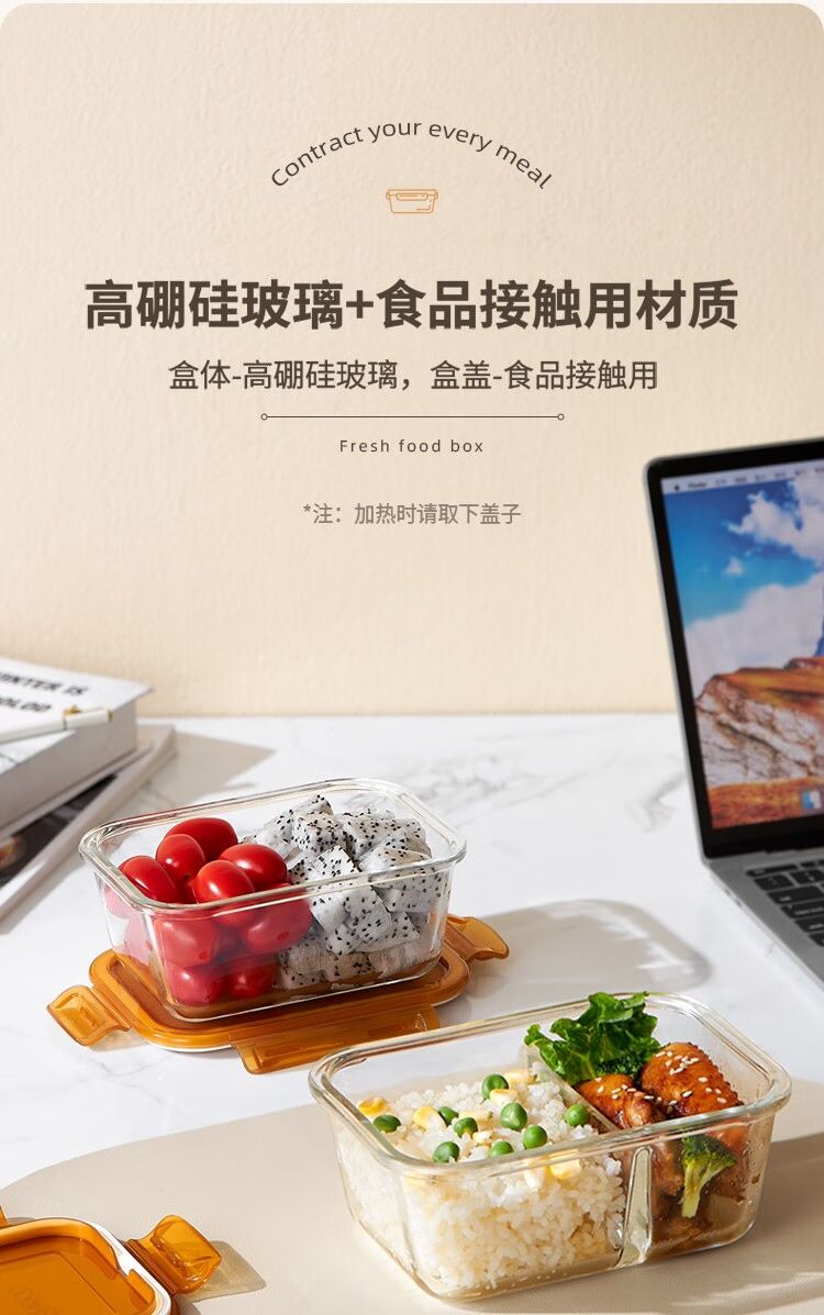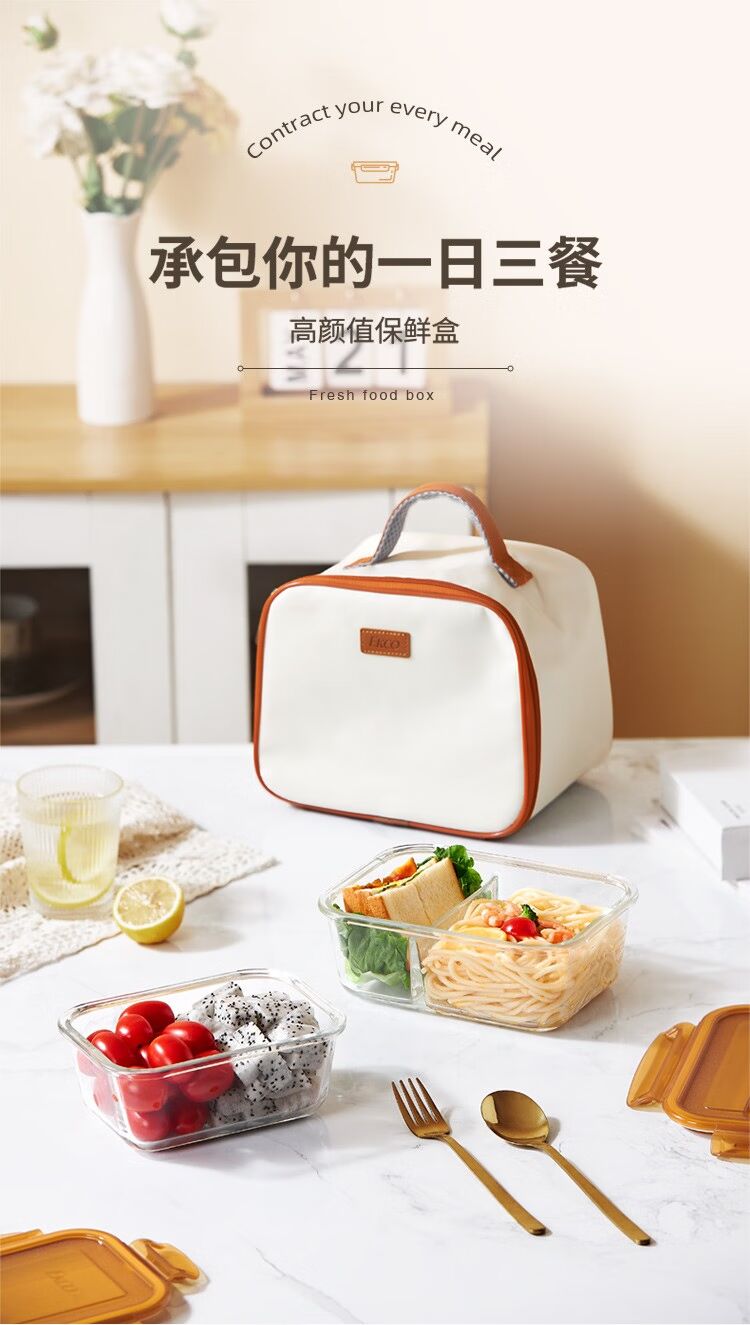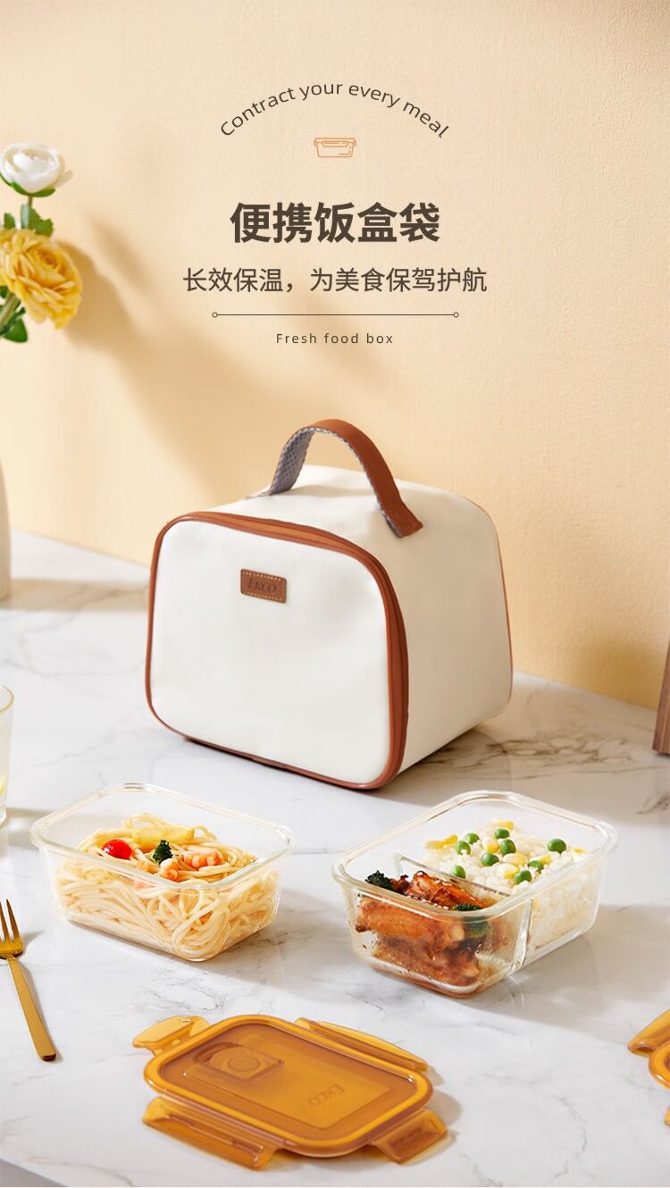 康宁玻璃保鲜盒保温袋食品级冰箱专用密封碗带盖微波炉加热饭盒套装 770ml1220ml饭包袋