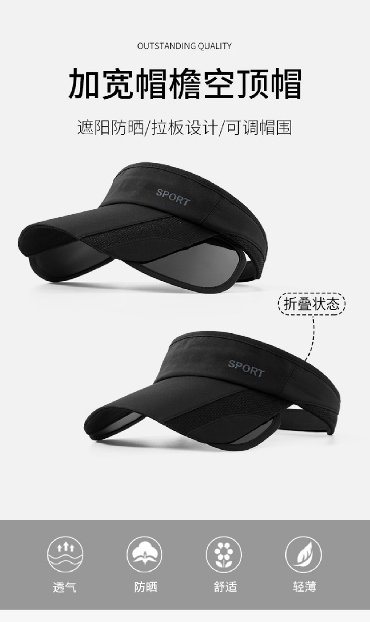 【加宽空顶遮阳帽】夏天防晒男女伸缩抽拉帽檐 户外运动休闲骑车遮阳帽太阳帽