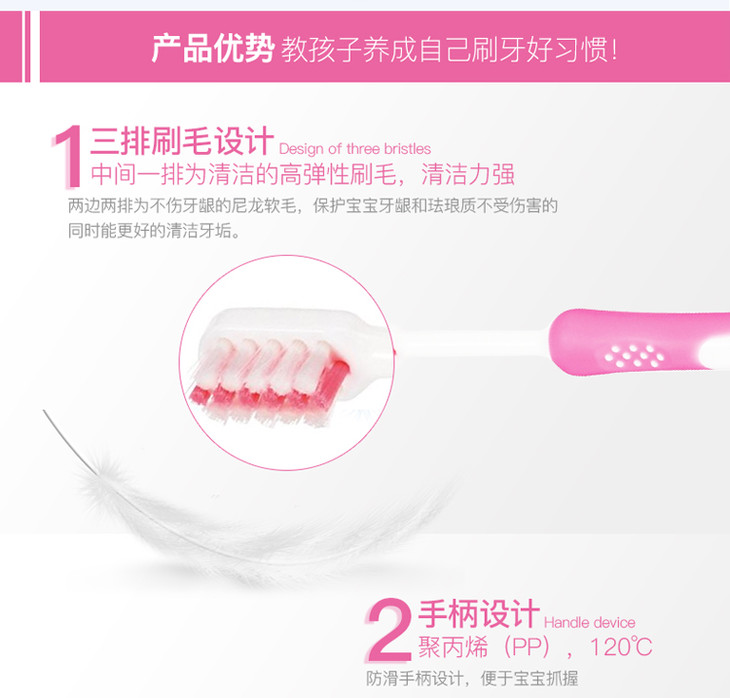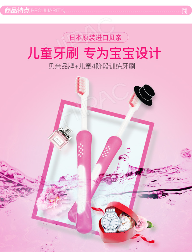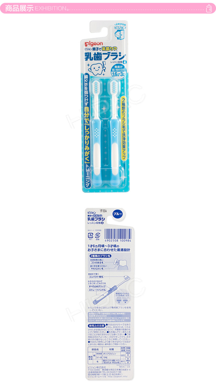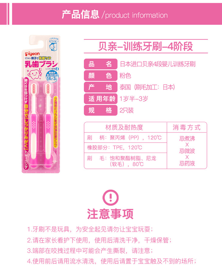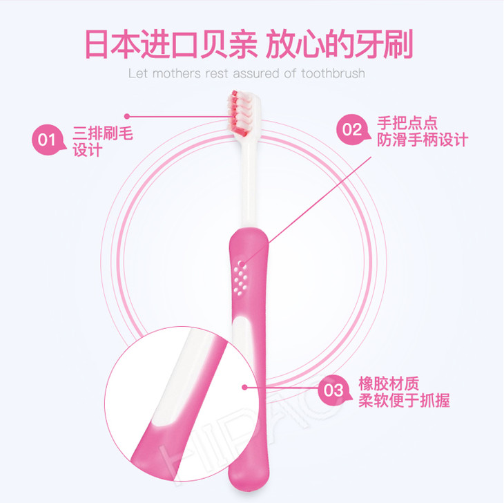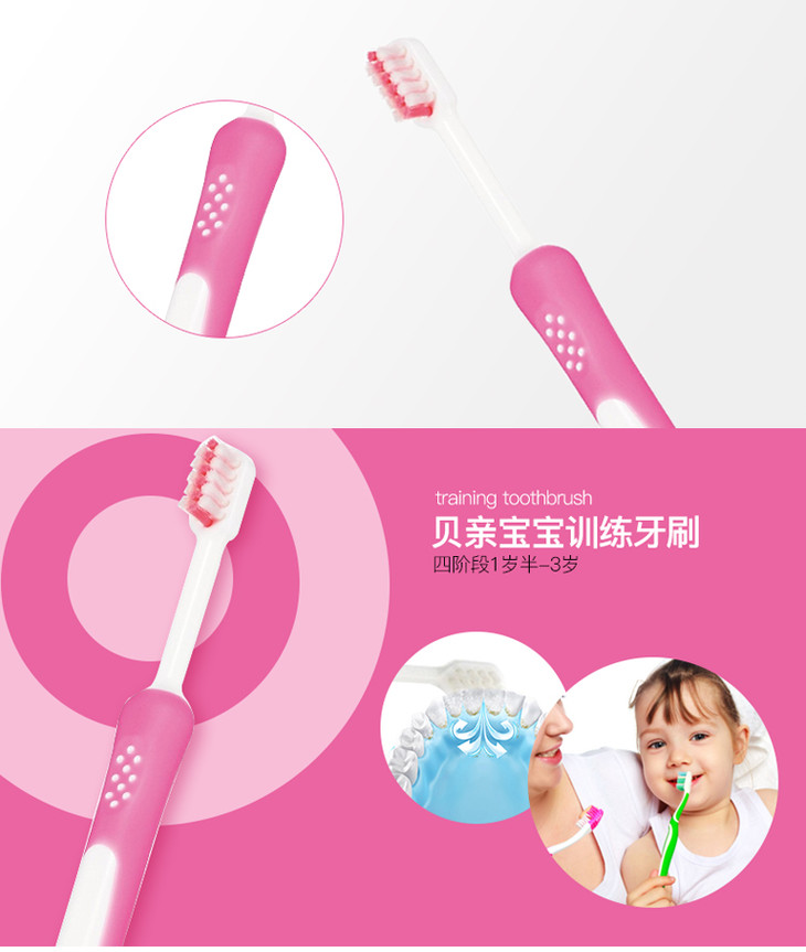 【一般贸易】日本贝亲Pigeon 婴儿超柔软刷头四阶段牙刷 粉色两支装