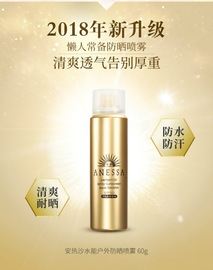 资生堂ANESSA安热沙小金瓶防晒霜60ml 防晒喷雾60G 夏日出行无负担,拒做小黑妹