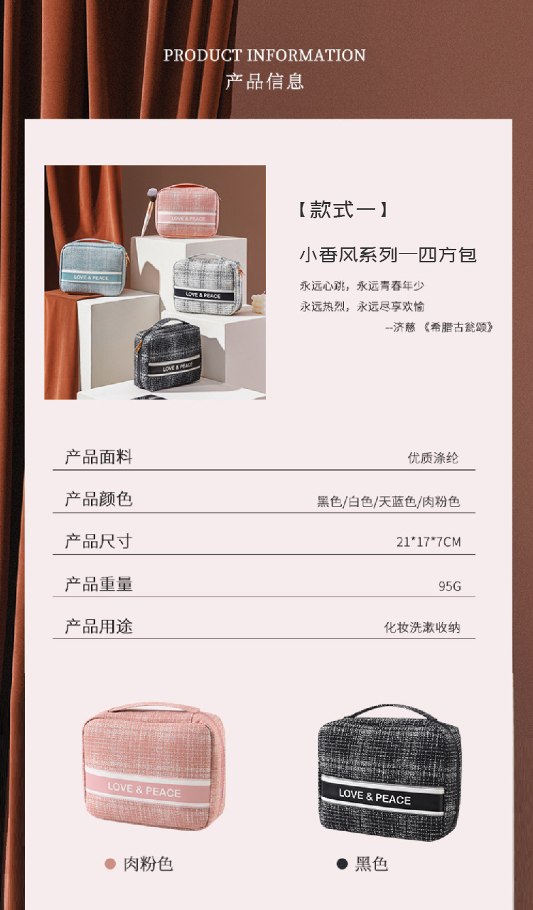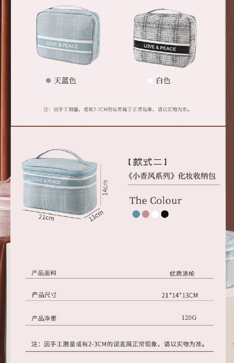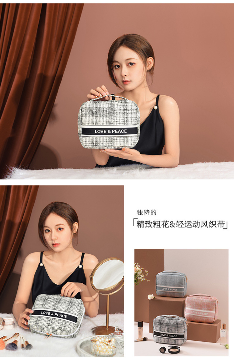 【小香风四方包】2024新款韩版大号旅行化妆包 轻奢小香便携女士收纳包