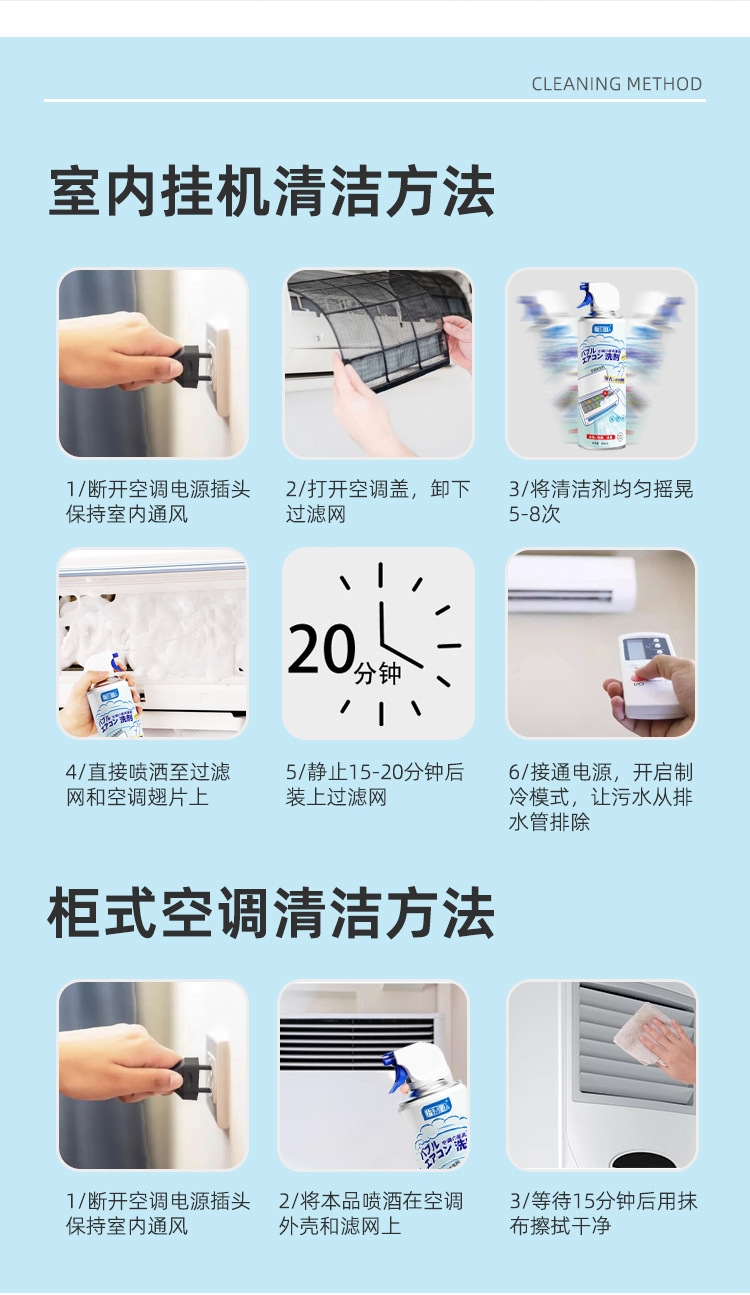 赠送排水袋【免拆洗!省时省力】空调清洗剂免拆洗强力去污渍异味除菌除尘家用外机挂机泡沫清洁剂。ry