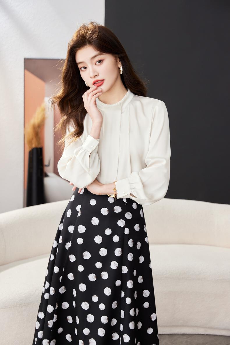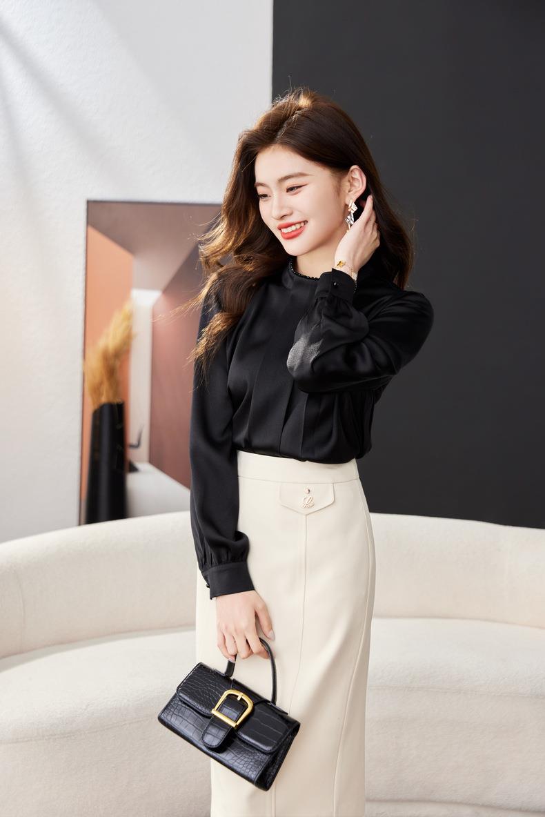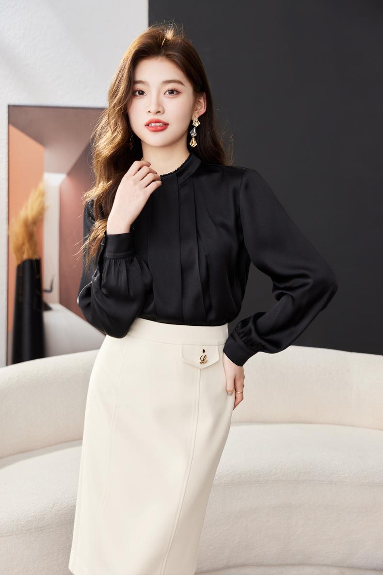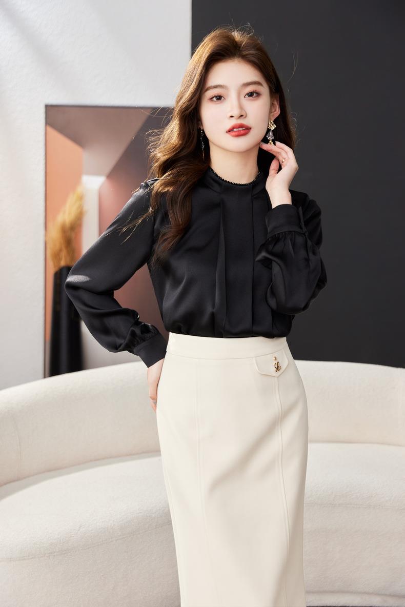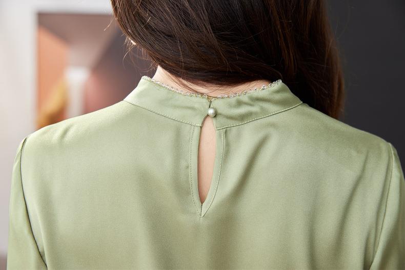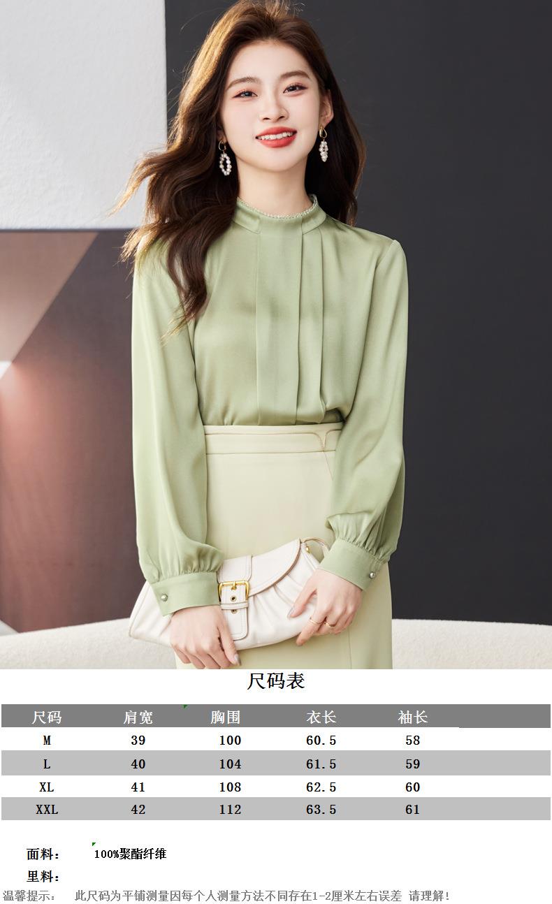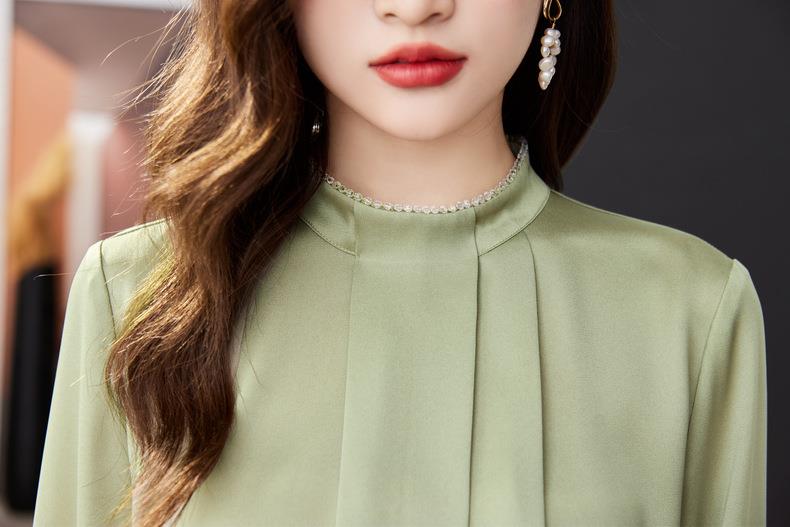 钉珠缎面雪纺衫女上衣2024春装新款洋气小衫长袖女衬衣1775