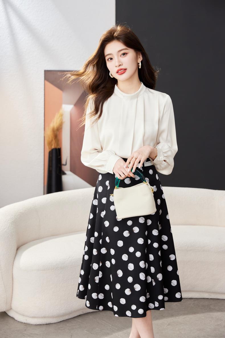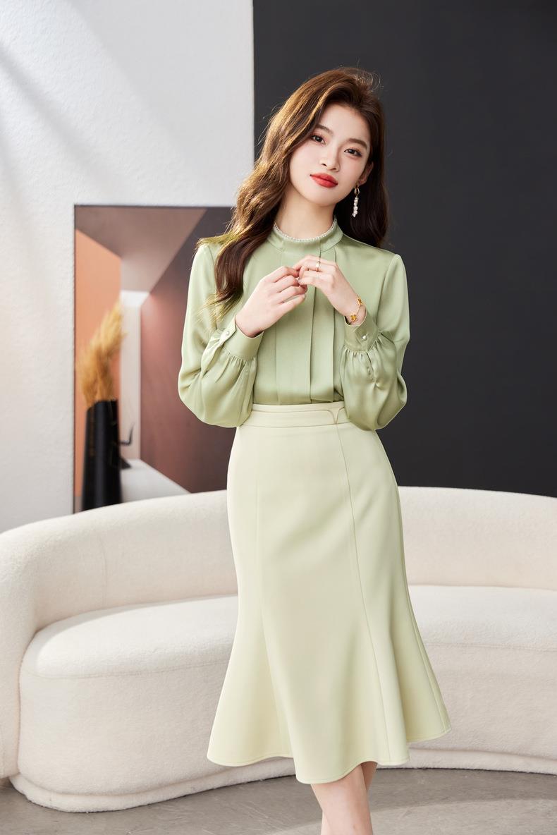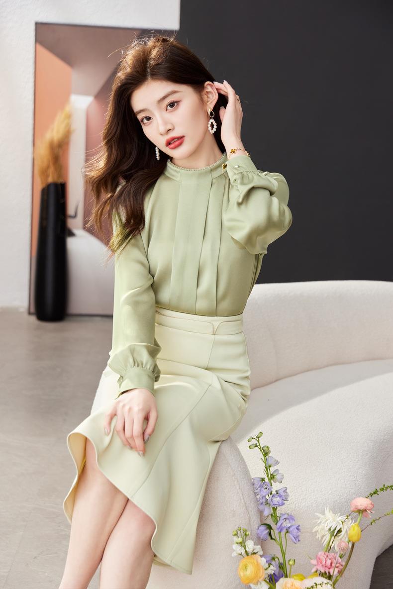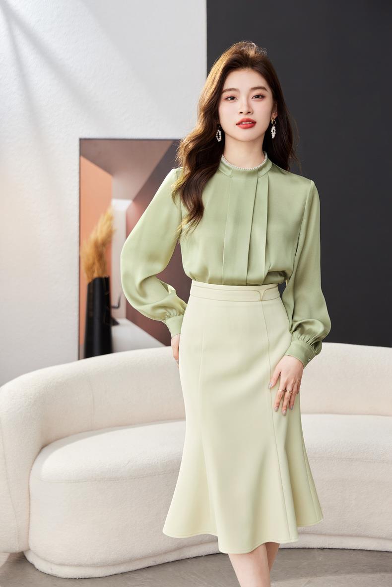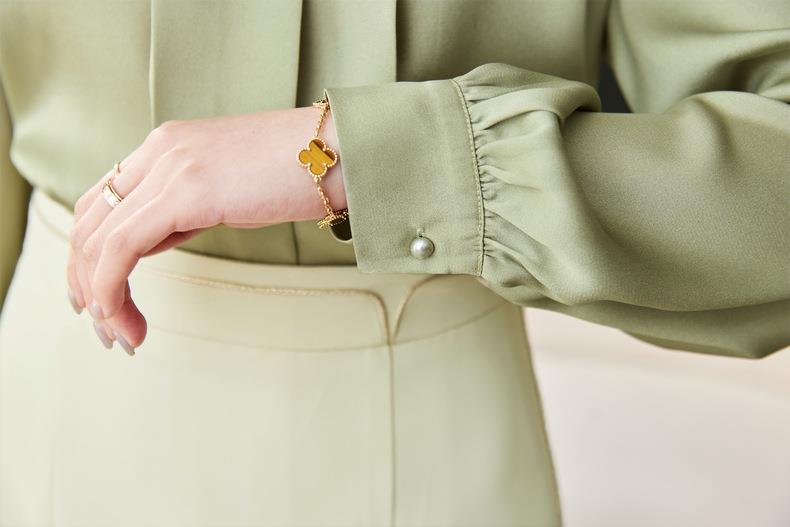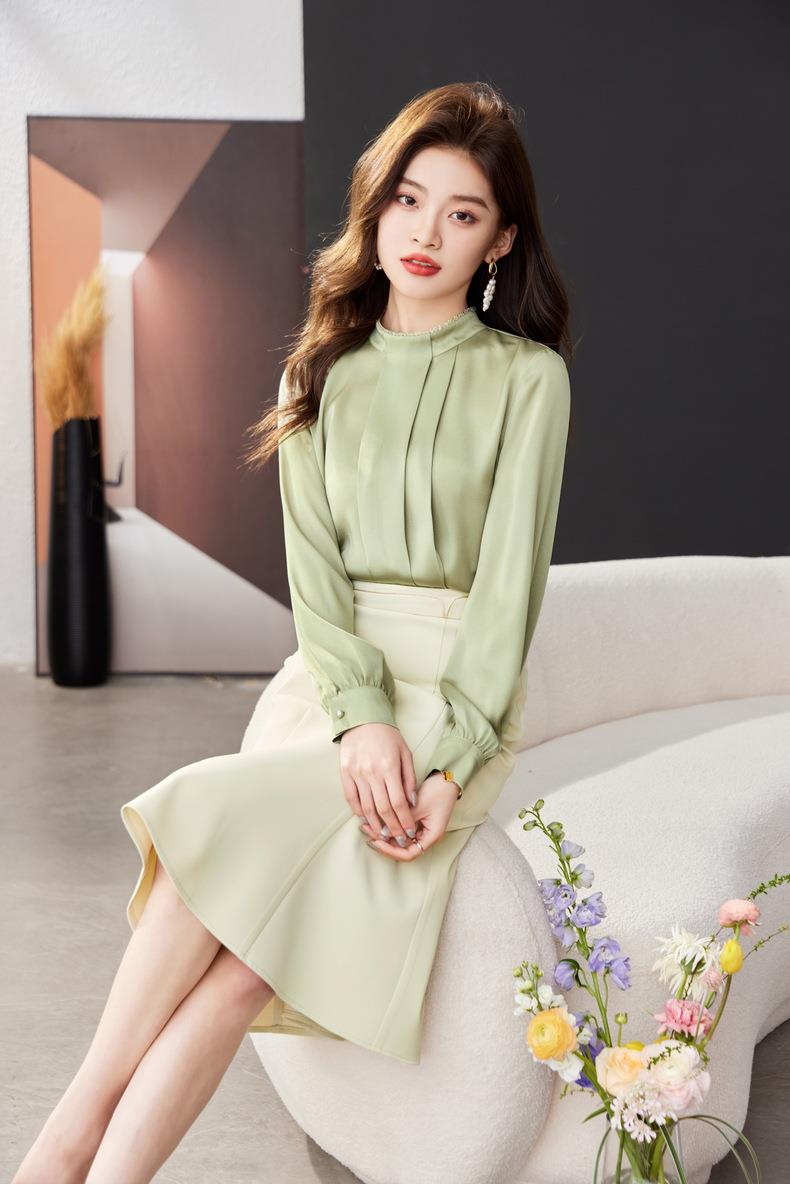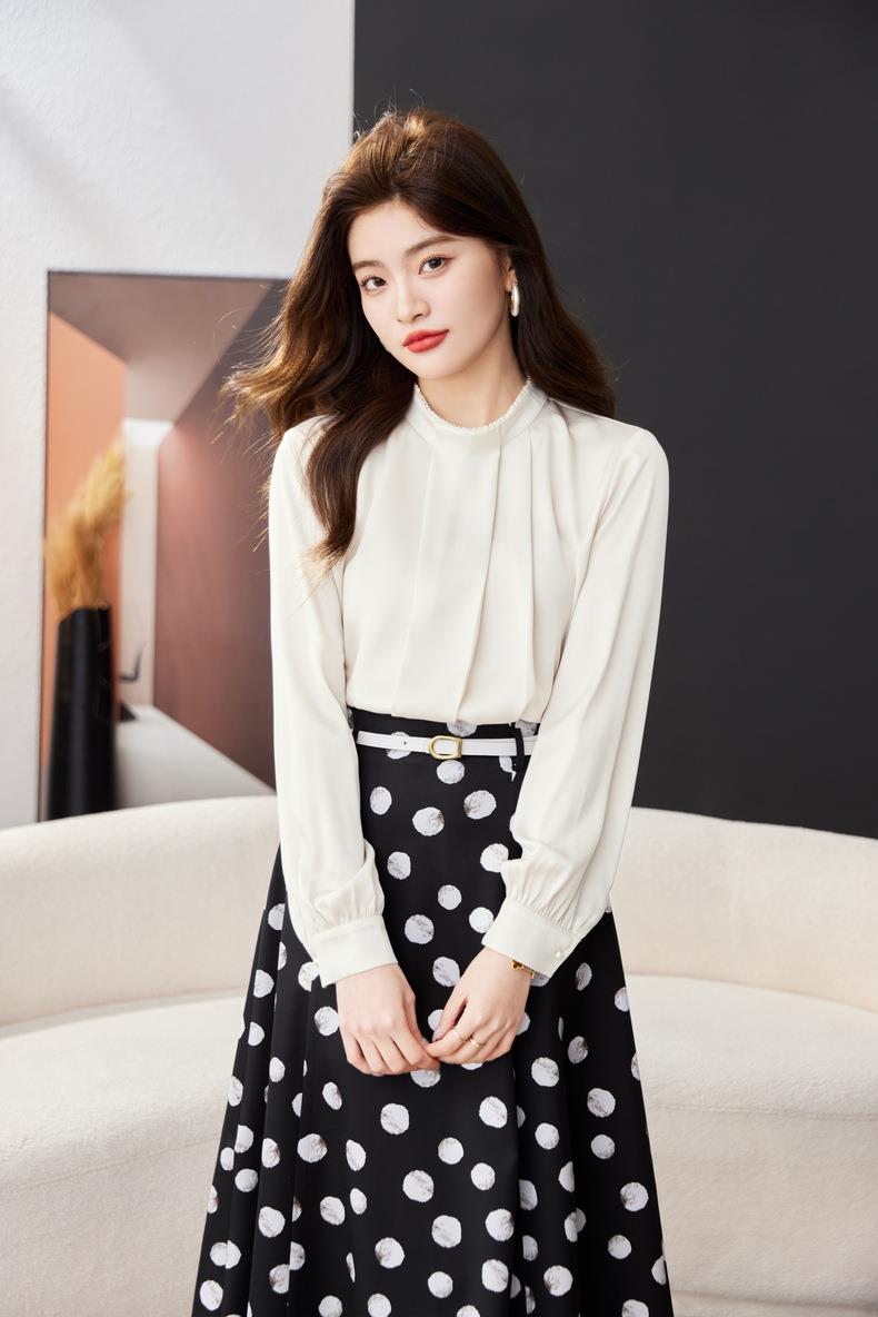 钉珠缎面雪纺衫女上衣2024春装新款洋气小衫长袖女衬衣1775
