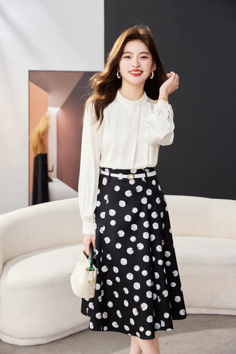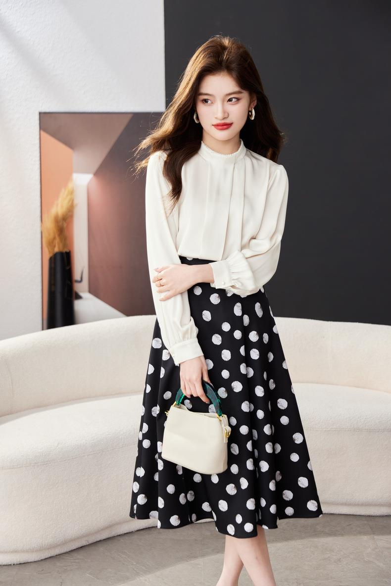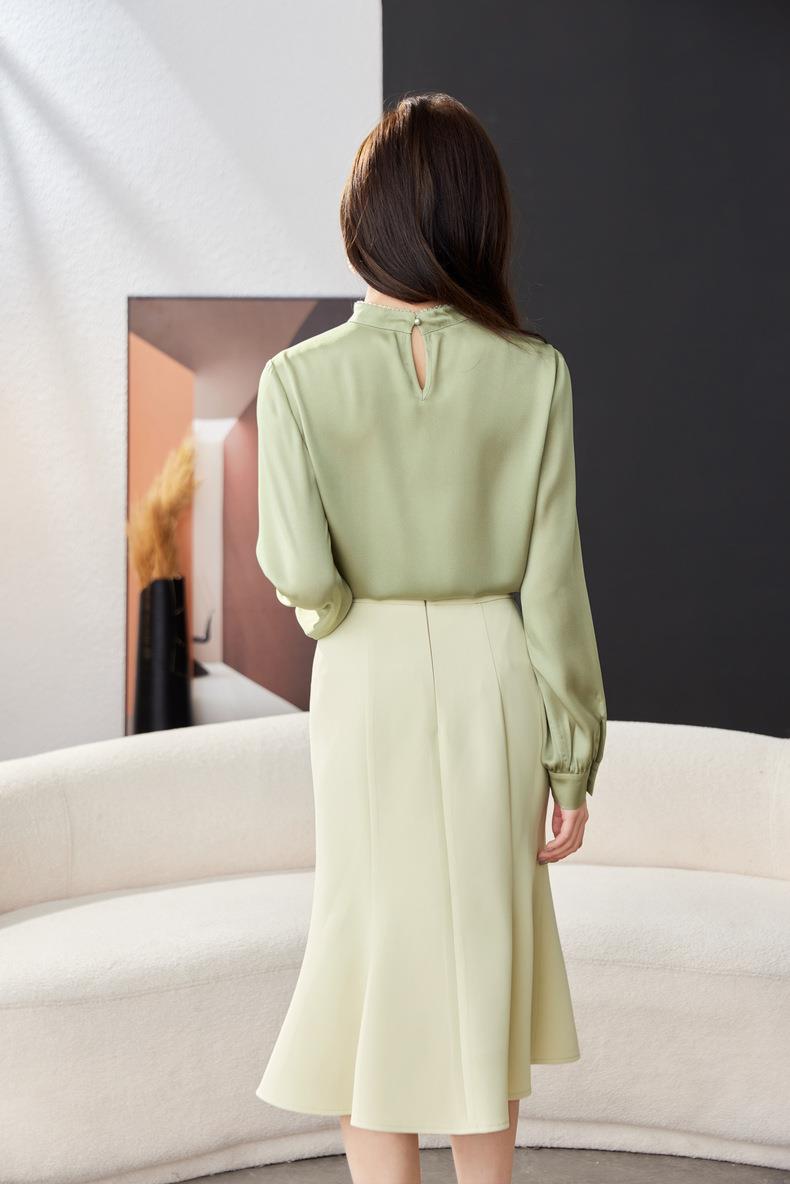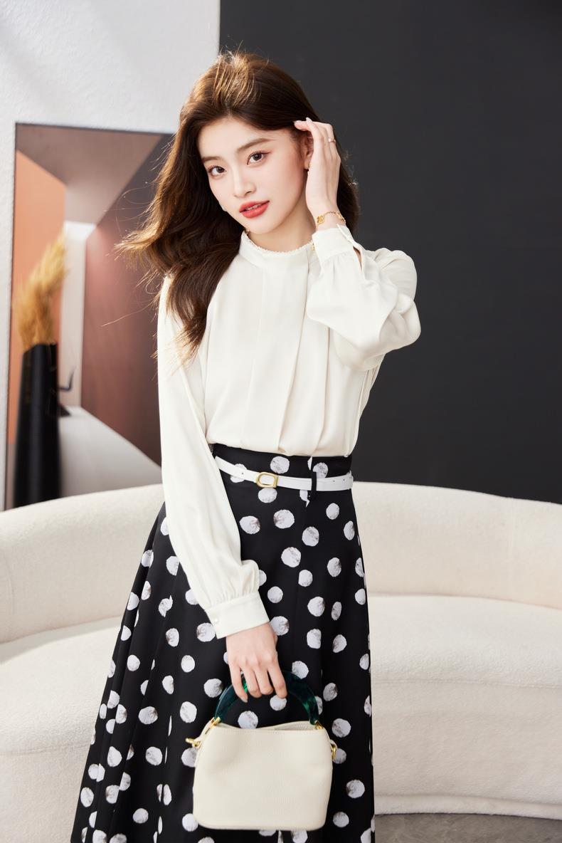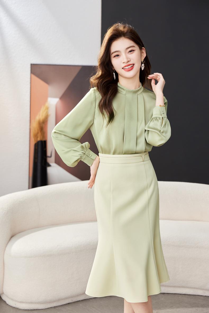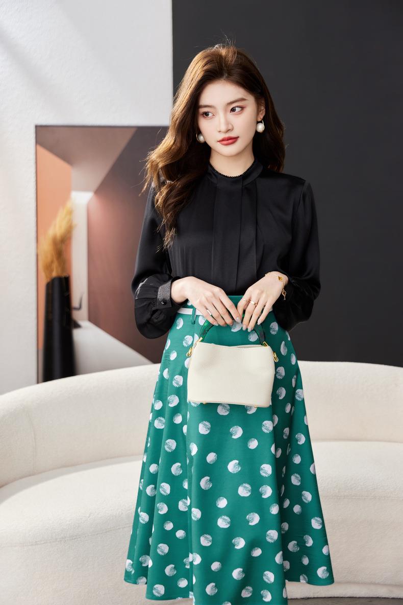 钉珠缎面雪纺衫女上衣2024春装新款洋气小衫长袖女衬衣1775