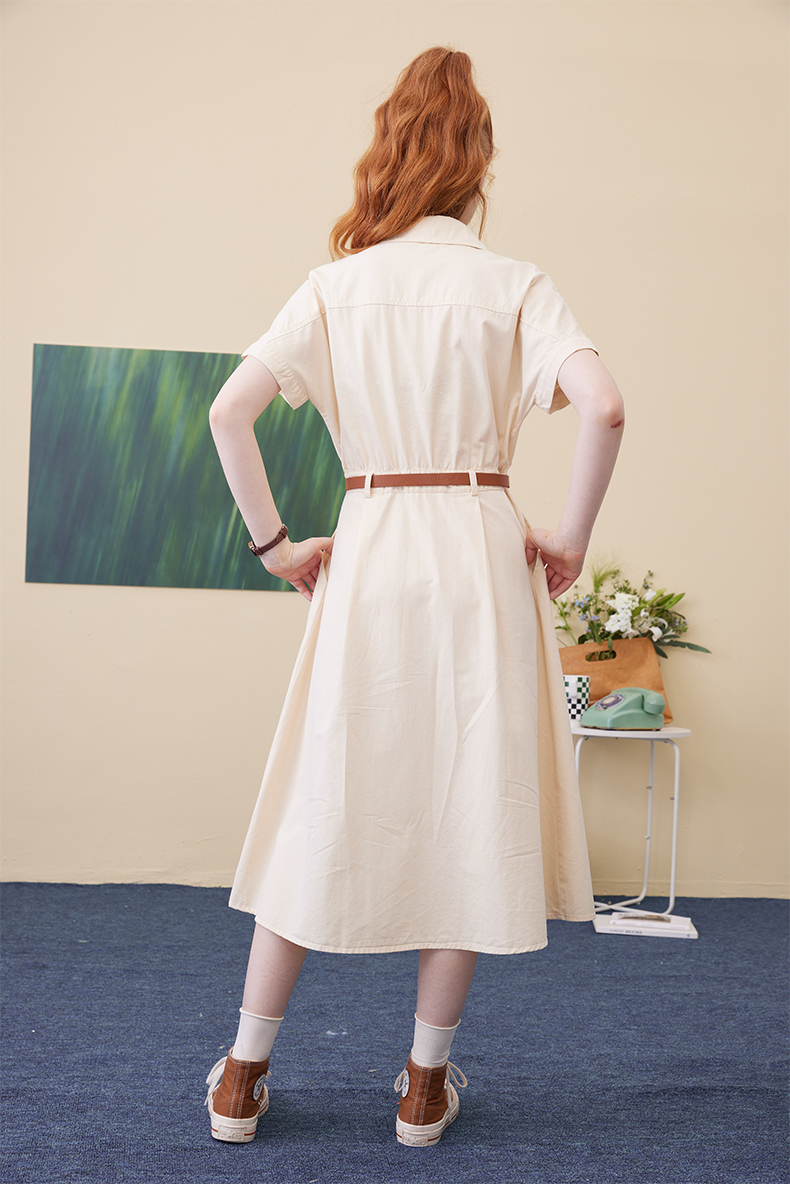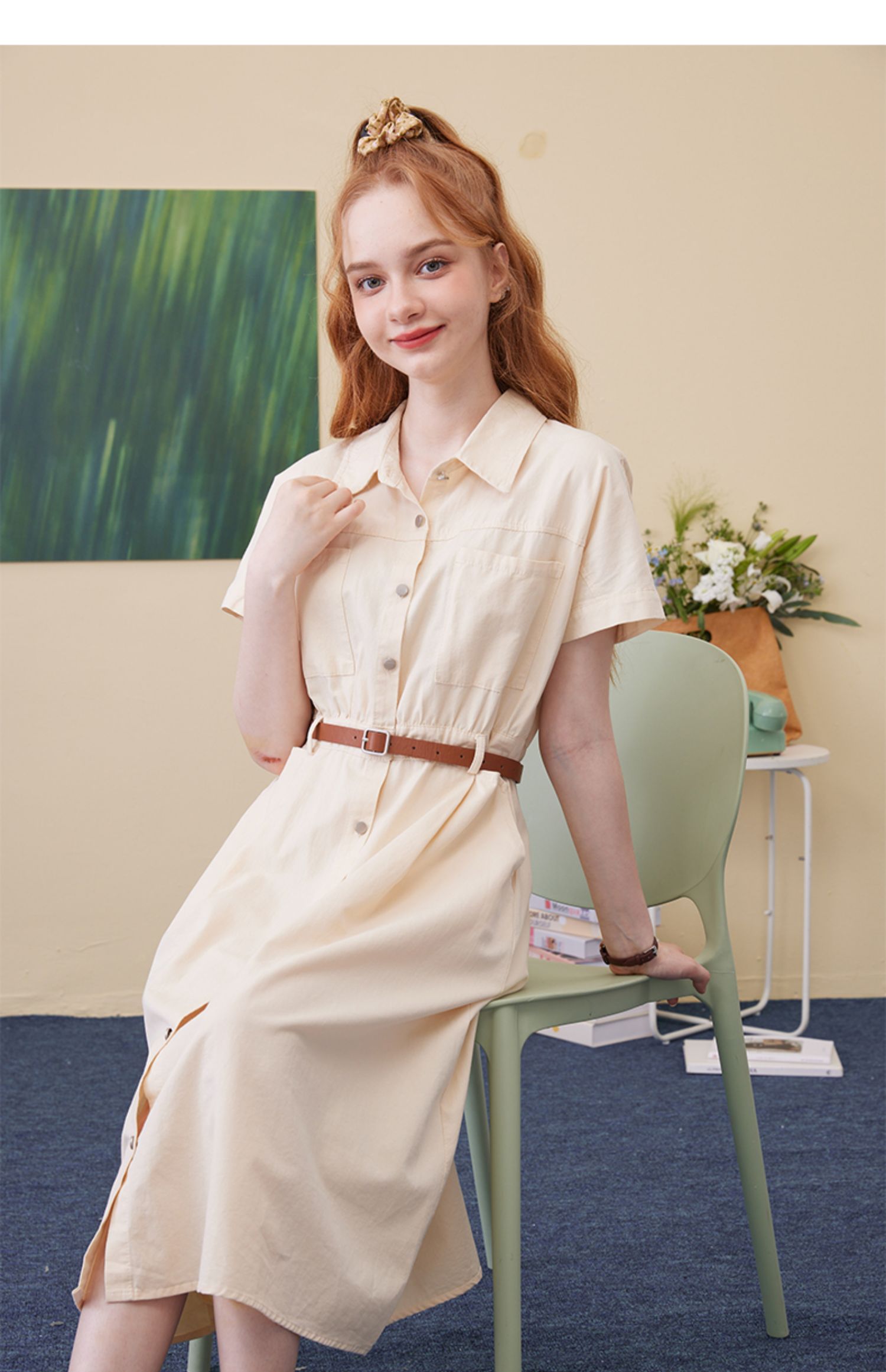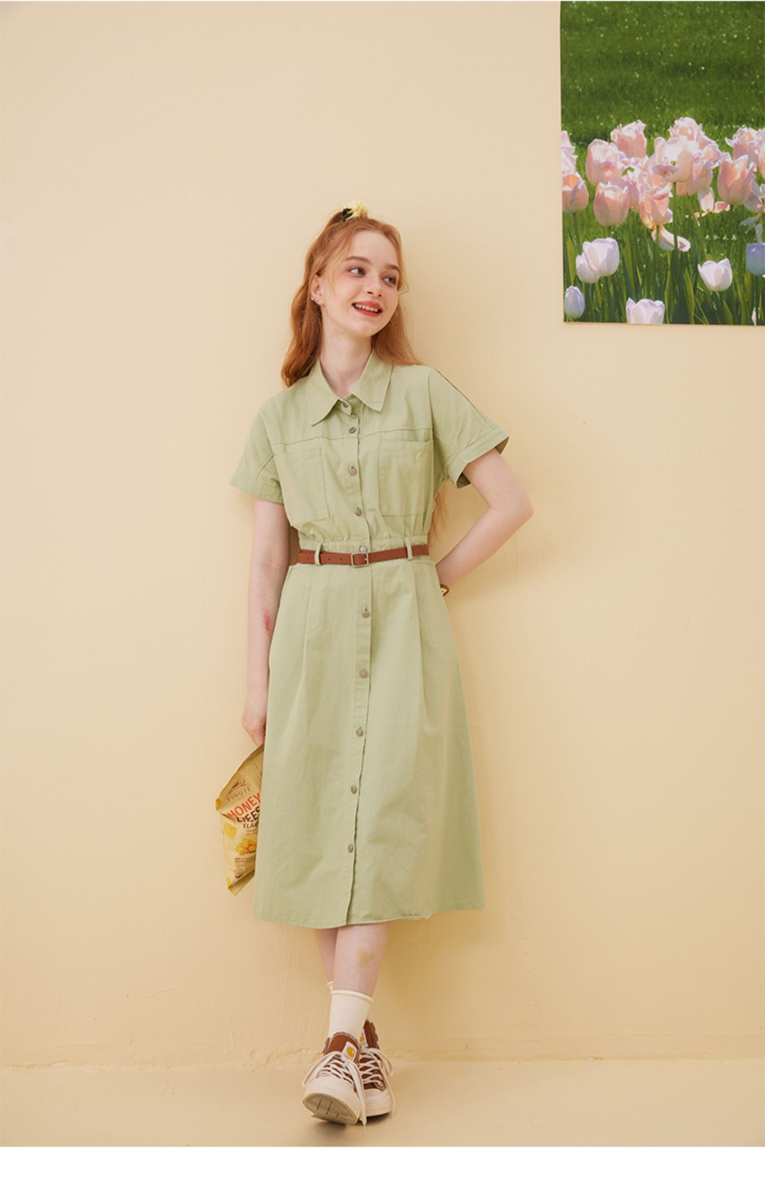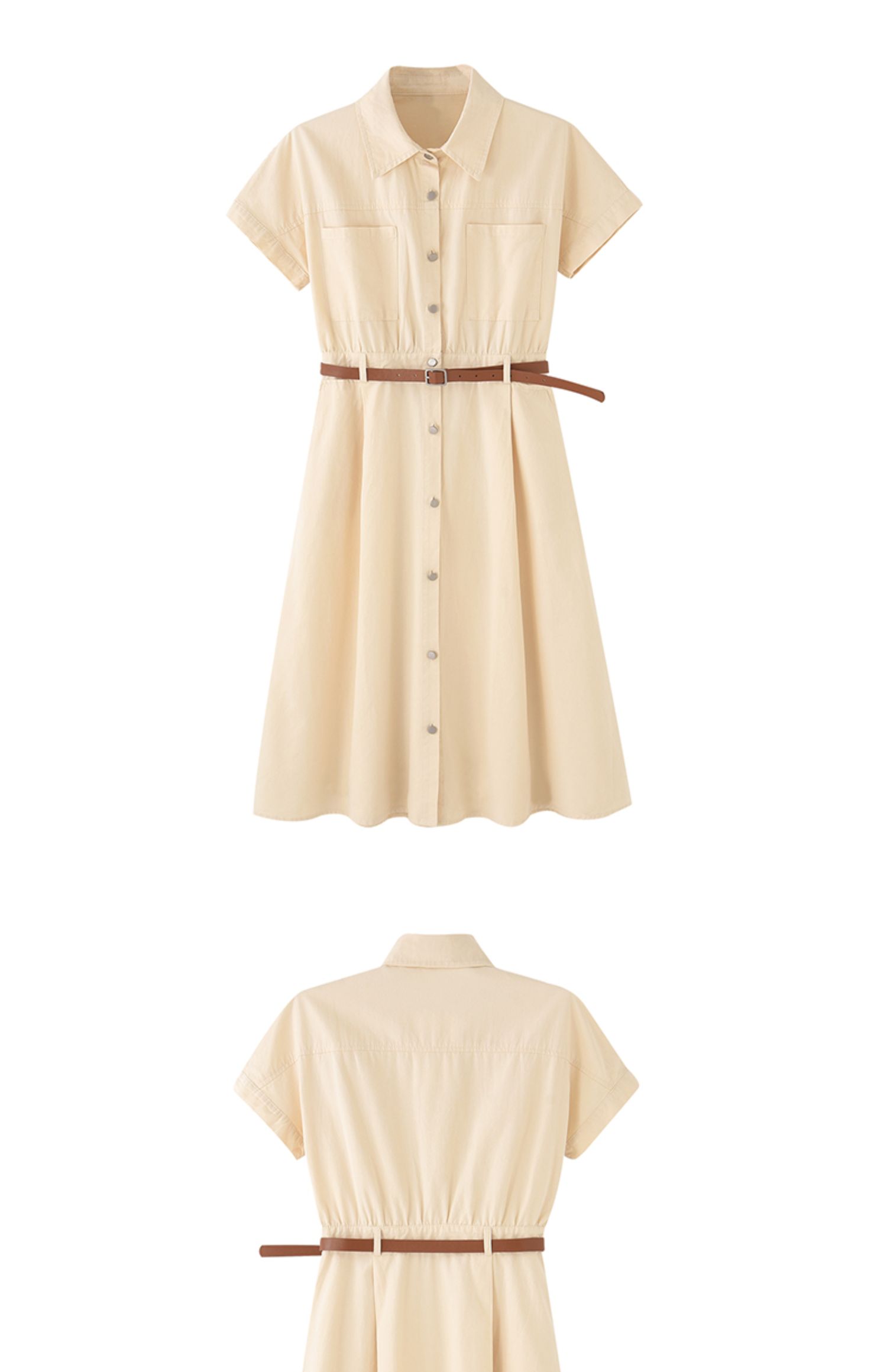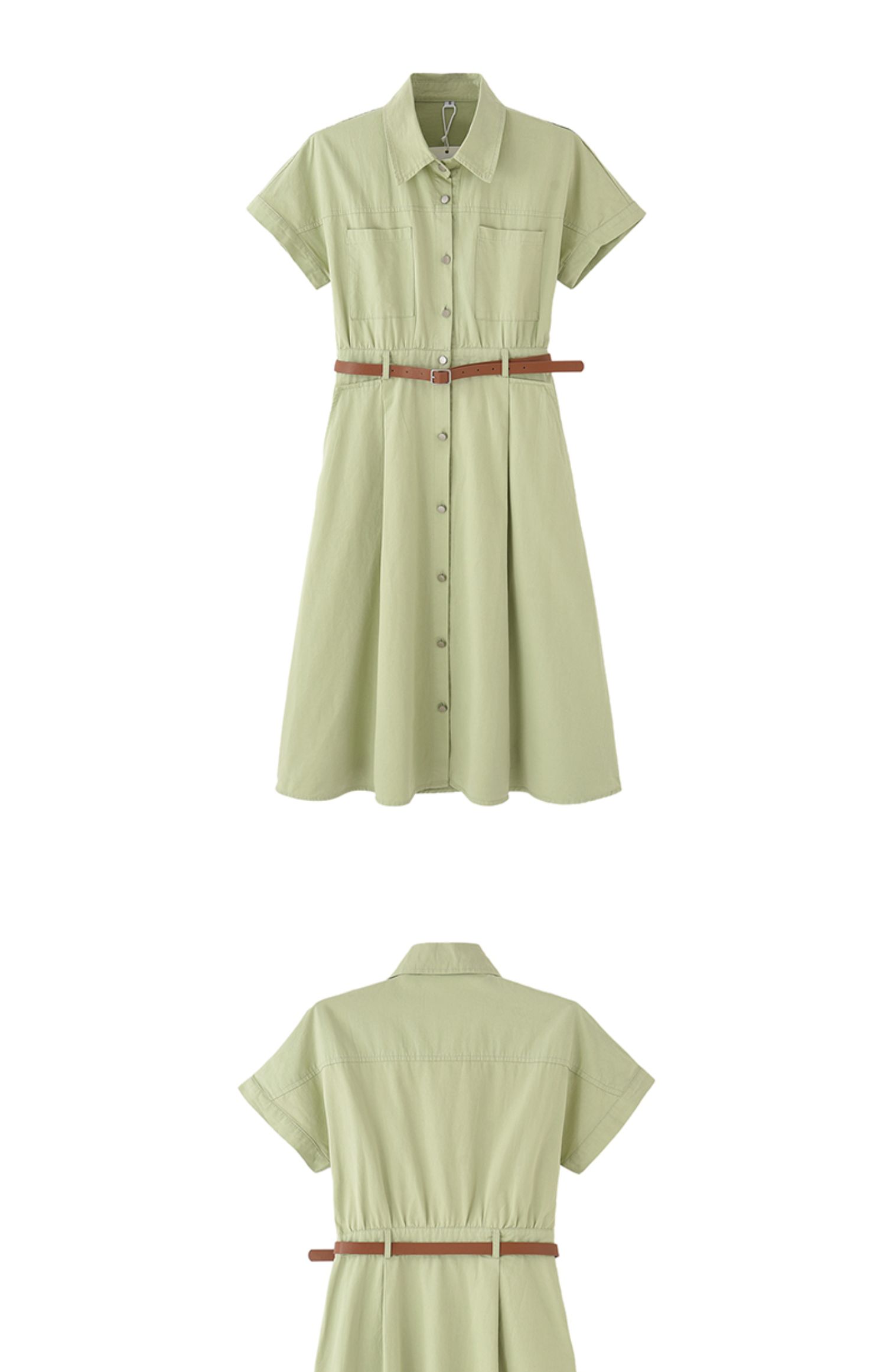 女装翻领短袖中长款连衣裙(配腰带)Q3222332