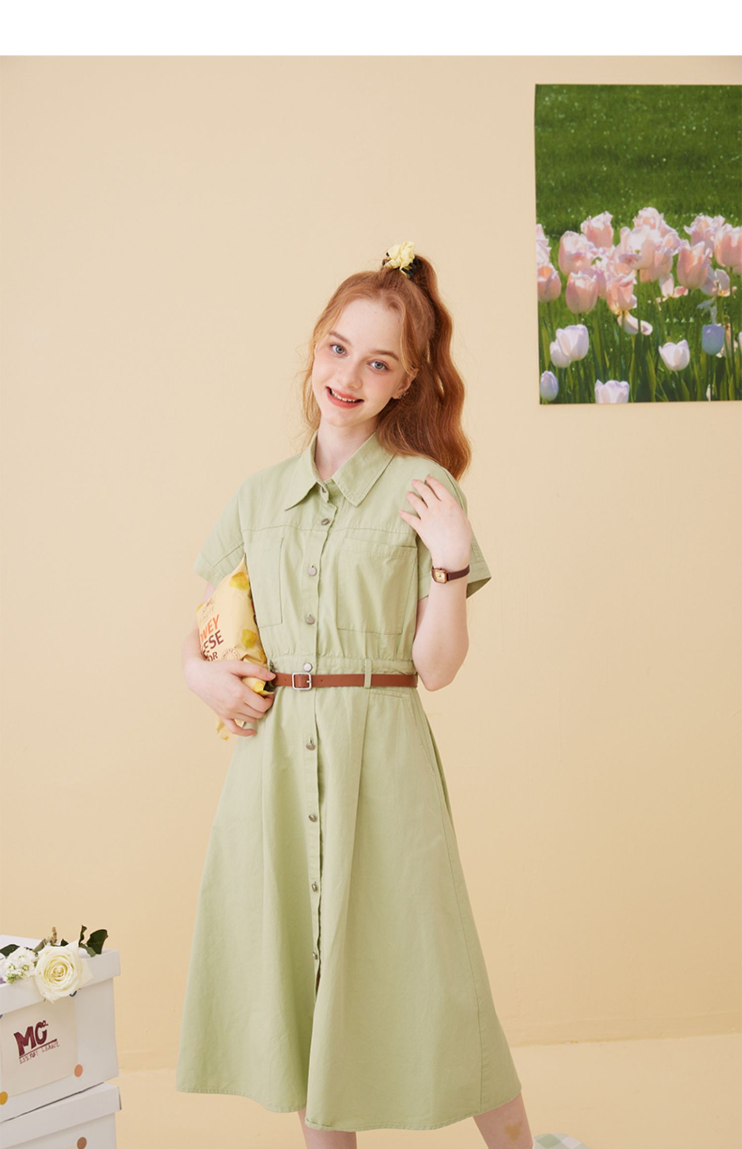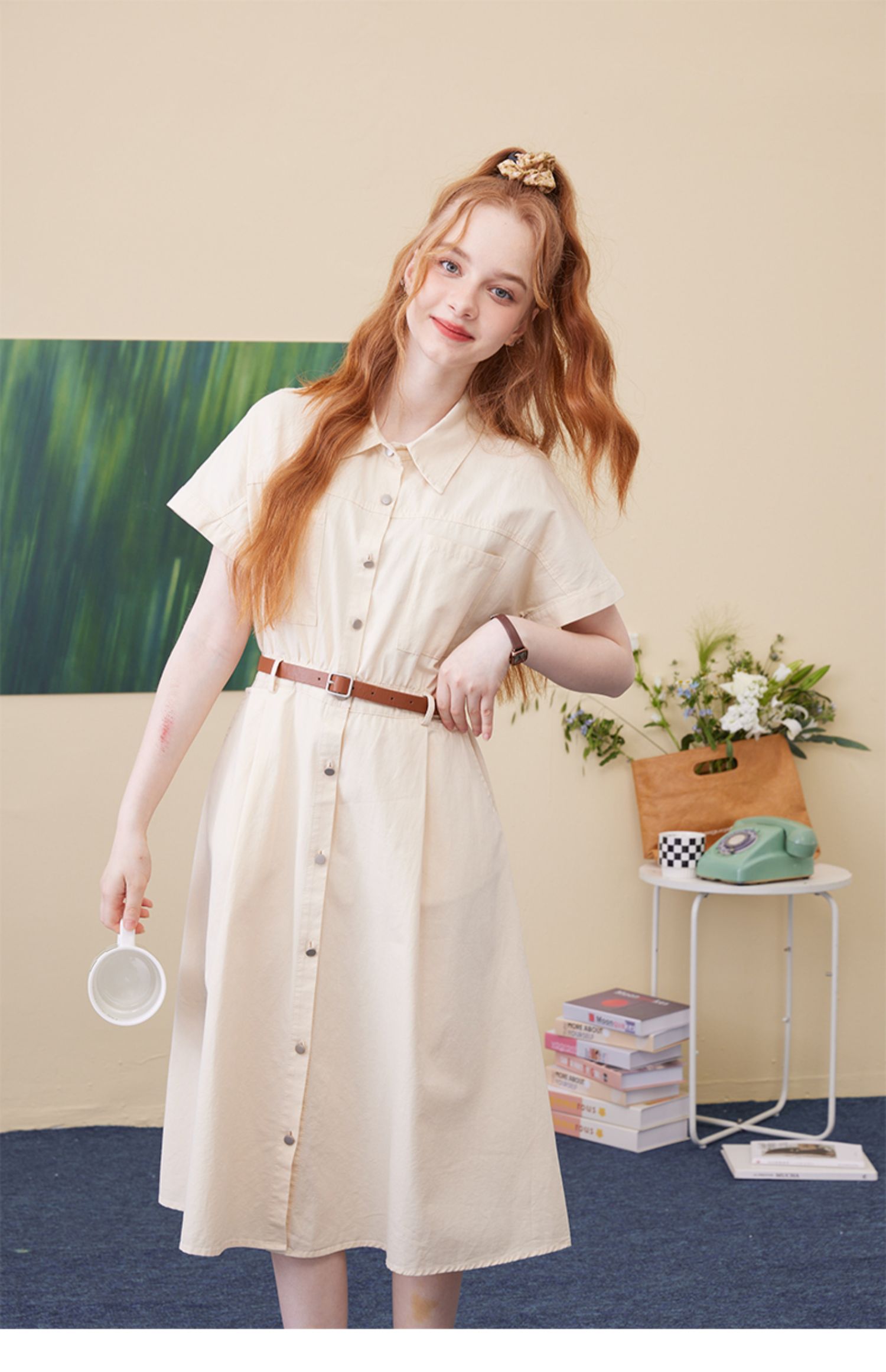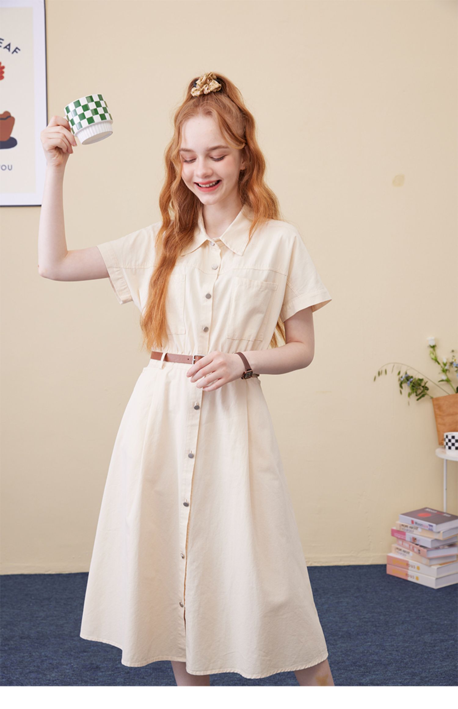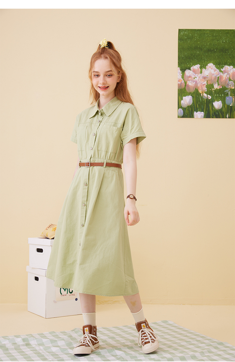 女装翻领短袖中长款连衣裙(配腰带)Q3222332