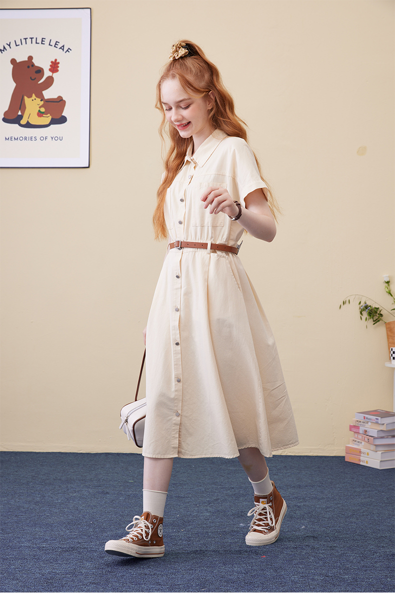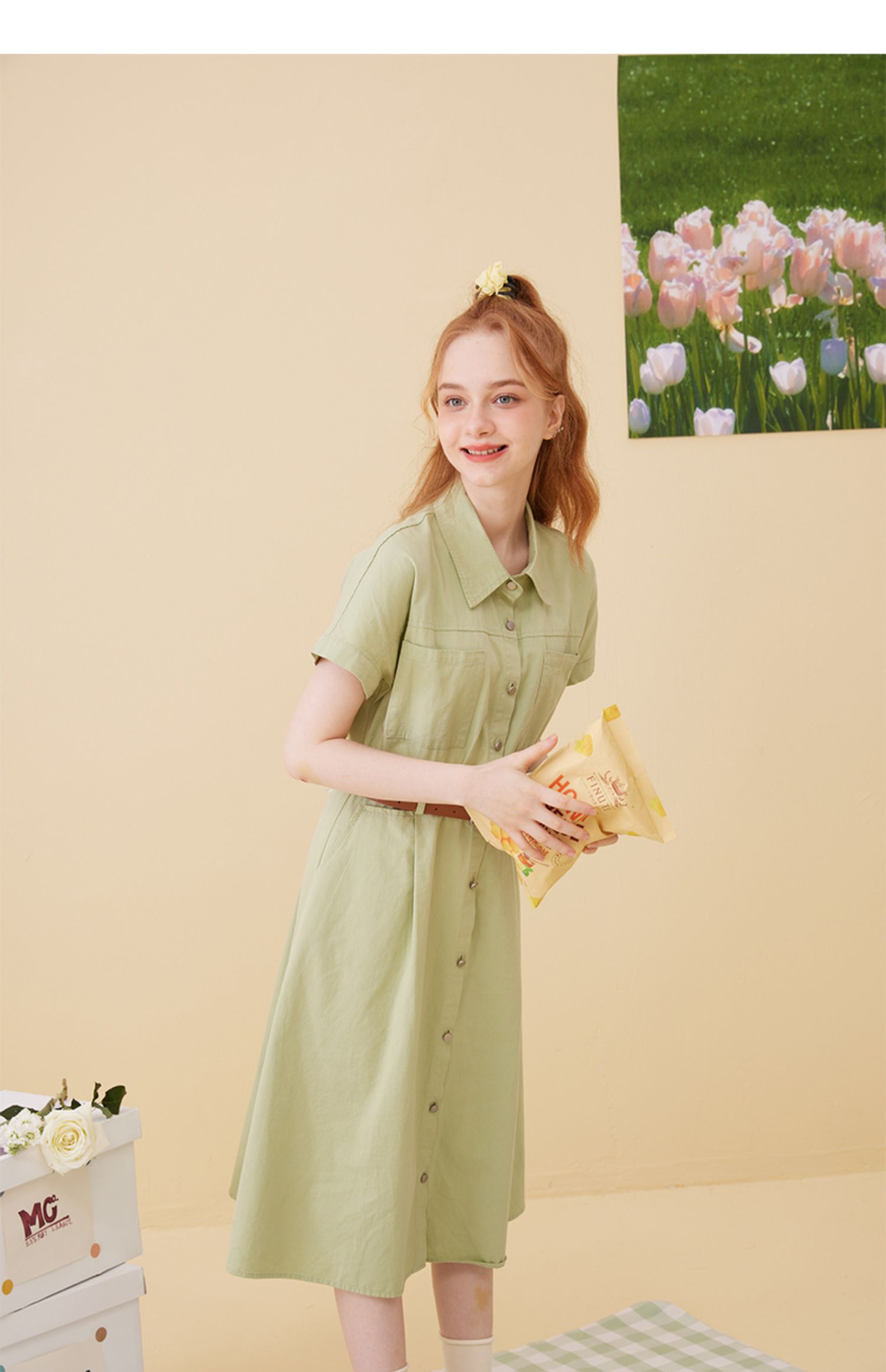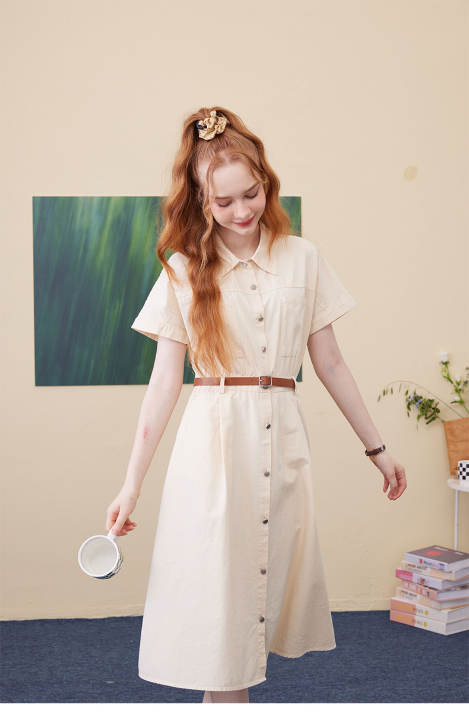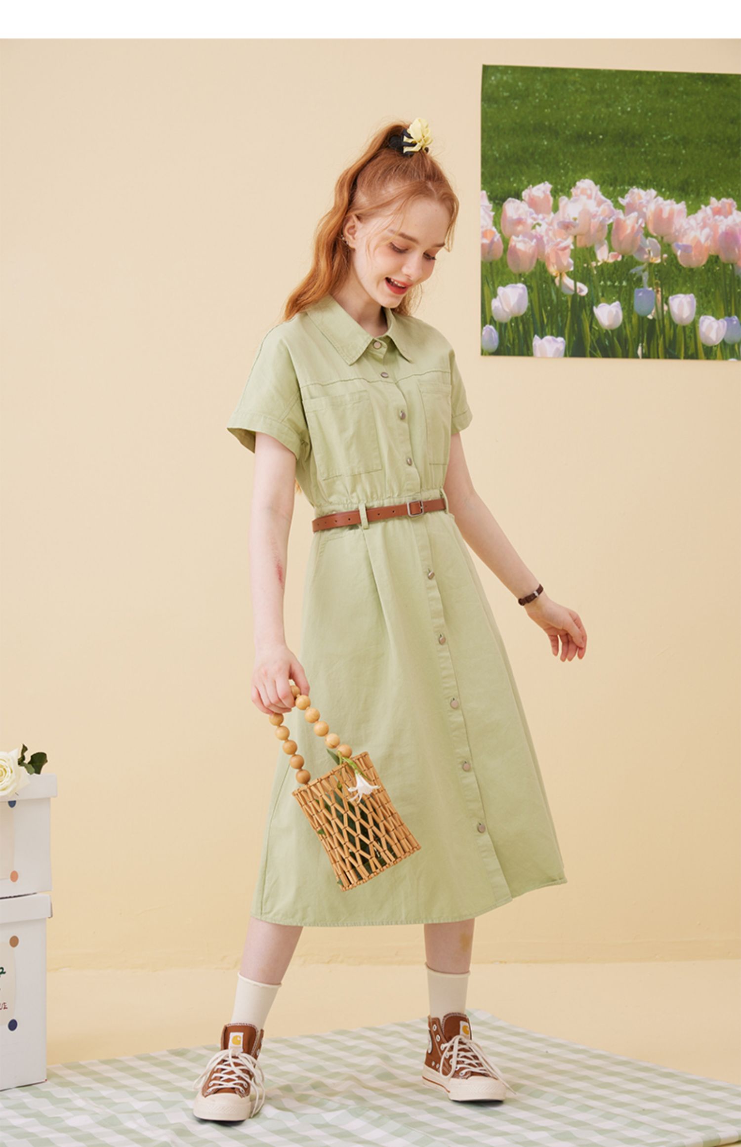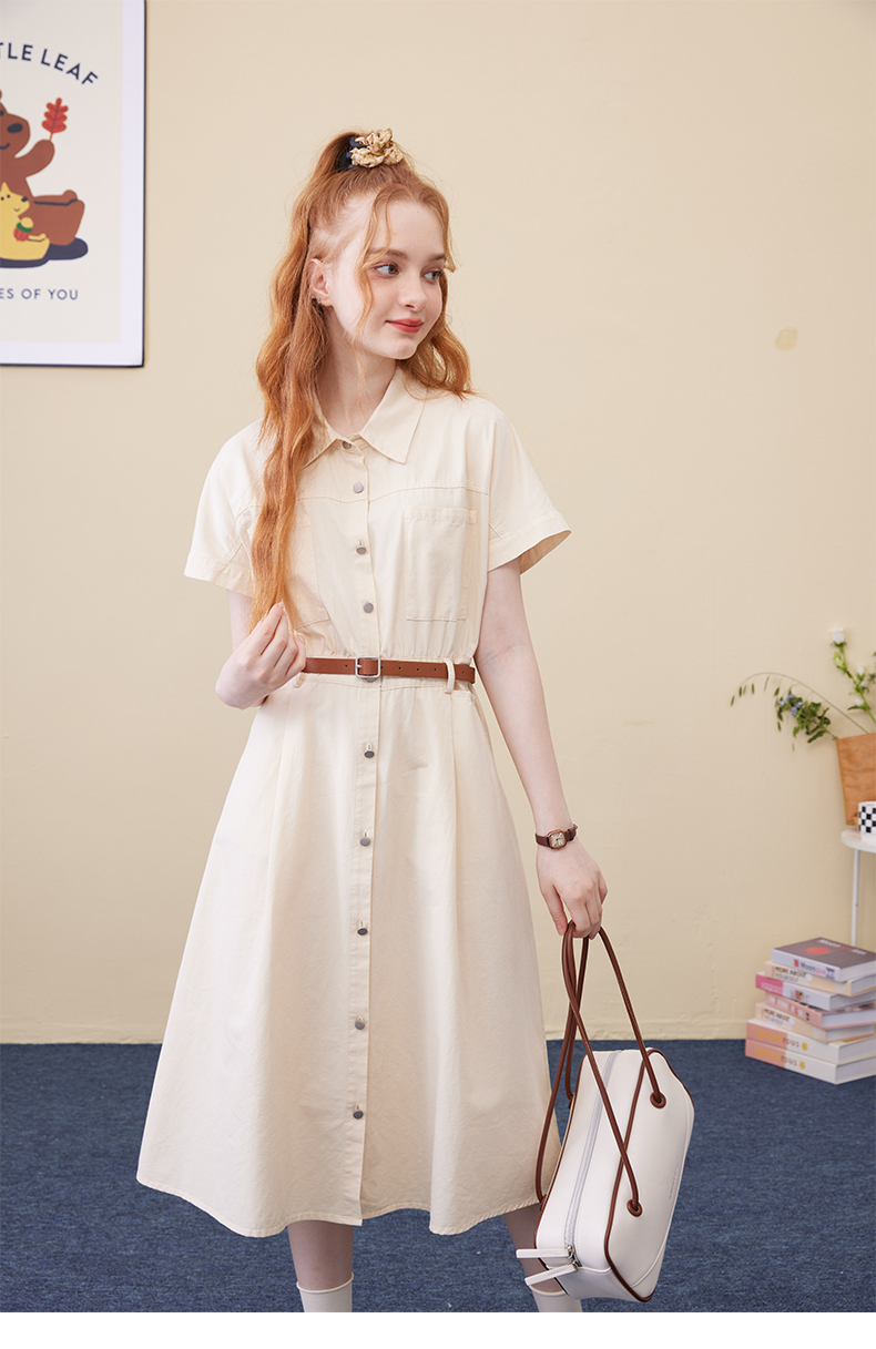女装翻领短袖中长款连衣裙(配腰带)Q3222332