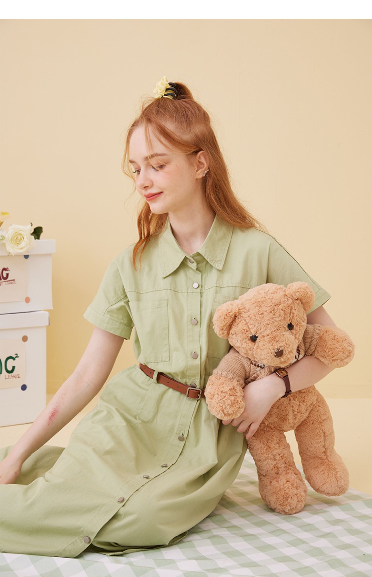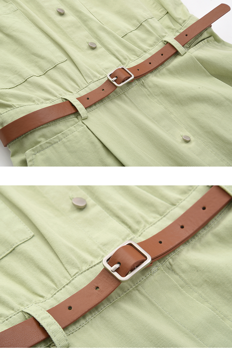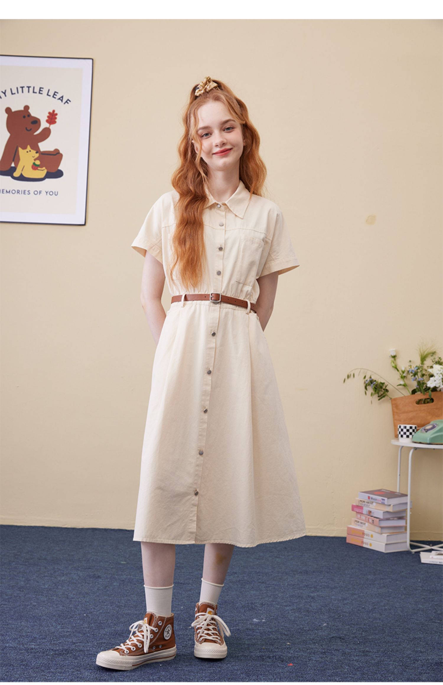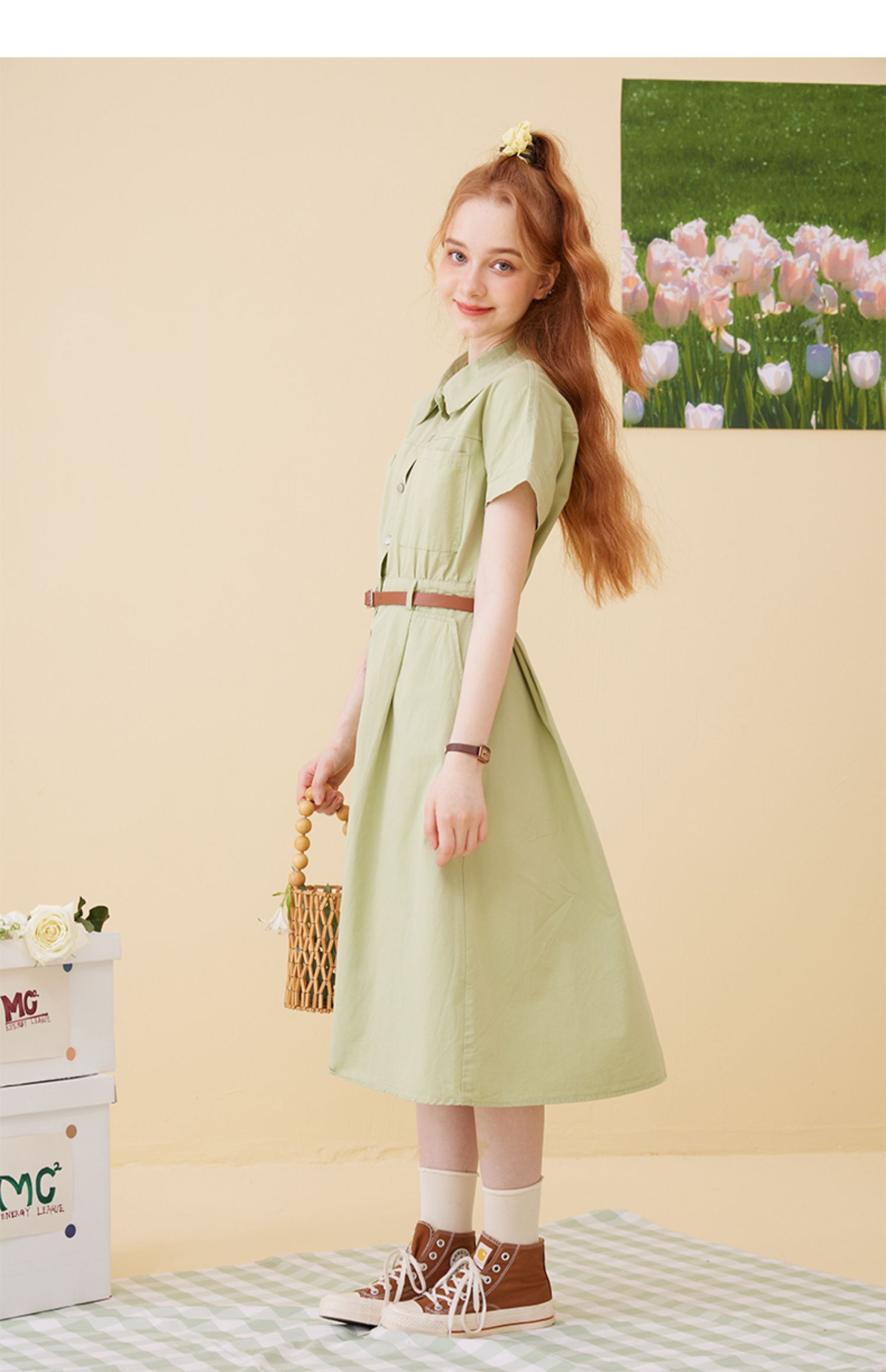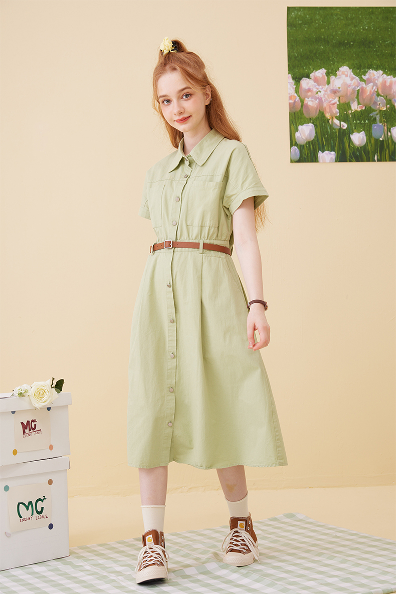 女装翻领短袖中长款连衣裙(配腰带)Q3222332
