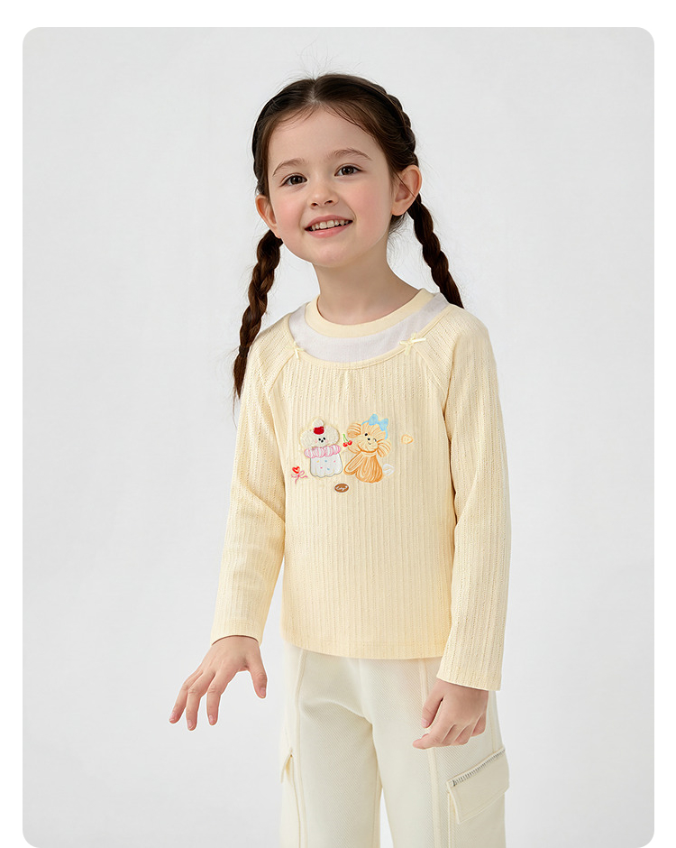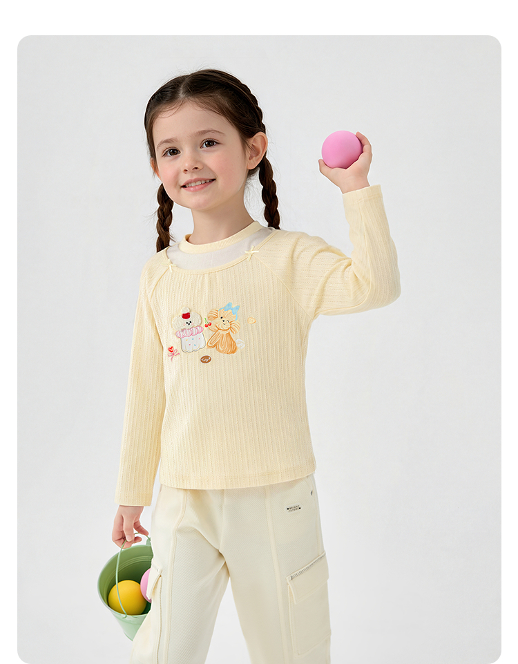 【商场同款】巴拉巴拉童装儿童长袖t恤女童2026新款春撞色假两件