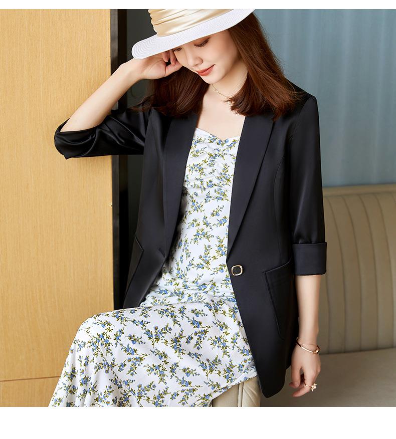 娜璐多 OL通勤时尚五分袖小西服2023夏季薄款简约外套女法式设计感上衣女