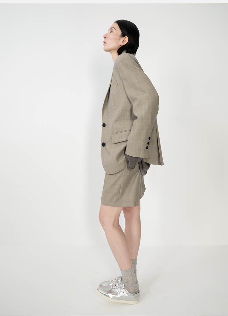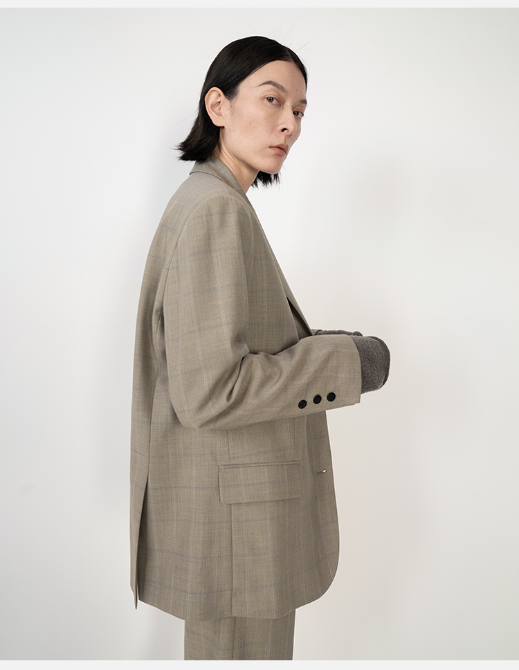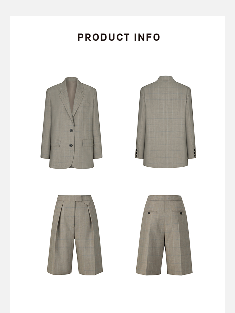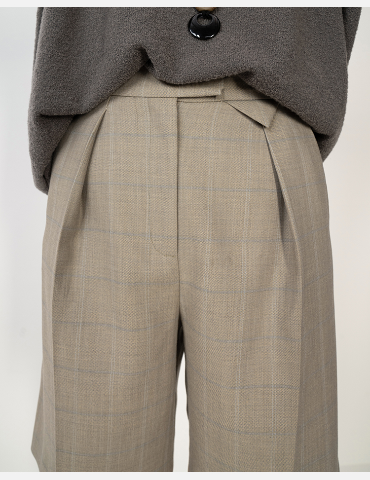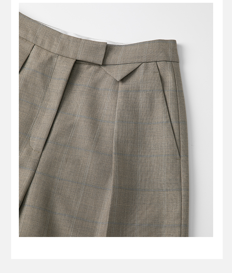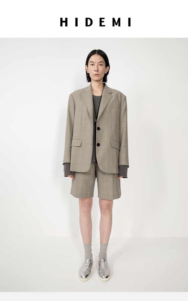 HIDEMI羊毛经典简约翻领色织格纹西装/压褶中裤