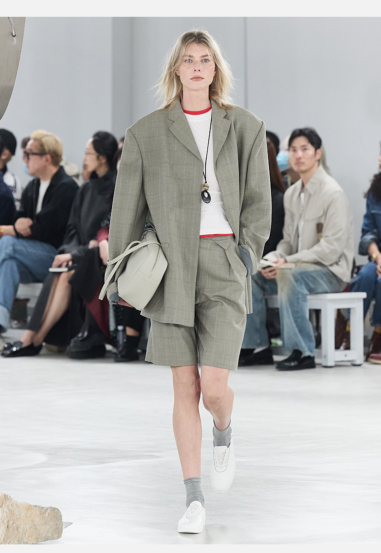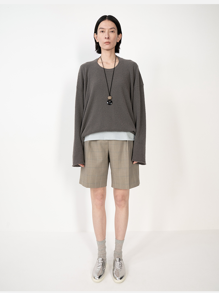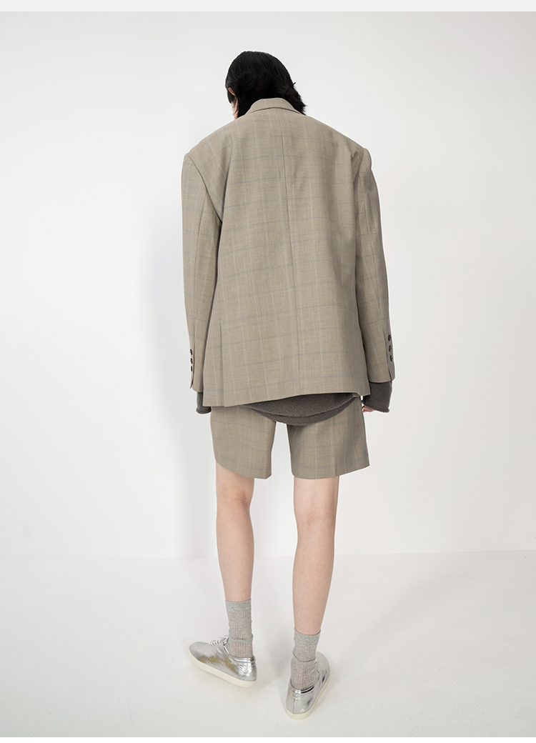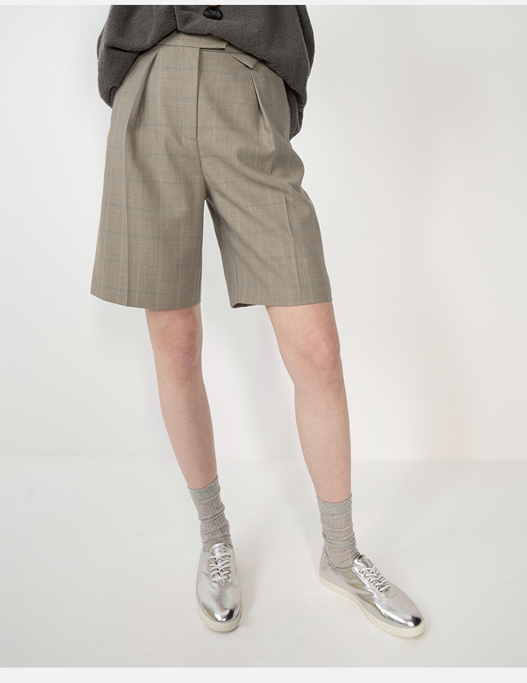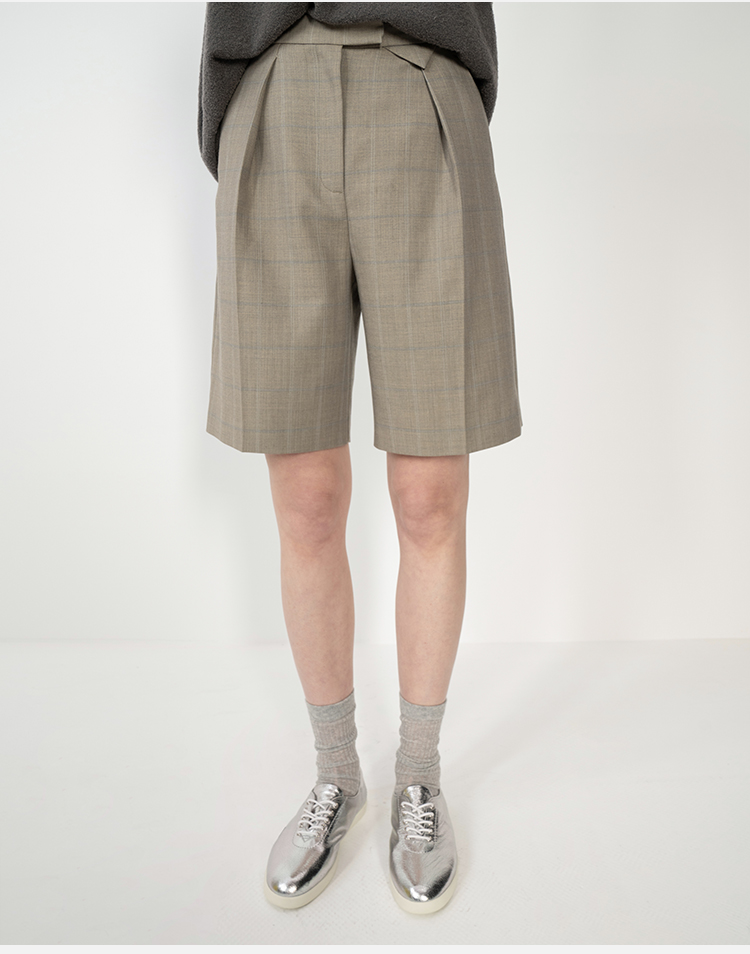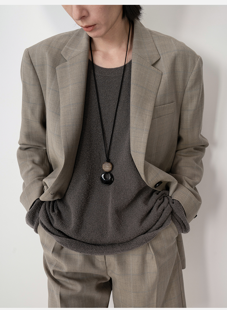 HIDEMI羊毛经典简约翻领色织格纹西装/压褶中裤
