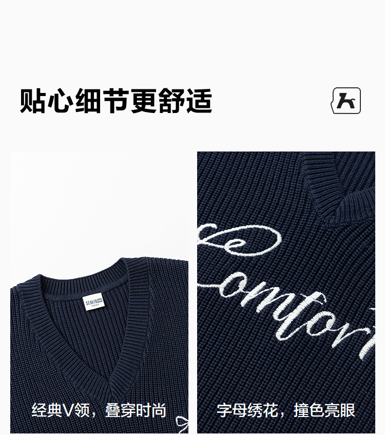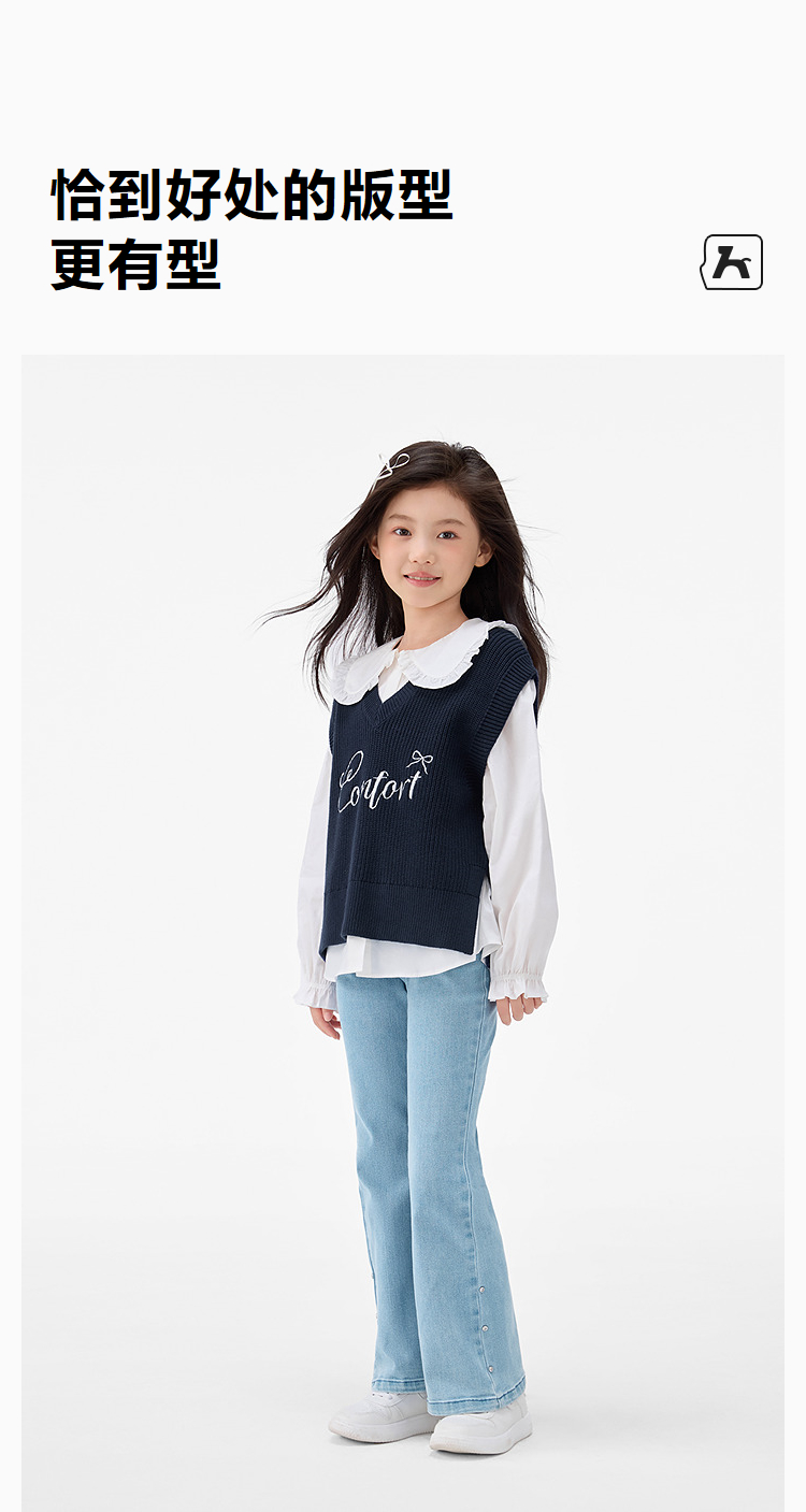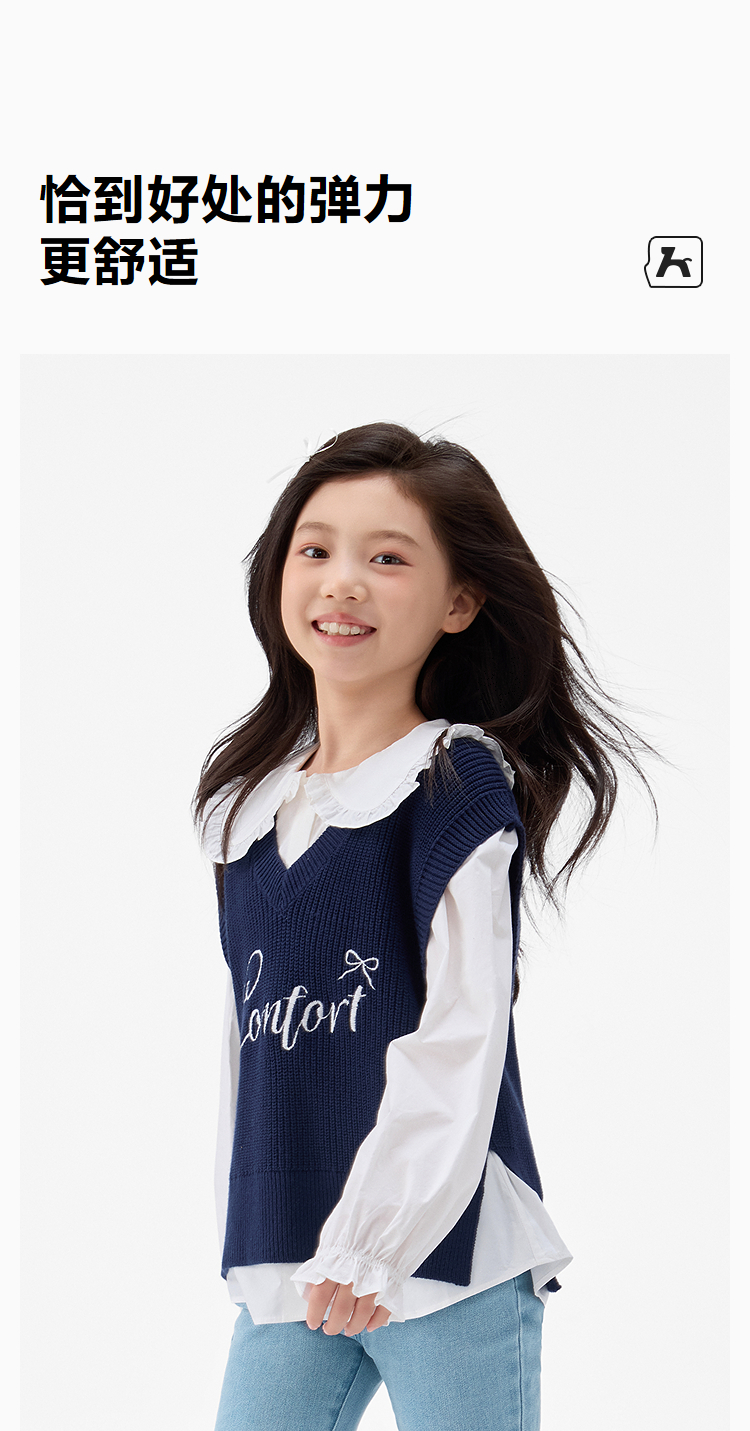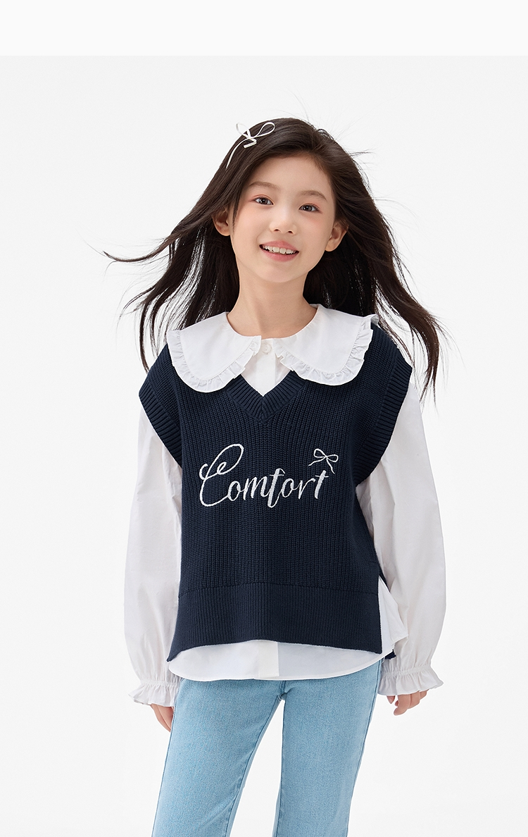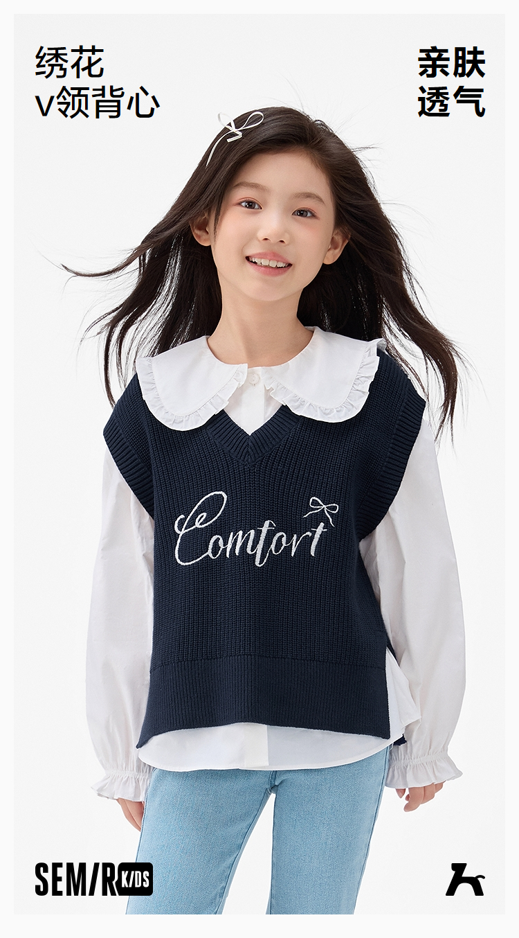 森马儿童2025年秋季女中童背心V领毛衣