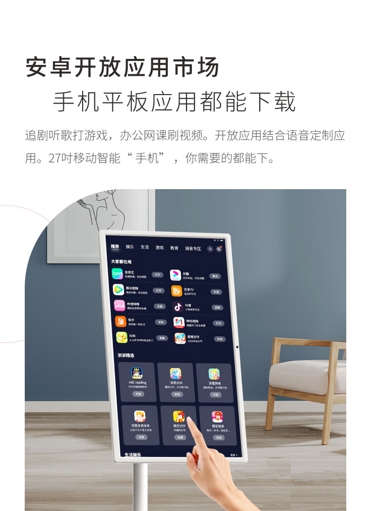 添添小度 闺蜜机 智能平板 电视音响移动随心屏27英寸大屏触控显示器 追剧唱歌健身办公礼物