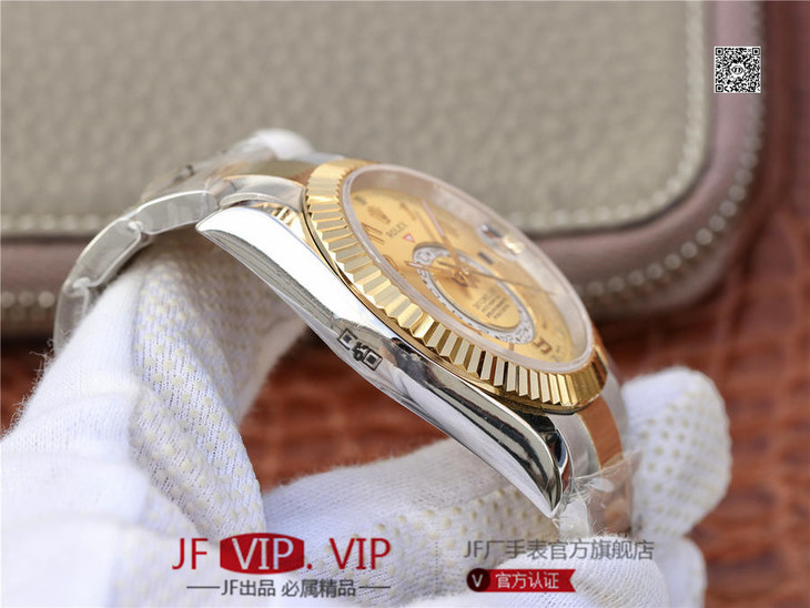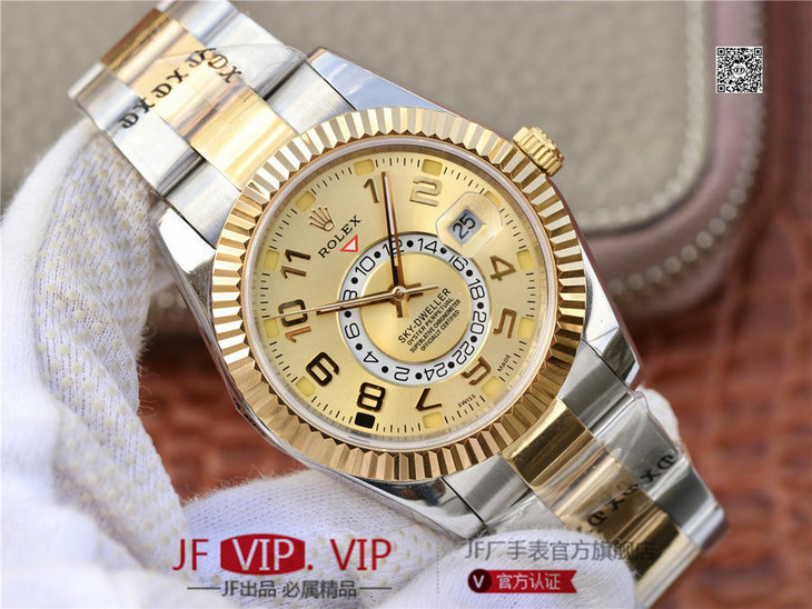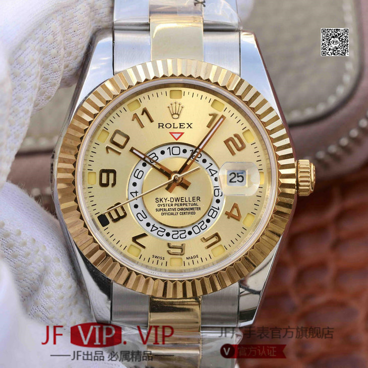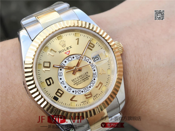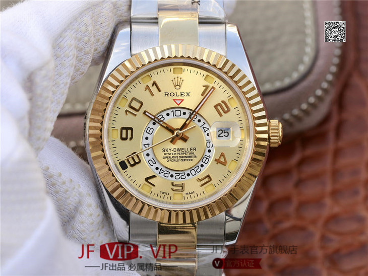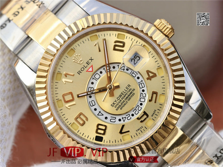 N劳力士蚝式恒动SKY-DWELLER 326939黑盘,和正品一样内圈24小时真功能,拧动外圈就能调,这款经典瞩目的腕表专为环球旅行人士而设计