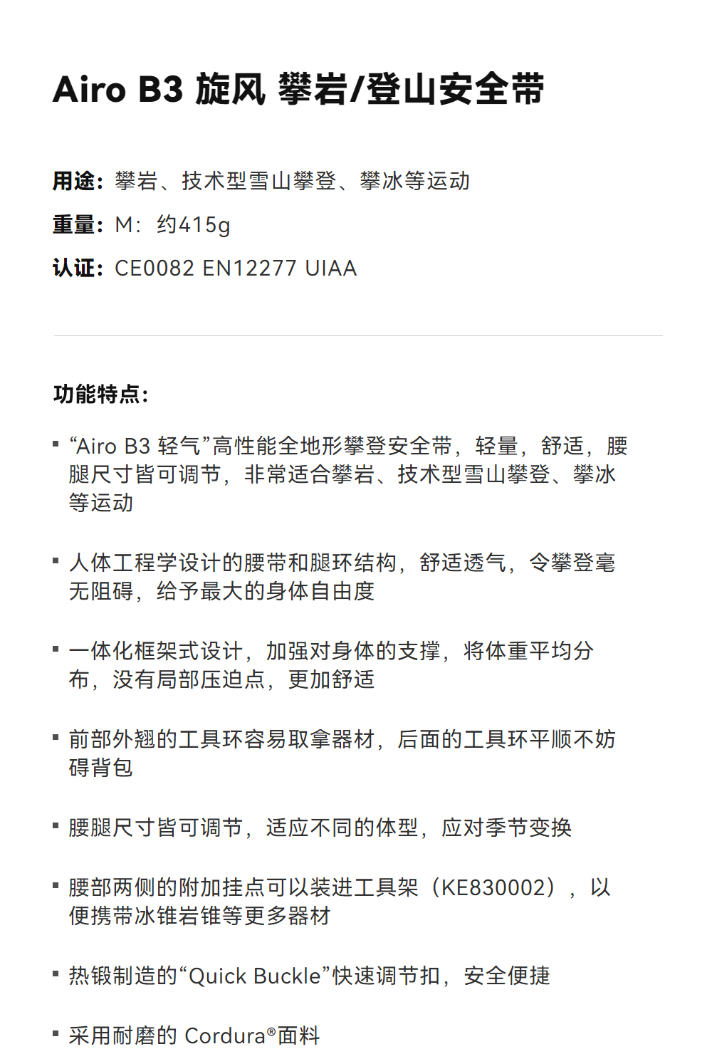 KAILAS凯乐石 Airo B3 旋风攀岩/登山安全带 EH105C【Z】
