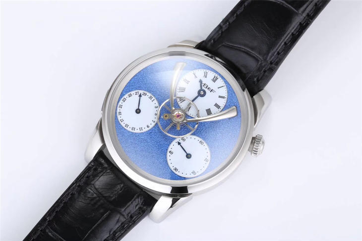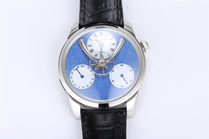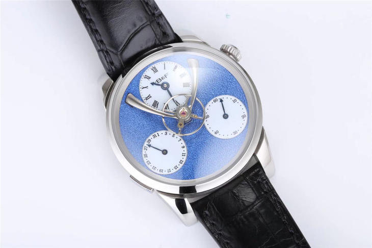 【MB&F】「Legacy Machine Split Escapement」爆款来袭!搭载与 Stephen McDonnell 合作设计的全自动上链机芯,摆频18000vph,双发条盒提供72小时动力存储。Stephen McDonnell 设计的「Split Escapement」(分离式擒纵)结构成为「悬浮摆轮」的基础,让摆轮和擒纵轮分置于机芯的两侧。别具一格独领风骚!316L精钢表壳直径43mm内部结构极其复杂数十道CNC精密工艺完成,半球体蓝宝石镜面,表盘可选蓝色、深枪色、玫瑰金或金色四种版本,盘面经过雪霜压磨装饰,呈现细微的纹理质感。表盘中心是大尺寸的悬浮式摆轮,12点为主时分针盘,4点为秒针盘,8点为日历盘,三个小表盘各自独立完成一个功能让人感到舒缓和轻松!此腕表搭配意大利精品小牛皮+强弹力双折扣!精英团队打造