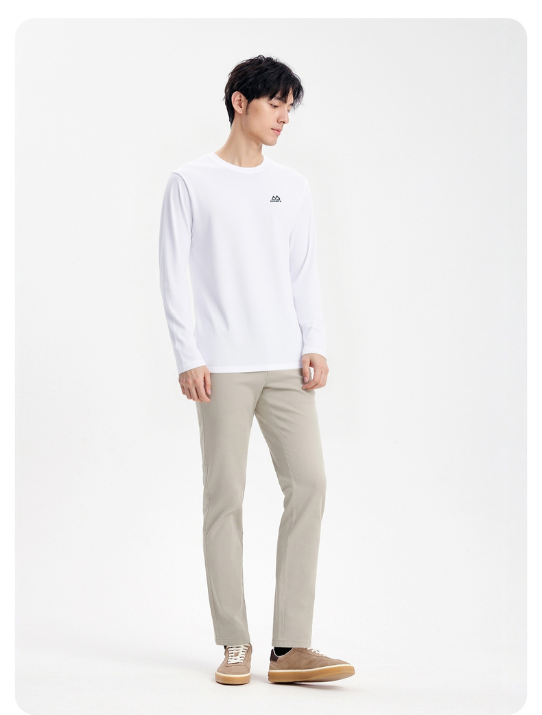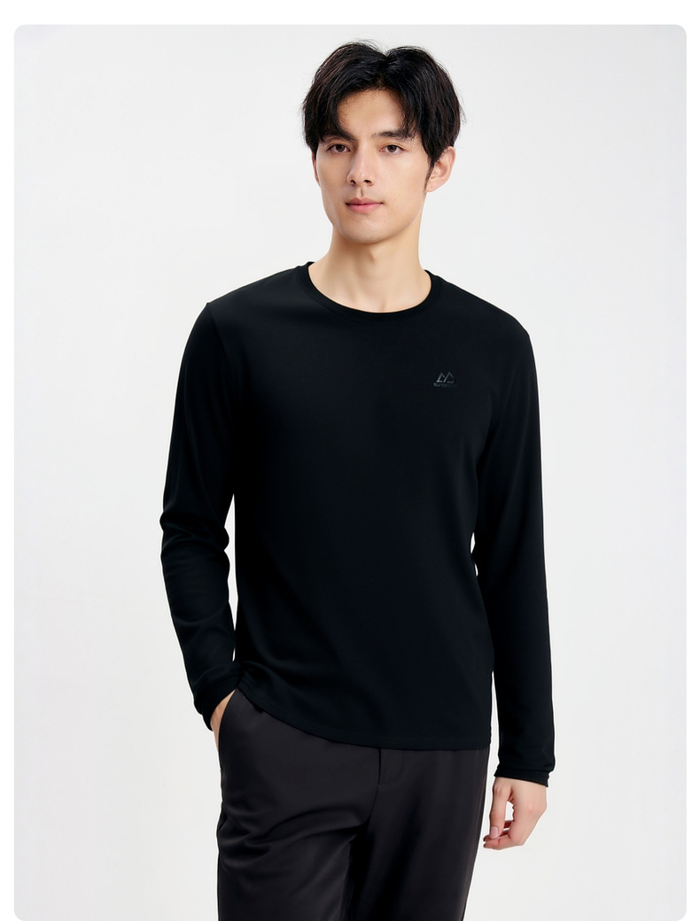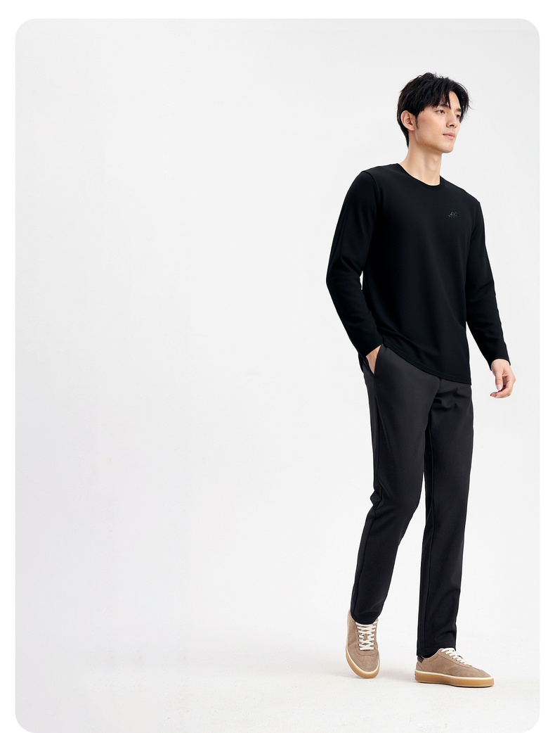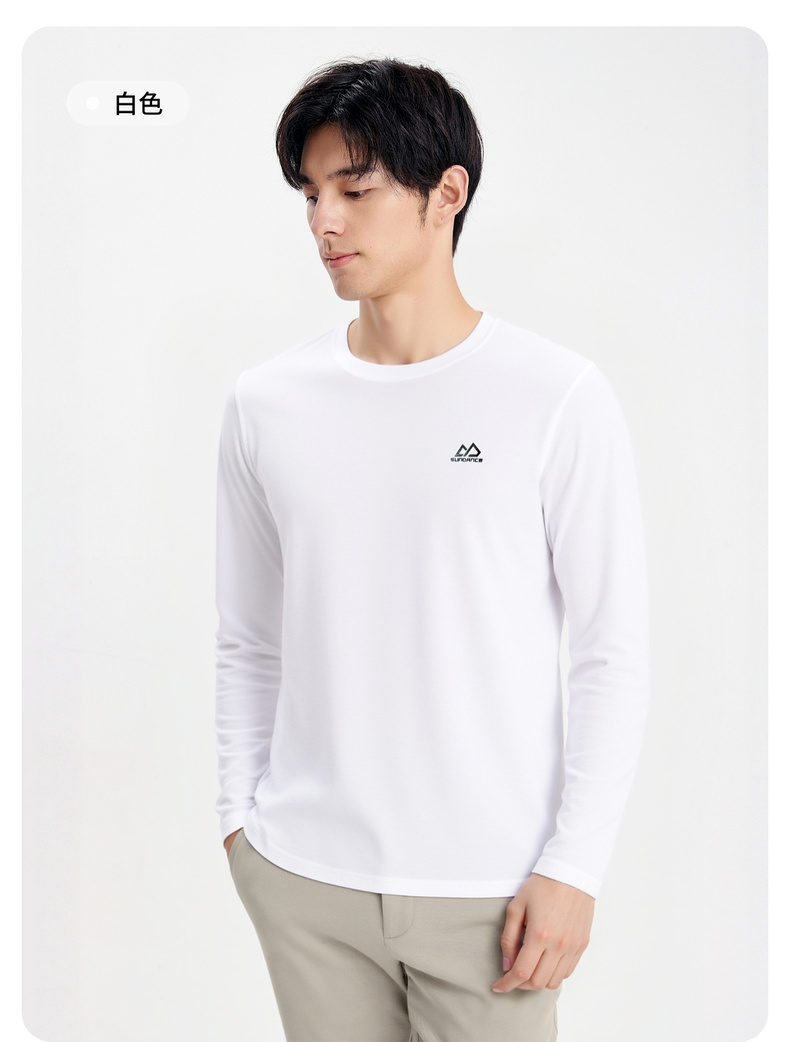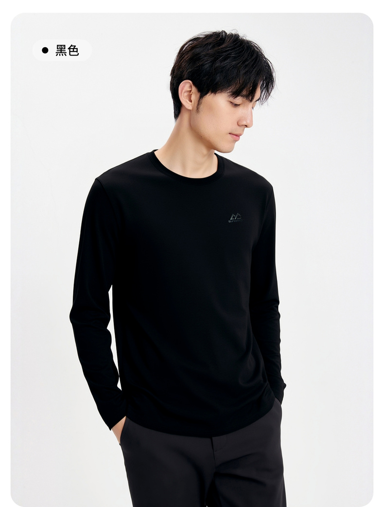 【100%棉 】圣得西纯棉圆领T恤2025秋季新款落肩型宽松长袖内搭男