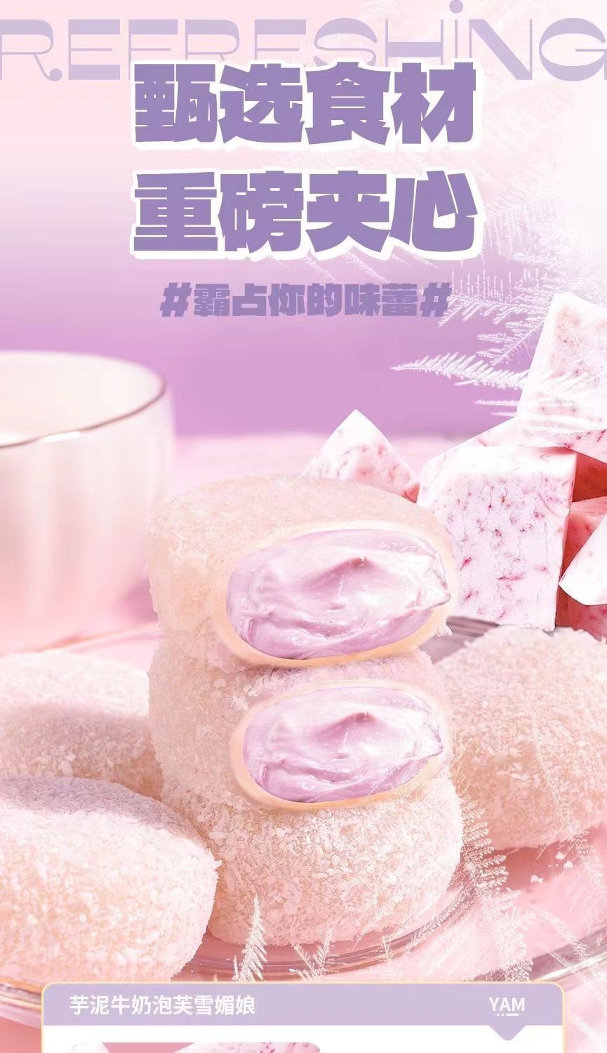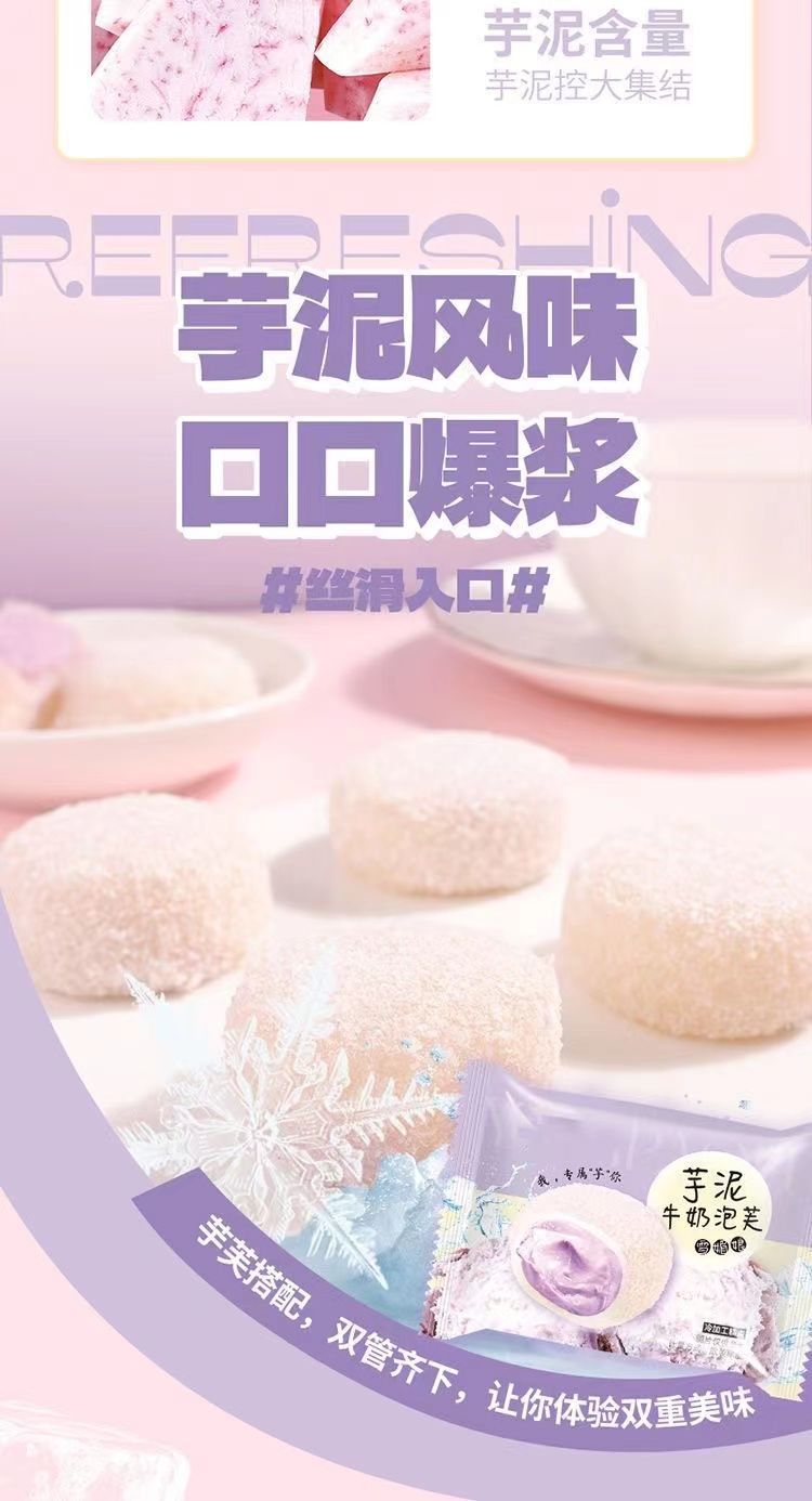 【饱满夹心!爆浆芋泥奶芙】糯叽叽芋泥牛奶泡芙 网红零食品 爆浆雪媚娘糕点心休闲甜品宿舍