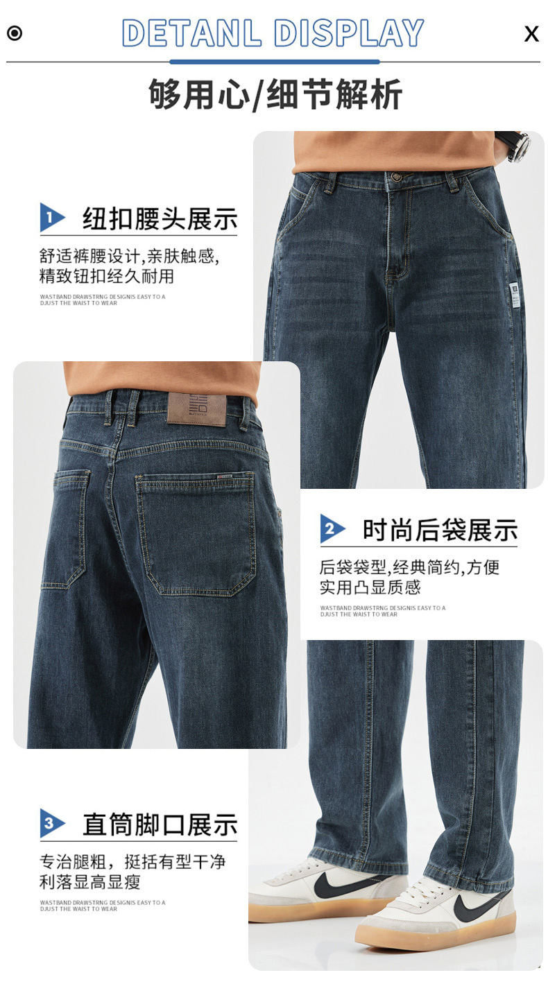 圣得西小众牛仔裤宽松直筒长裤子男士2025春夏新款阔腿休闲男裤