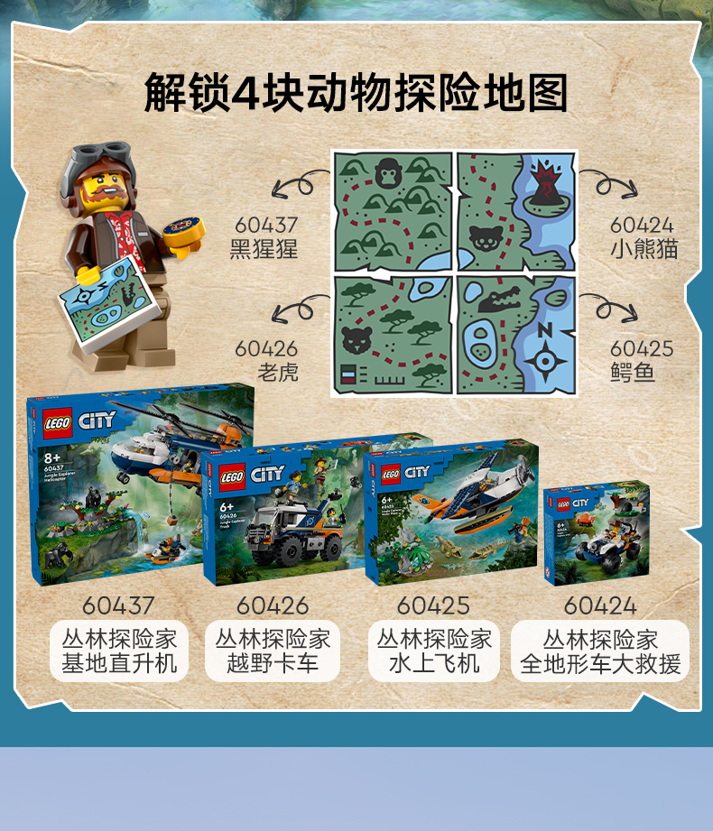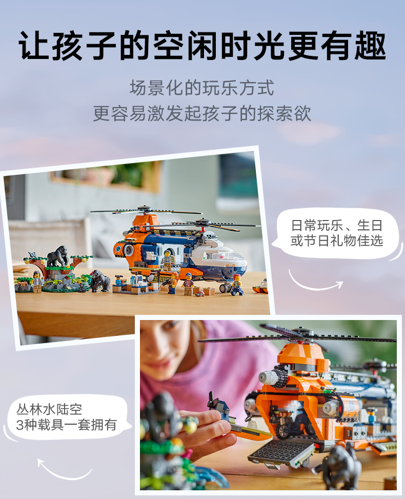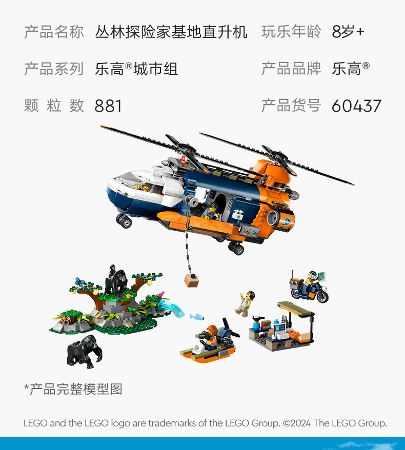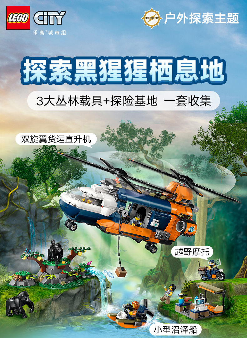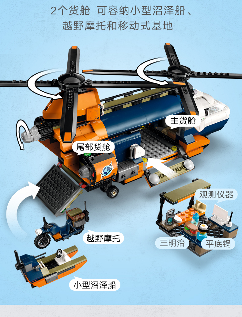 乐高LEGO 丛林探险家基地直升机LEGC60437