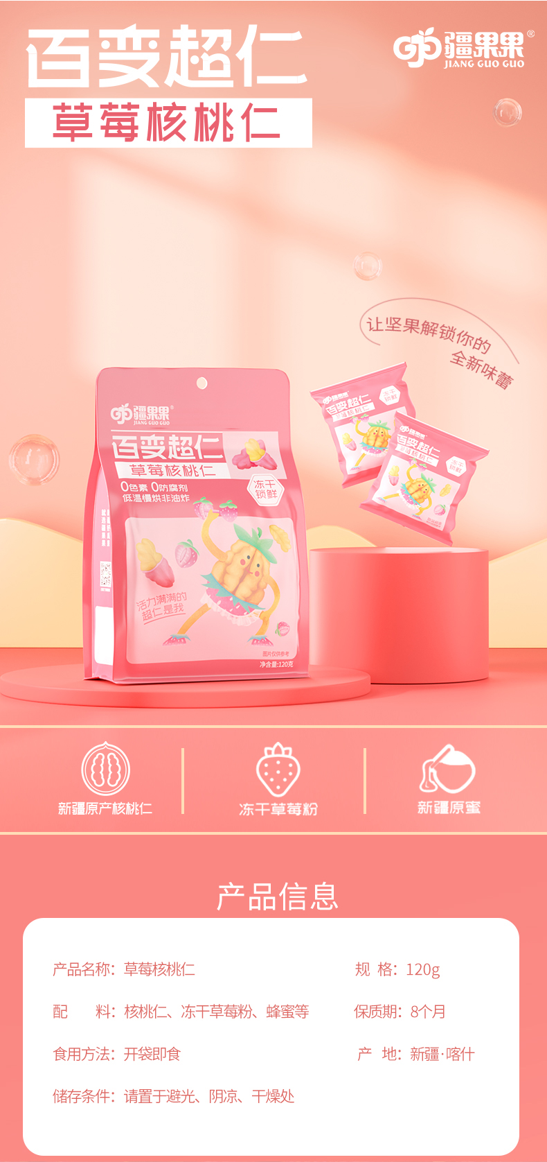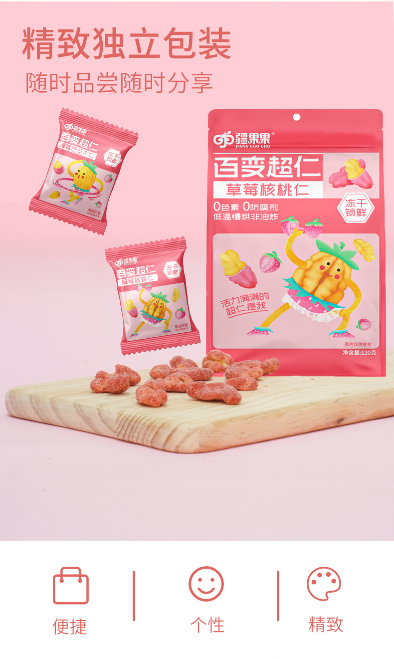 【严选】疆果果百变超仁草莓味核桃仁120g/袋(10g*12小袋)(厂家直发))