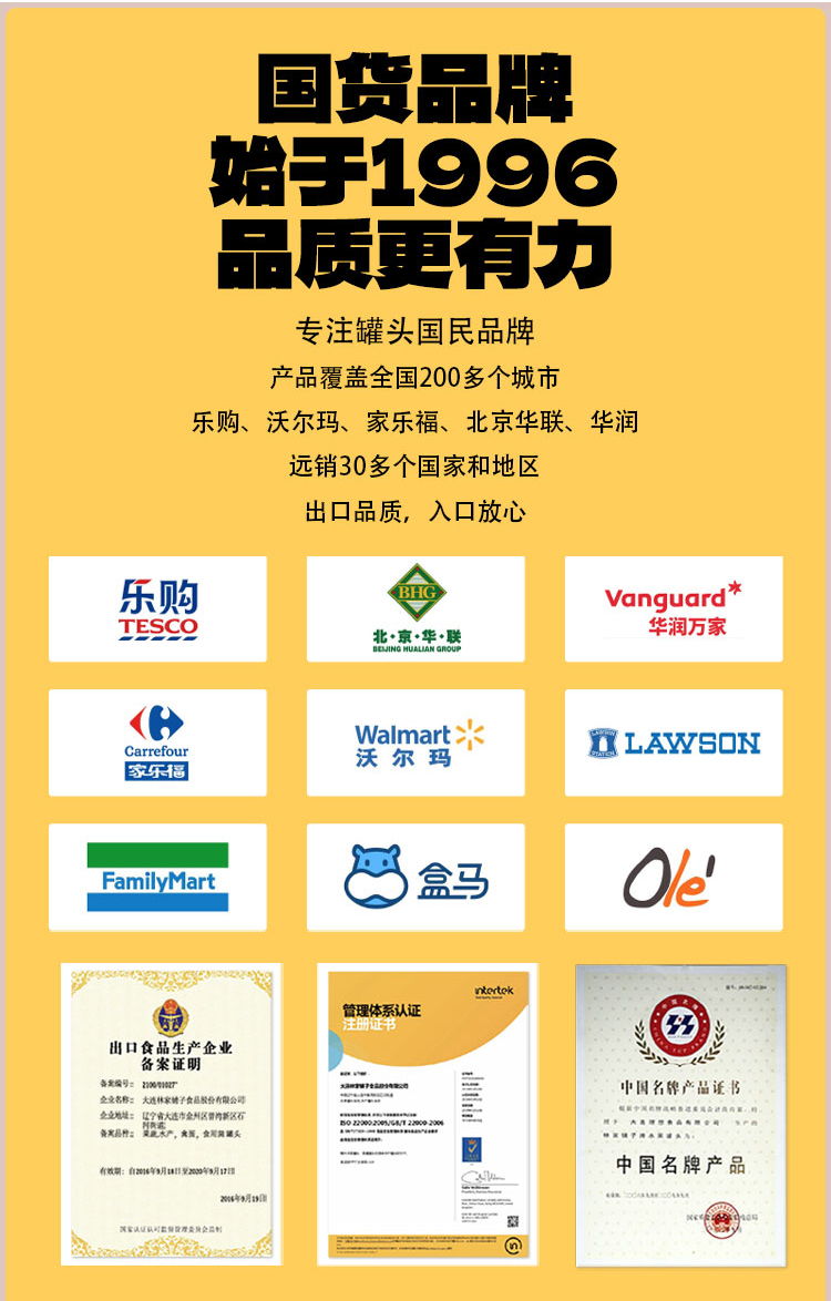 大连林家铺子食品股份有限公司成立于1996年,是中国知名及东北地区最大的罐头生产商、出口商。公司坚持“赋予产品以文化,做世界上最好的罐头”,不断最求高品质打造成年轻人也爱吃的国民零食
