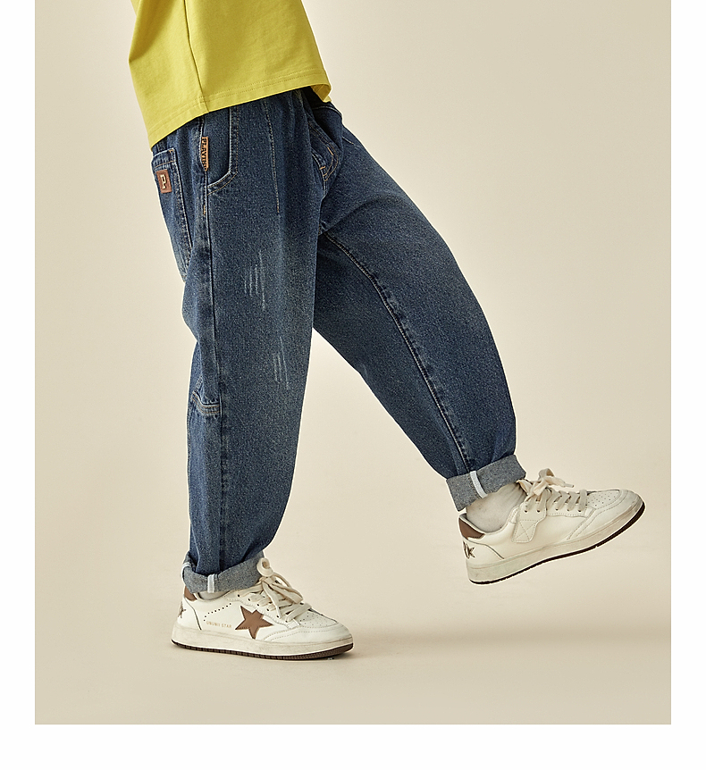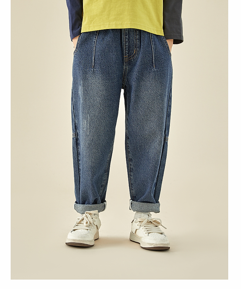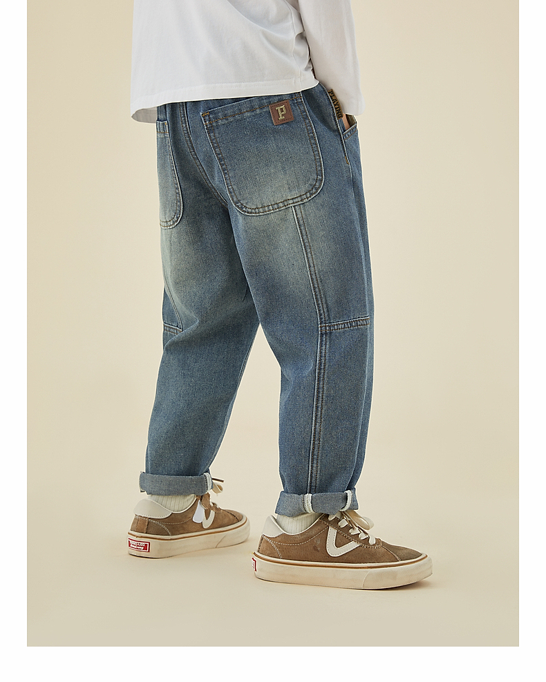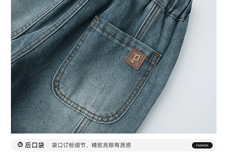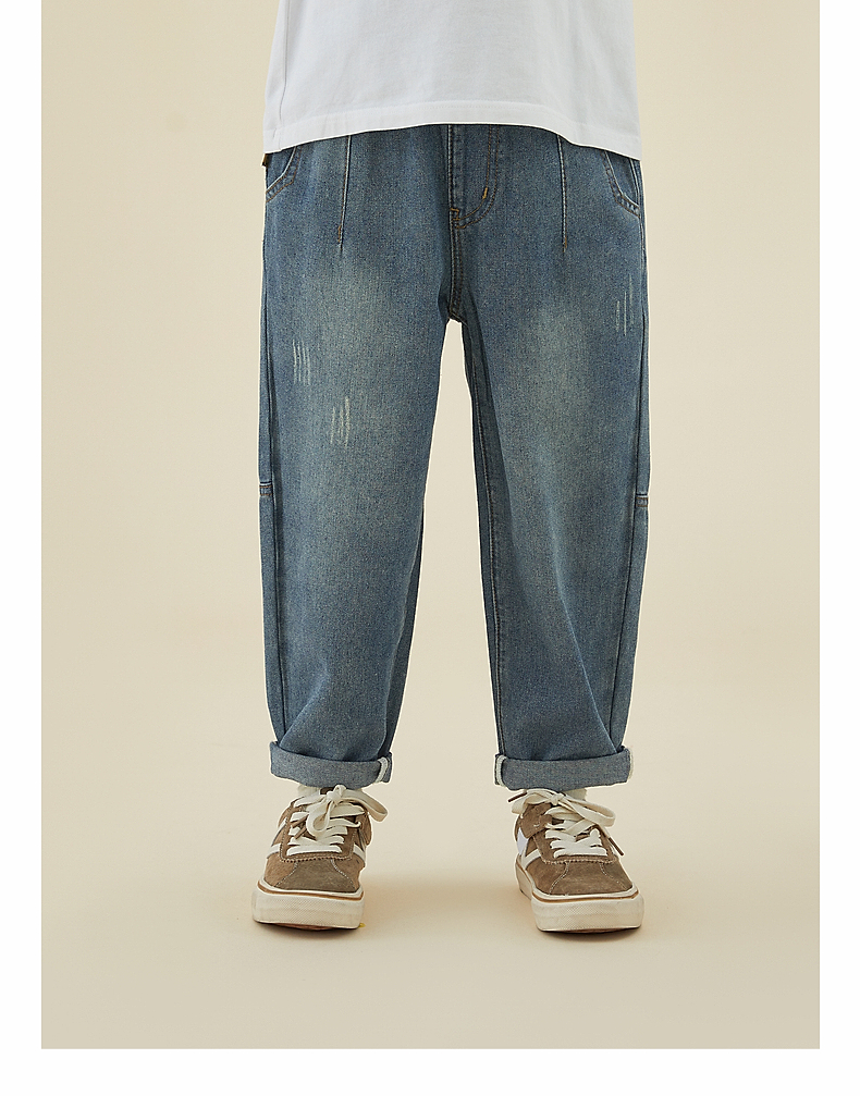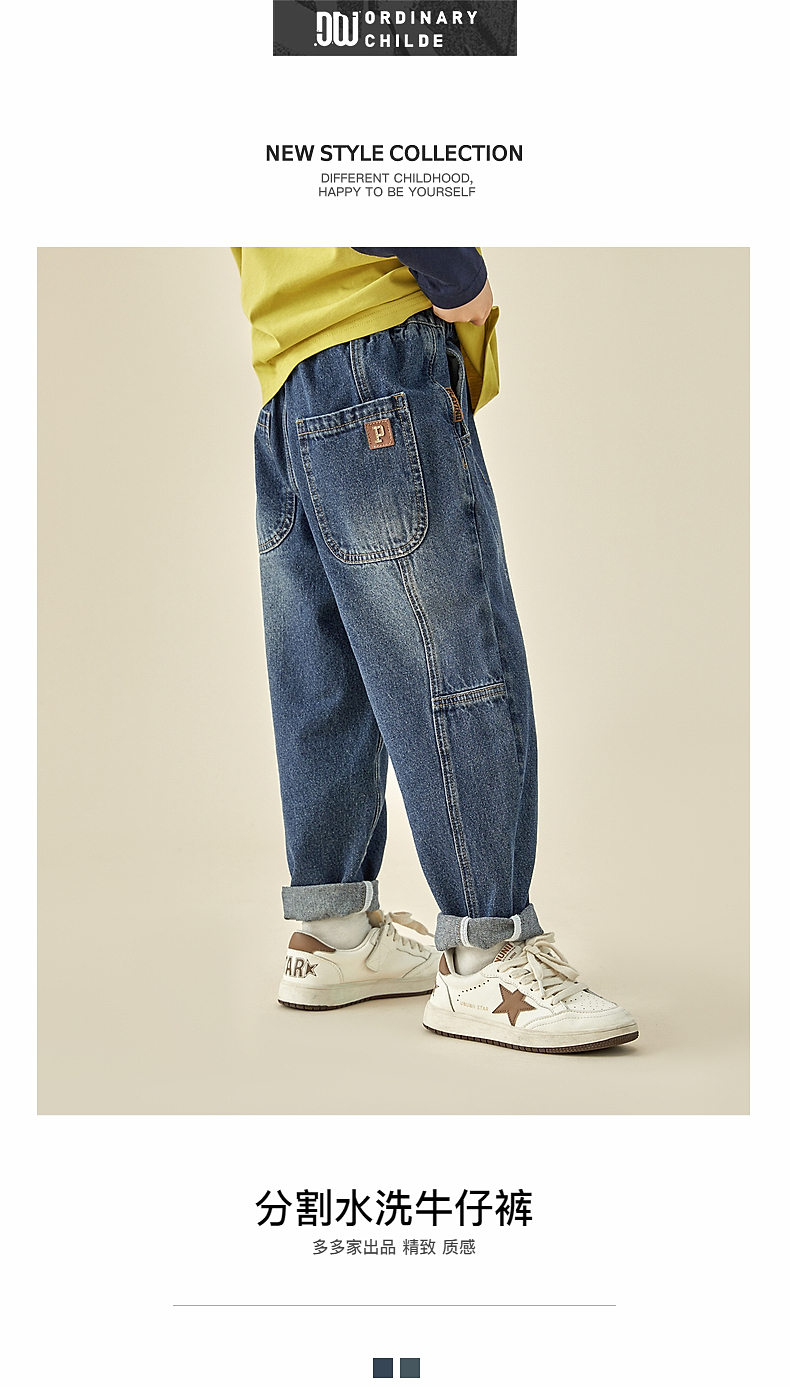 【团购价59.9】多多家男童牛仔裤2024春秋新款宽松百搭分割水洗裤子中大童儿童潮9099