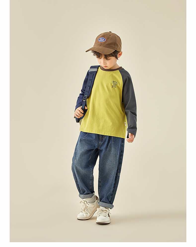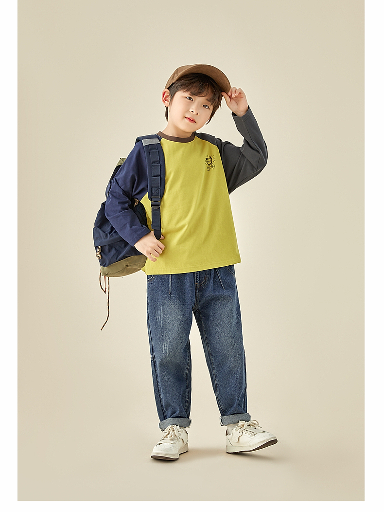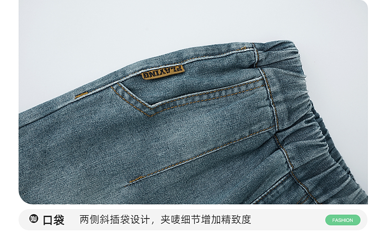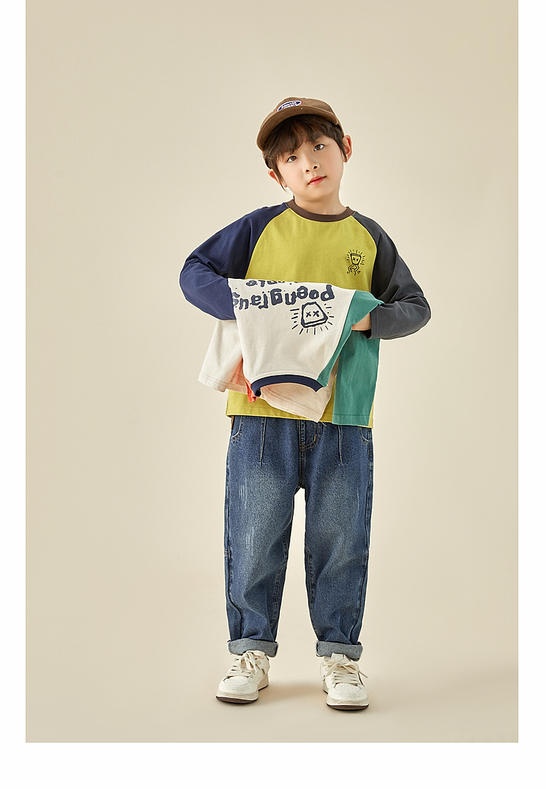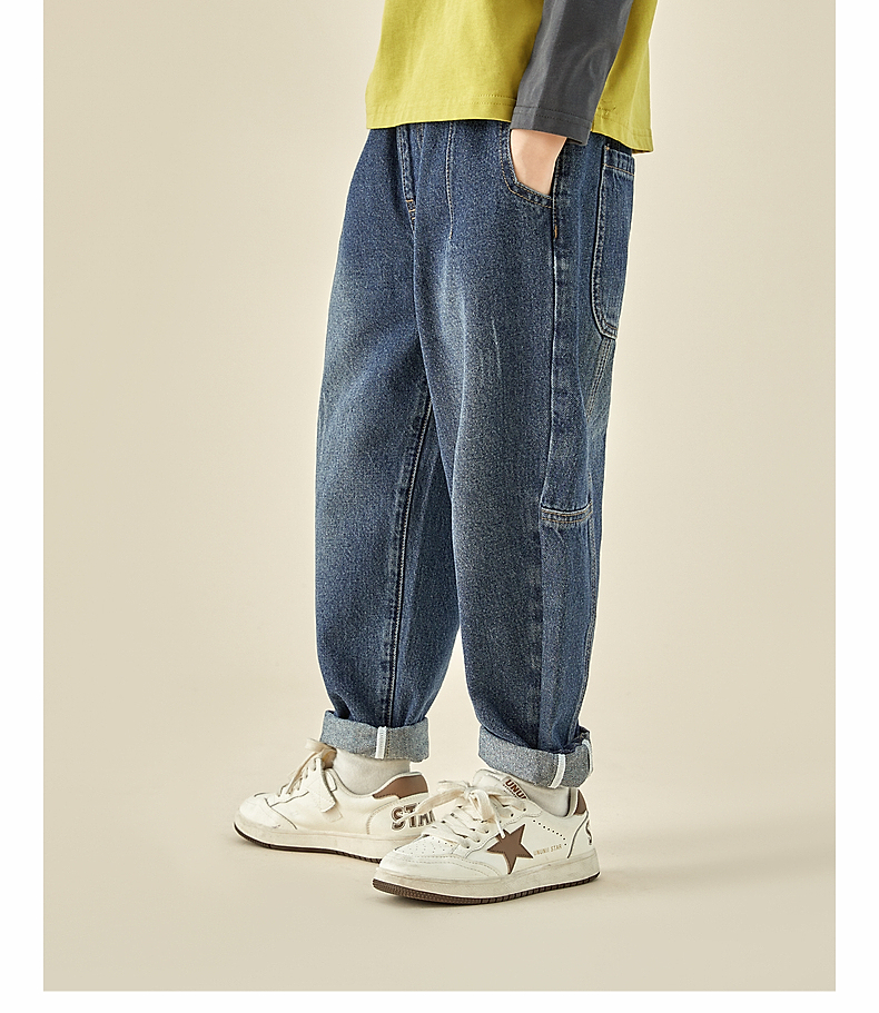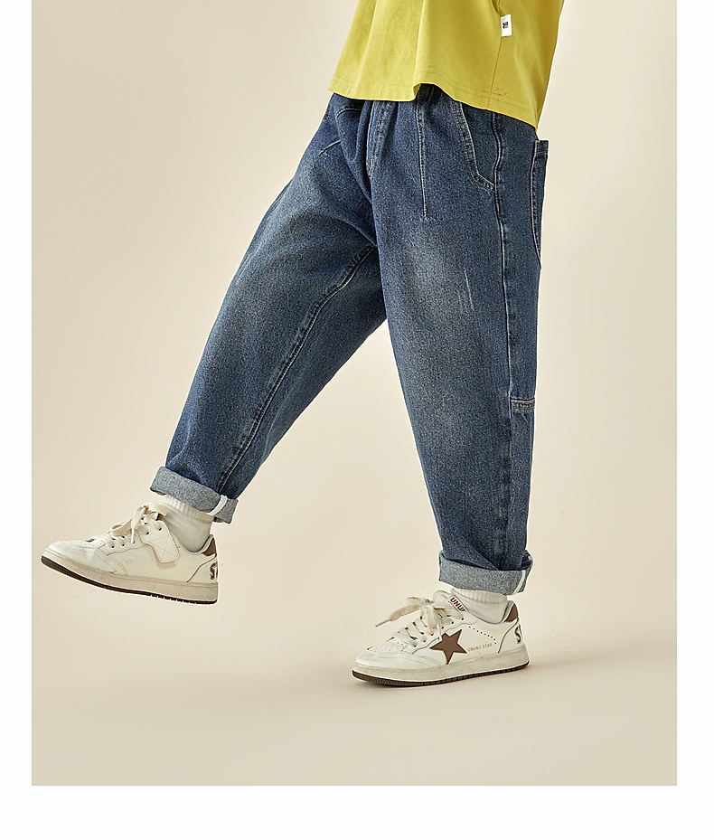 【团购价59.9】多多家男童牛仔裤2024春秋新款宽松百搭分割水洗裤子中大童儿童潮9099