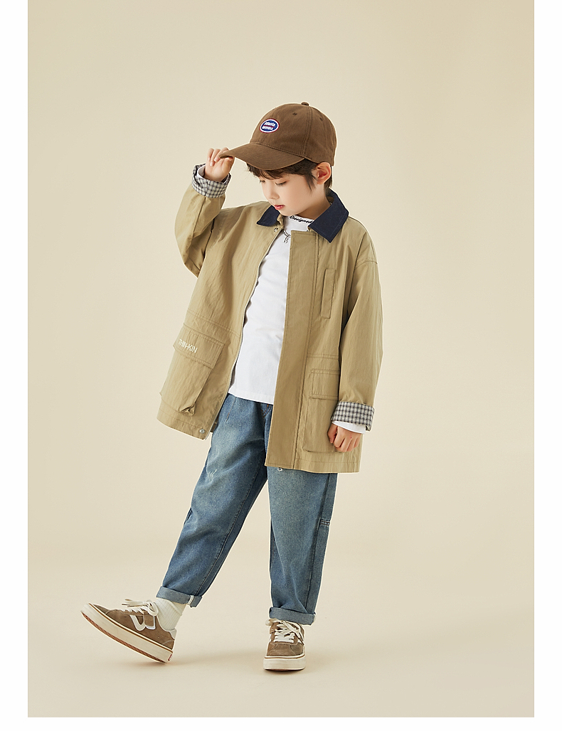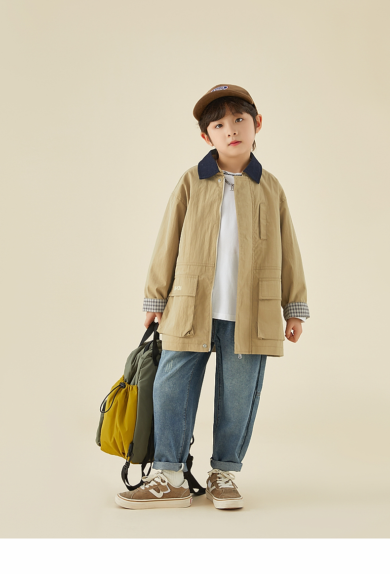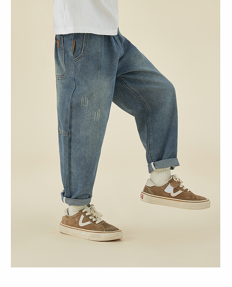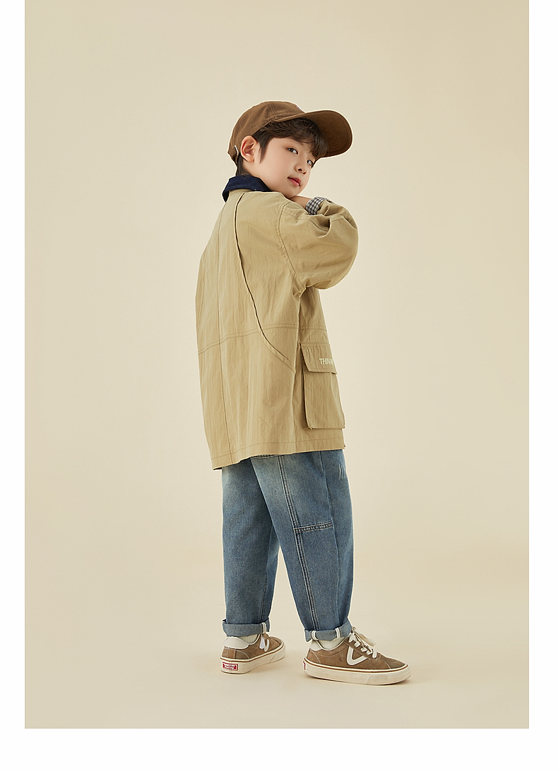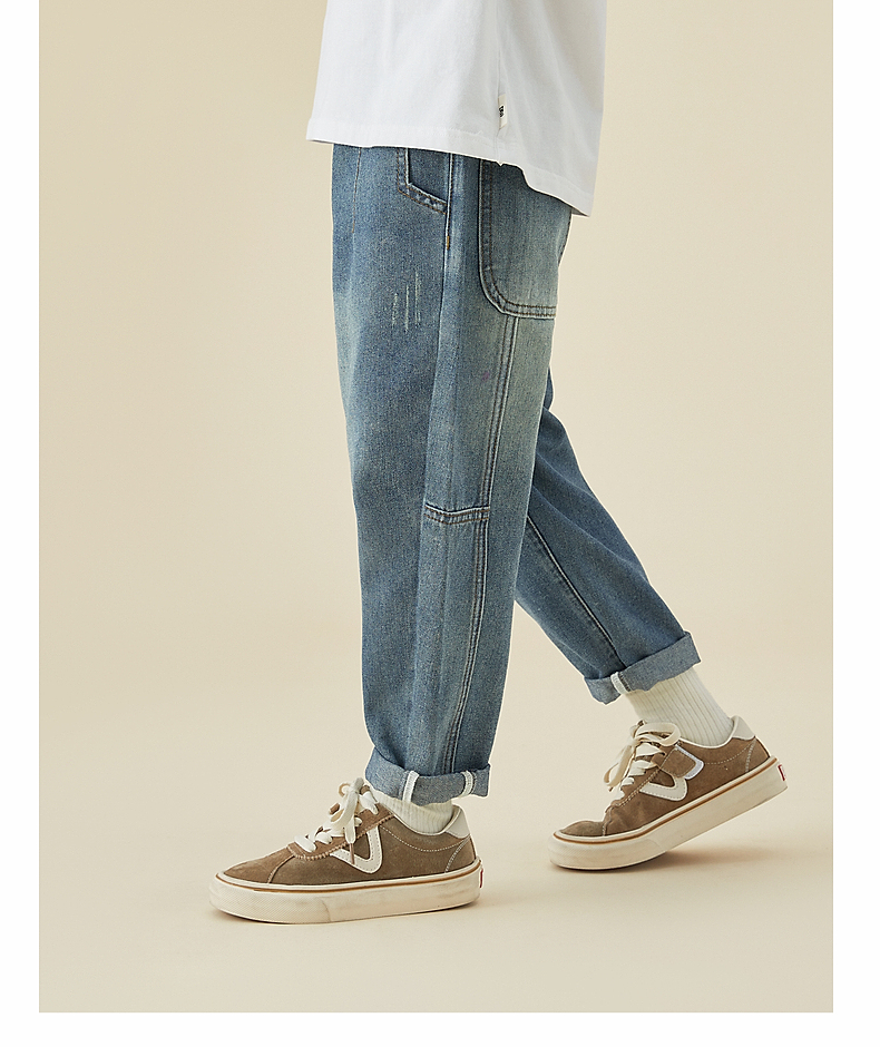 【团购价59.9】多多家男童牛仔裤2024春秋新款宽松百搭分割水洗裤子中大童儿童潮9099