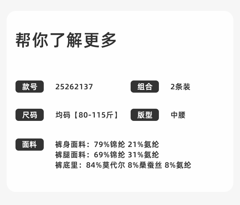 【2条装】熳洁儿 无缝安全裤防走光不卷边春夏打底裤25262137