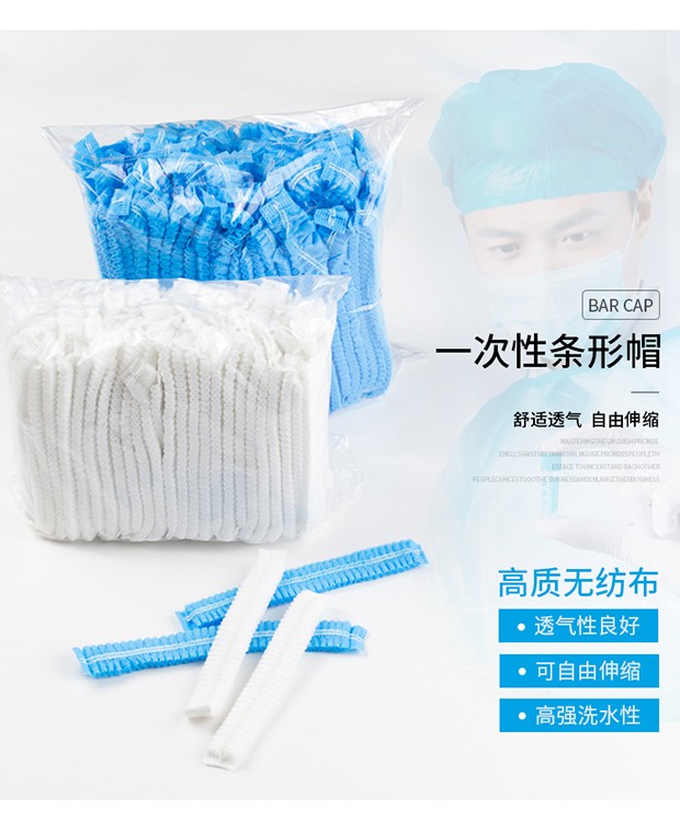 一次性帽子 白色 头套 无纺布 厨师帽防尘帽餐饮网帽透气厨房用帽 20个/100个