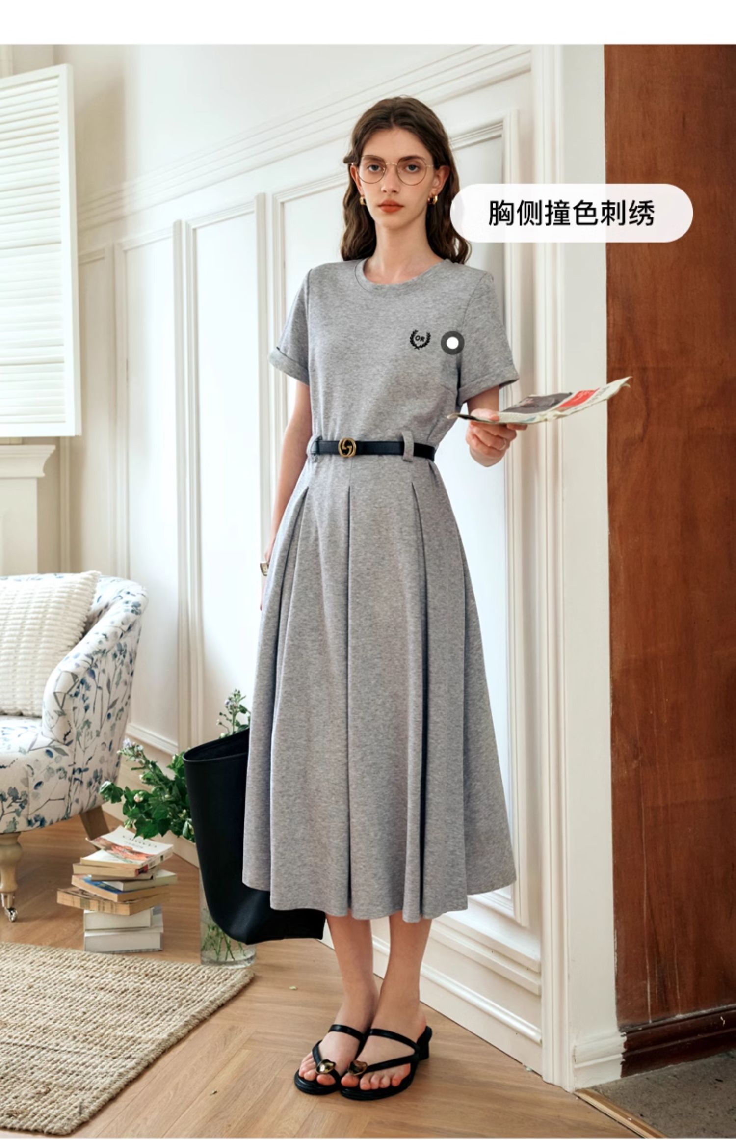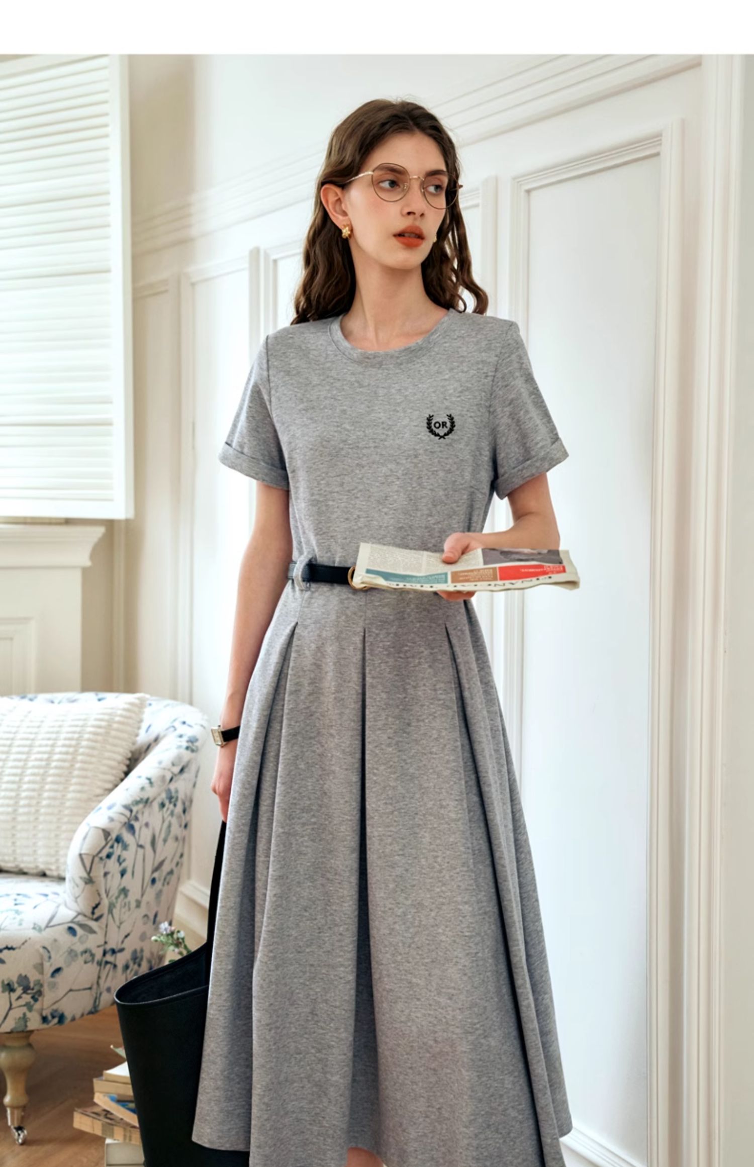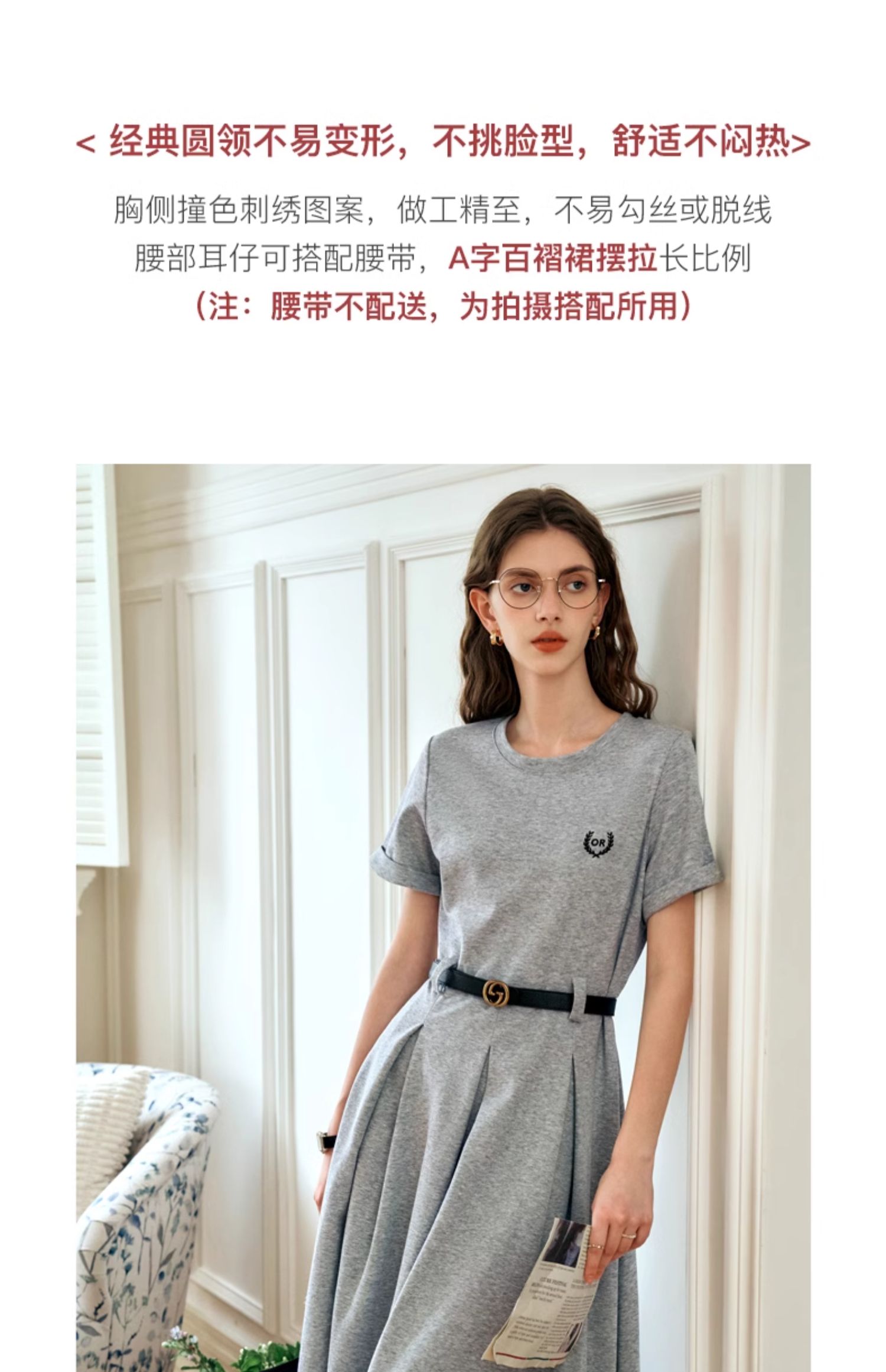 OLrain欧芮儿针织连衣裙女夏季2024年新款通勤学院风休闲收腰长裙